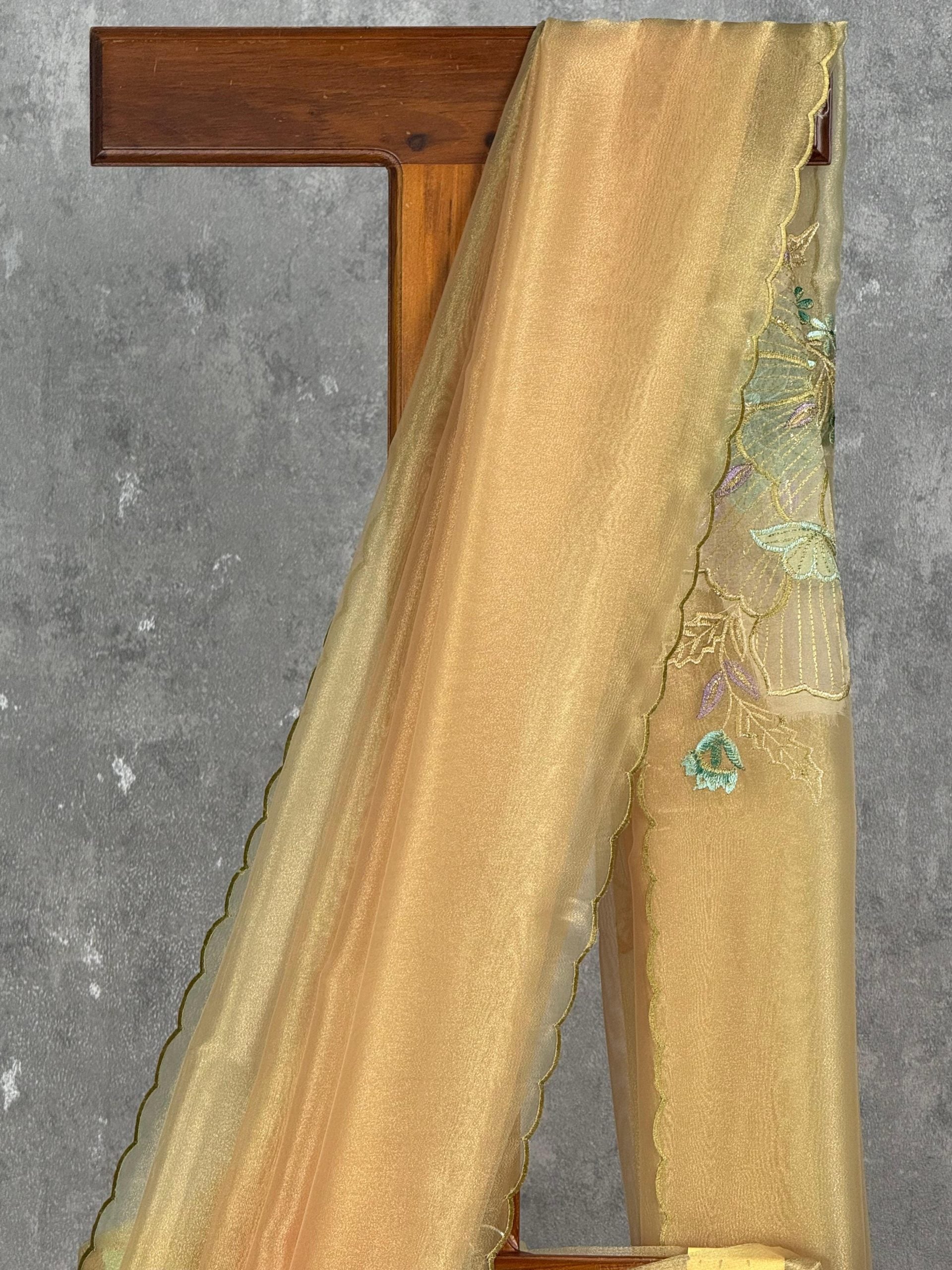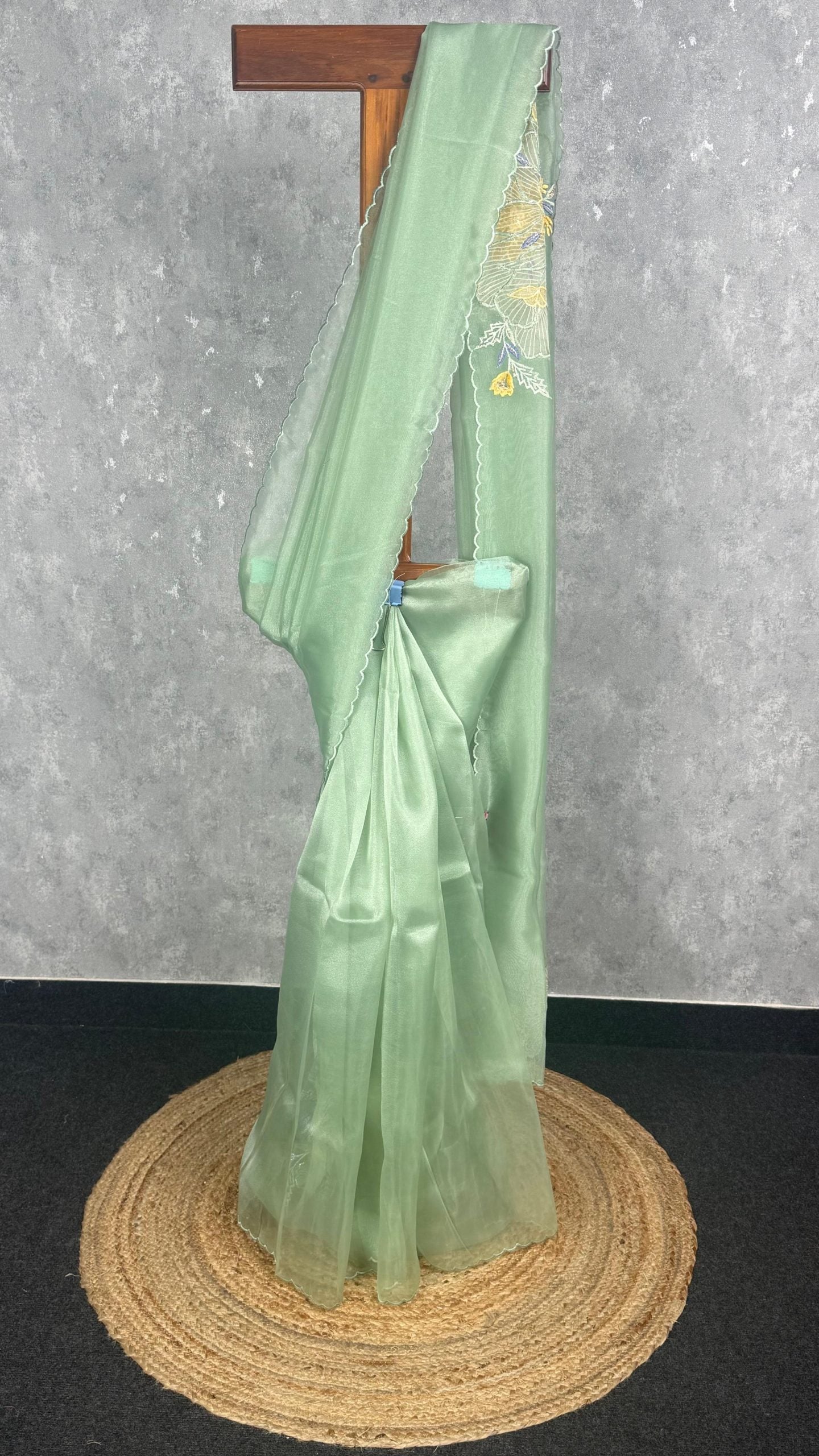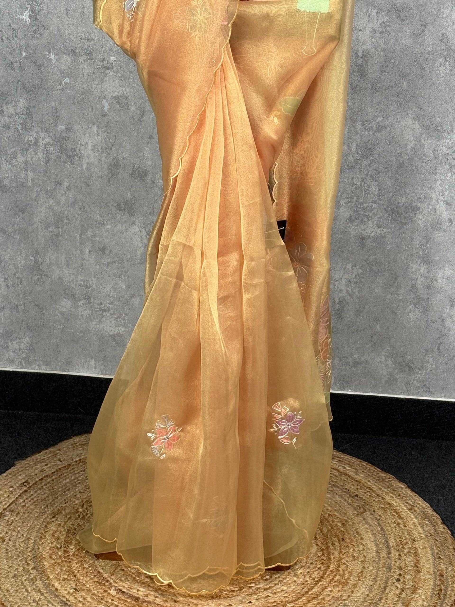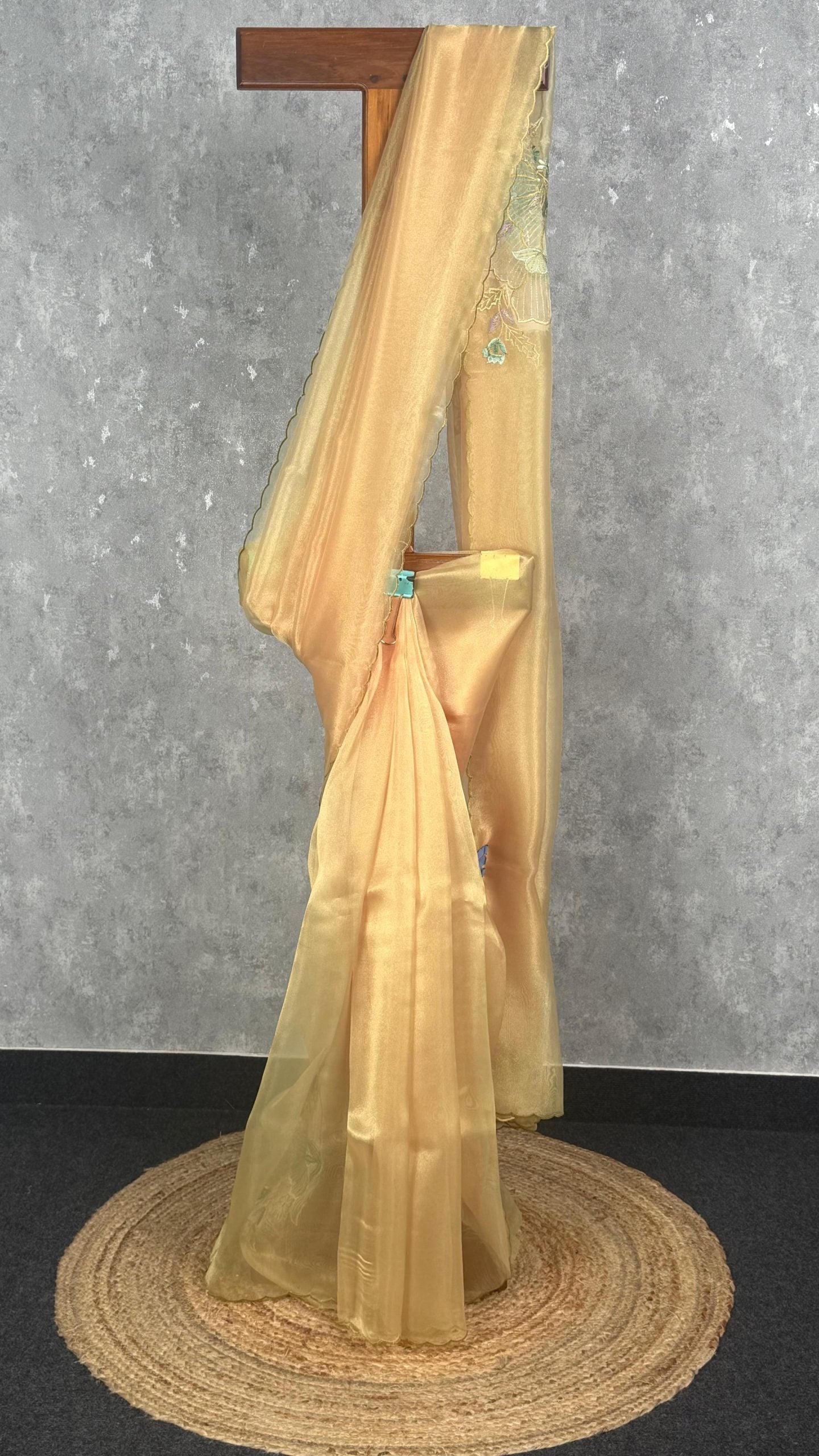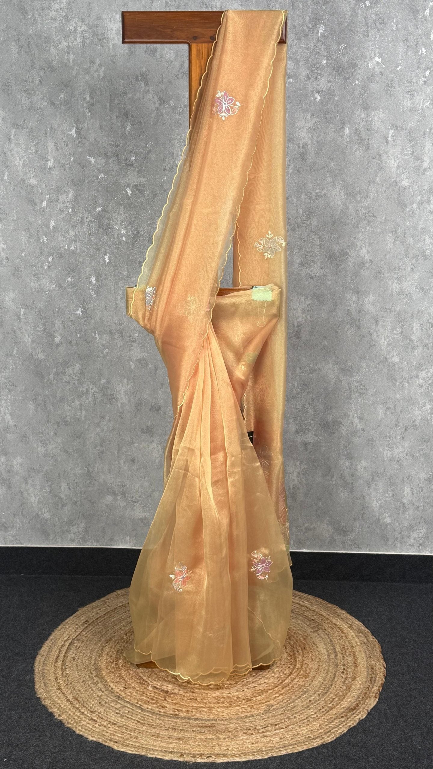 SEMI ORGANZA TISSUE APPLIQUE EMBROIDERY SAREE