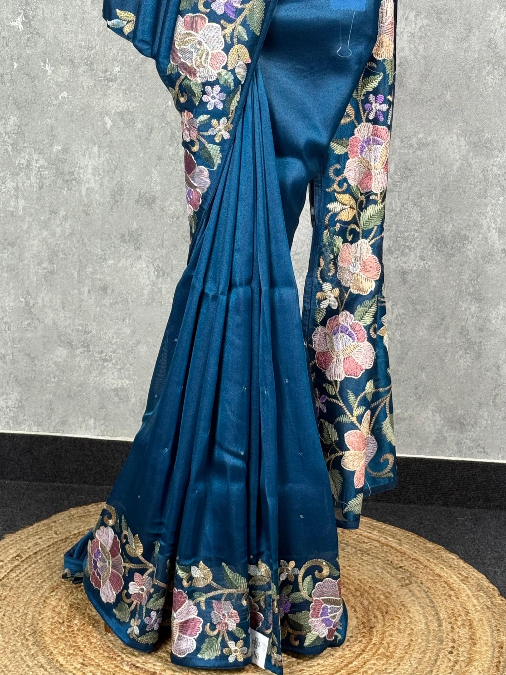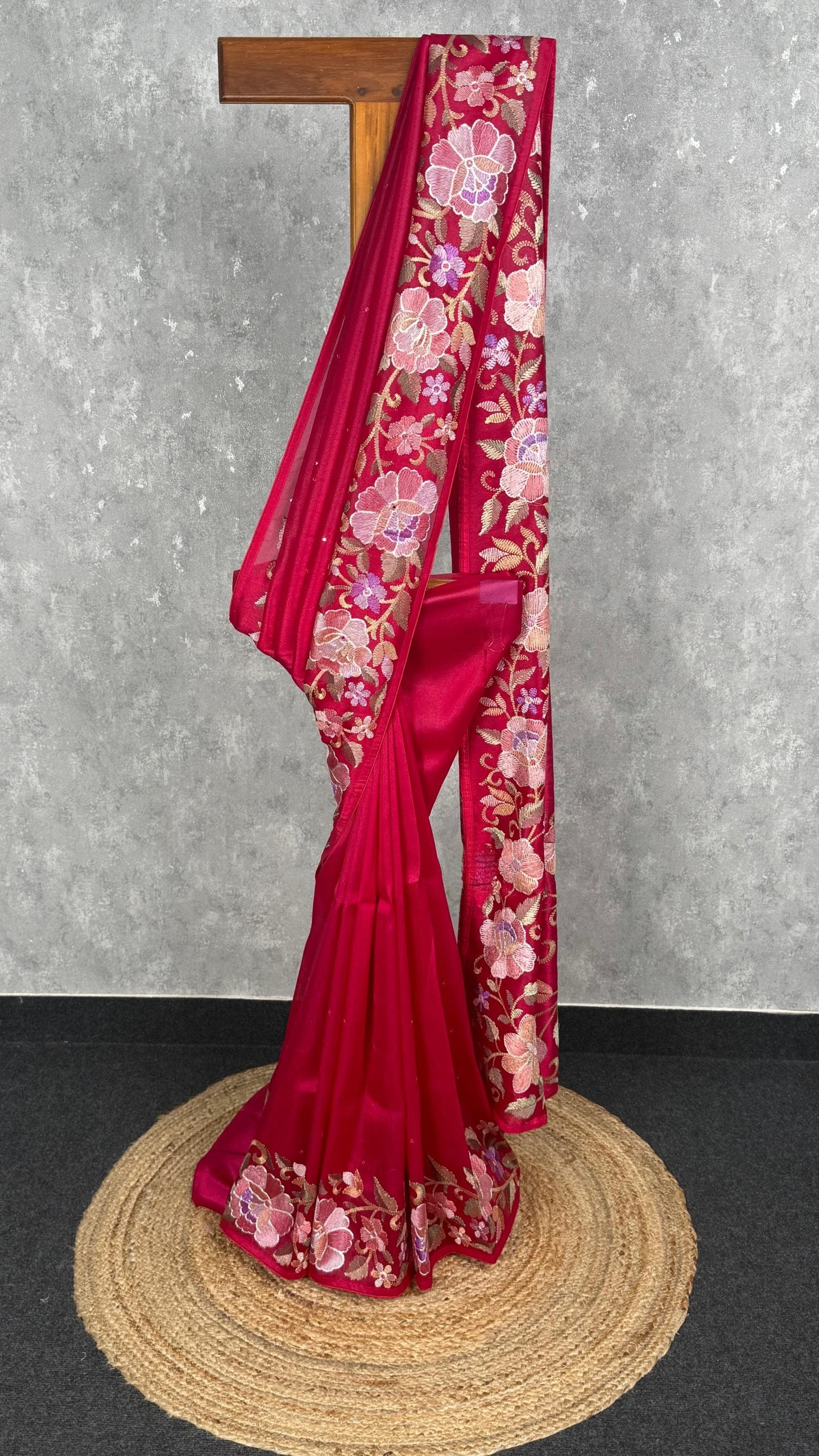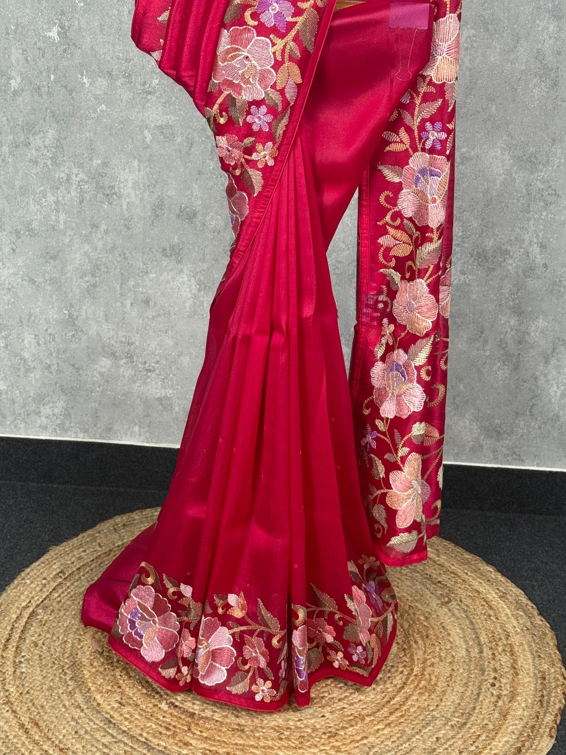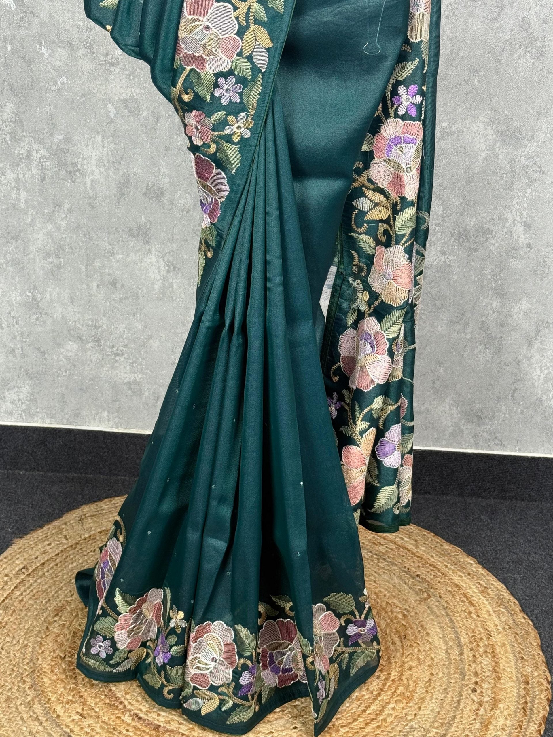SEMI ORGANZA TISSUE APPLIQUE EMBROIDERY SAREE