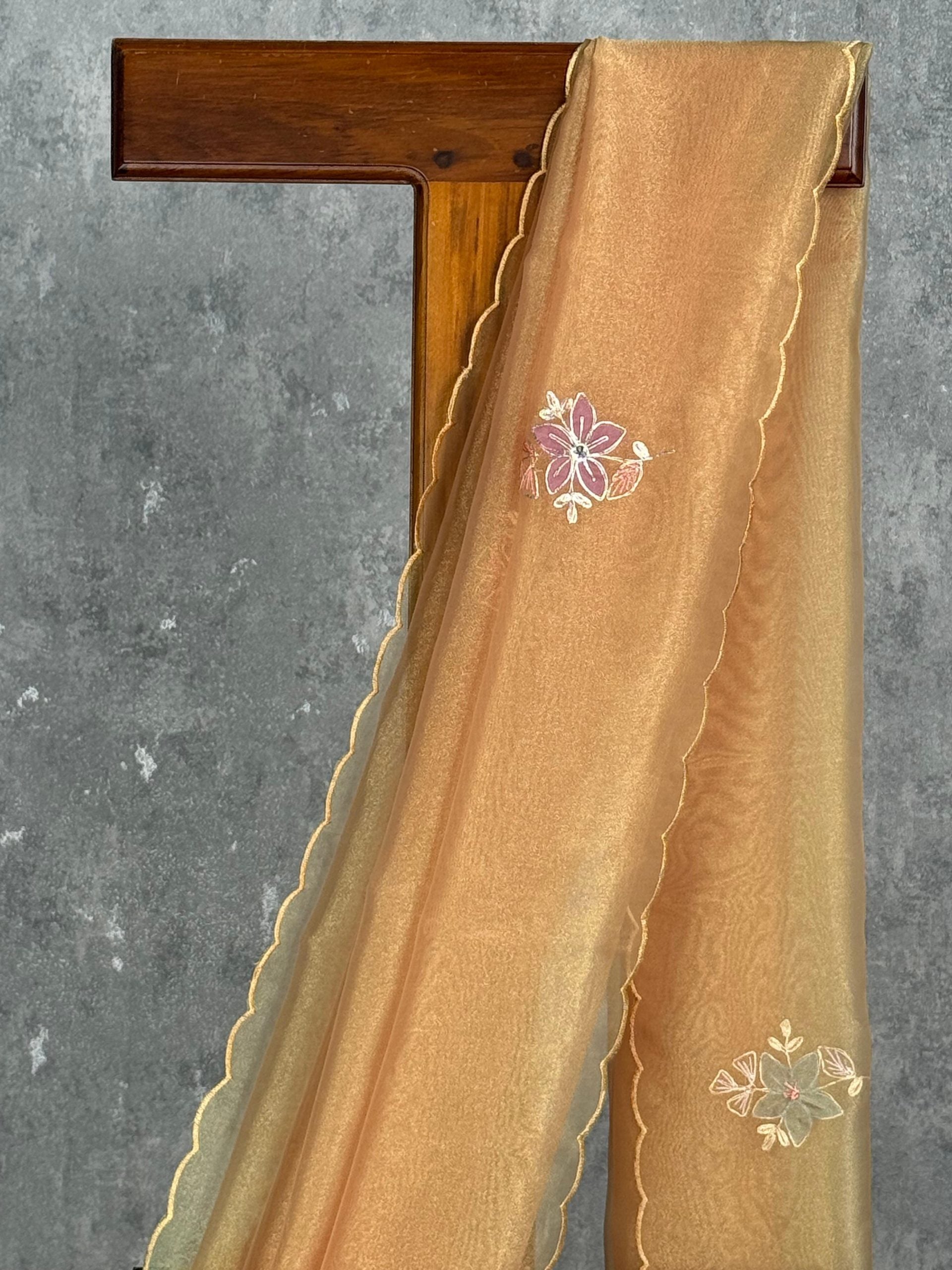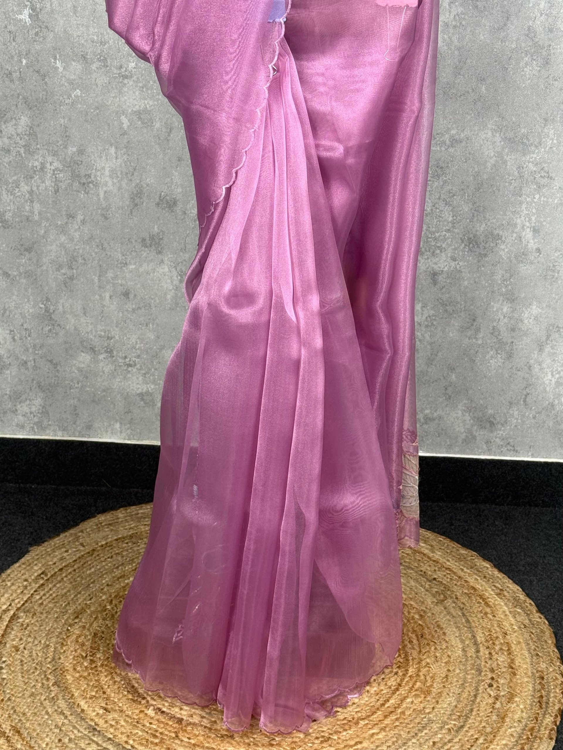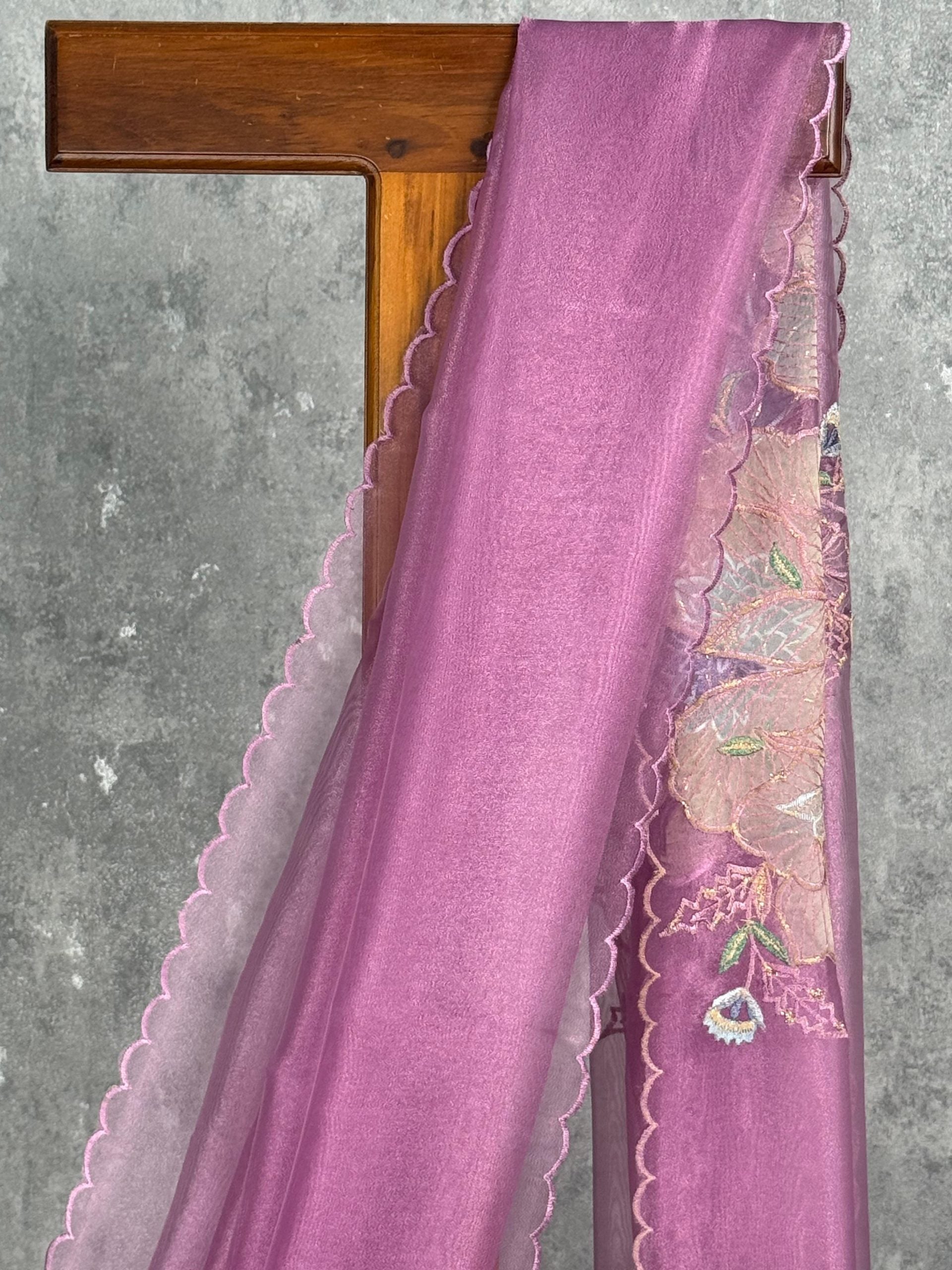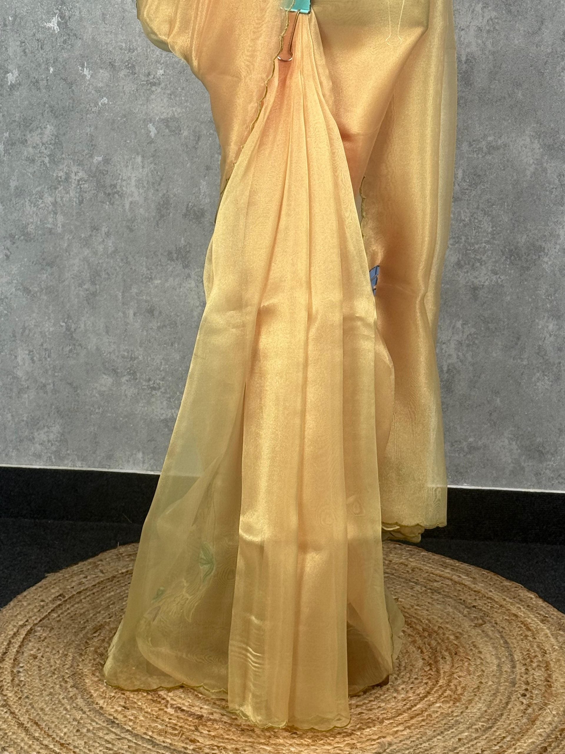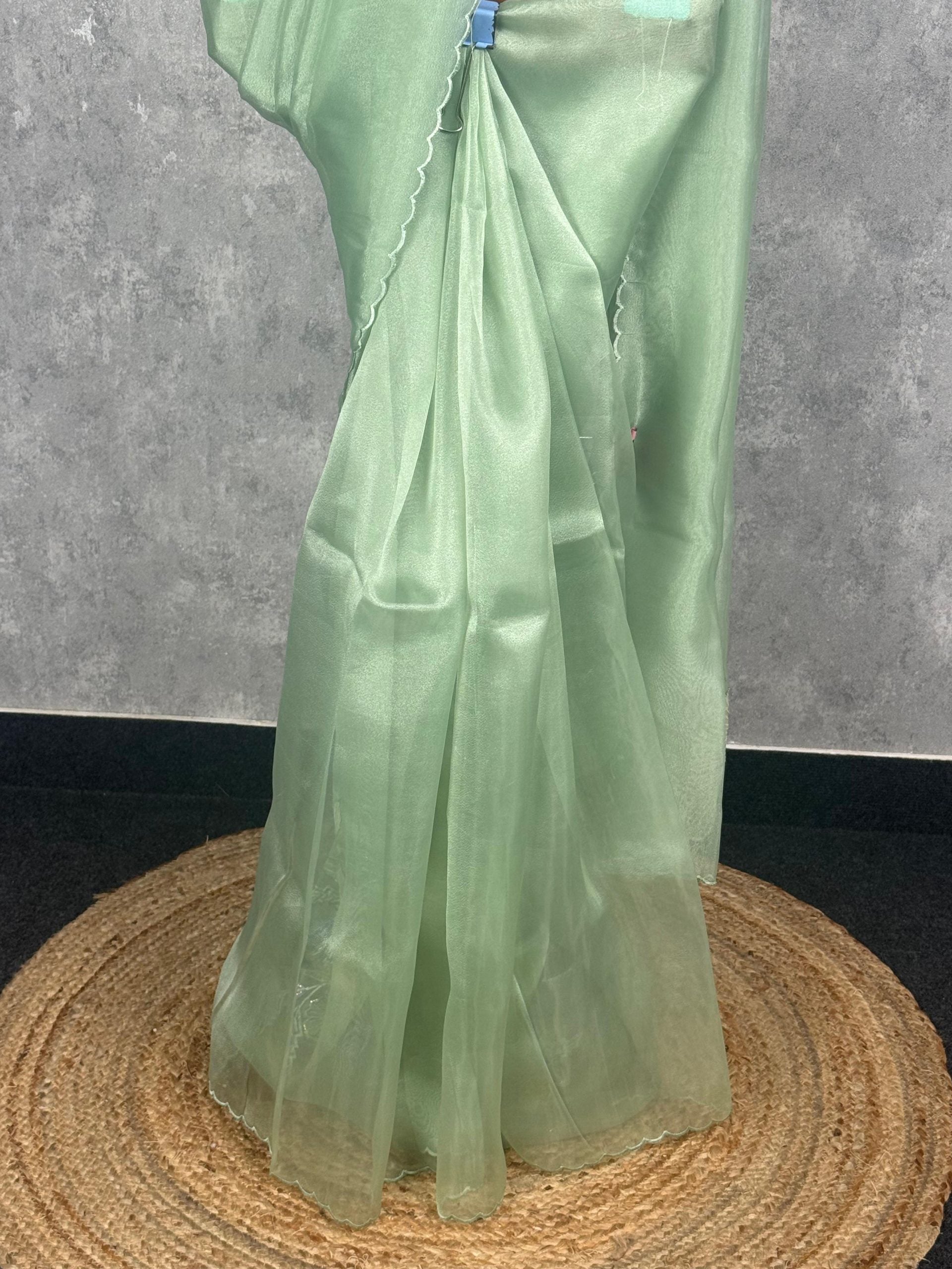 SEMI ORGANZA TISSUE APPLIQUE EMBROIDERY SAREE