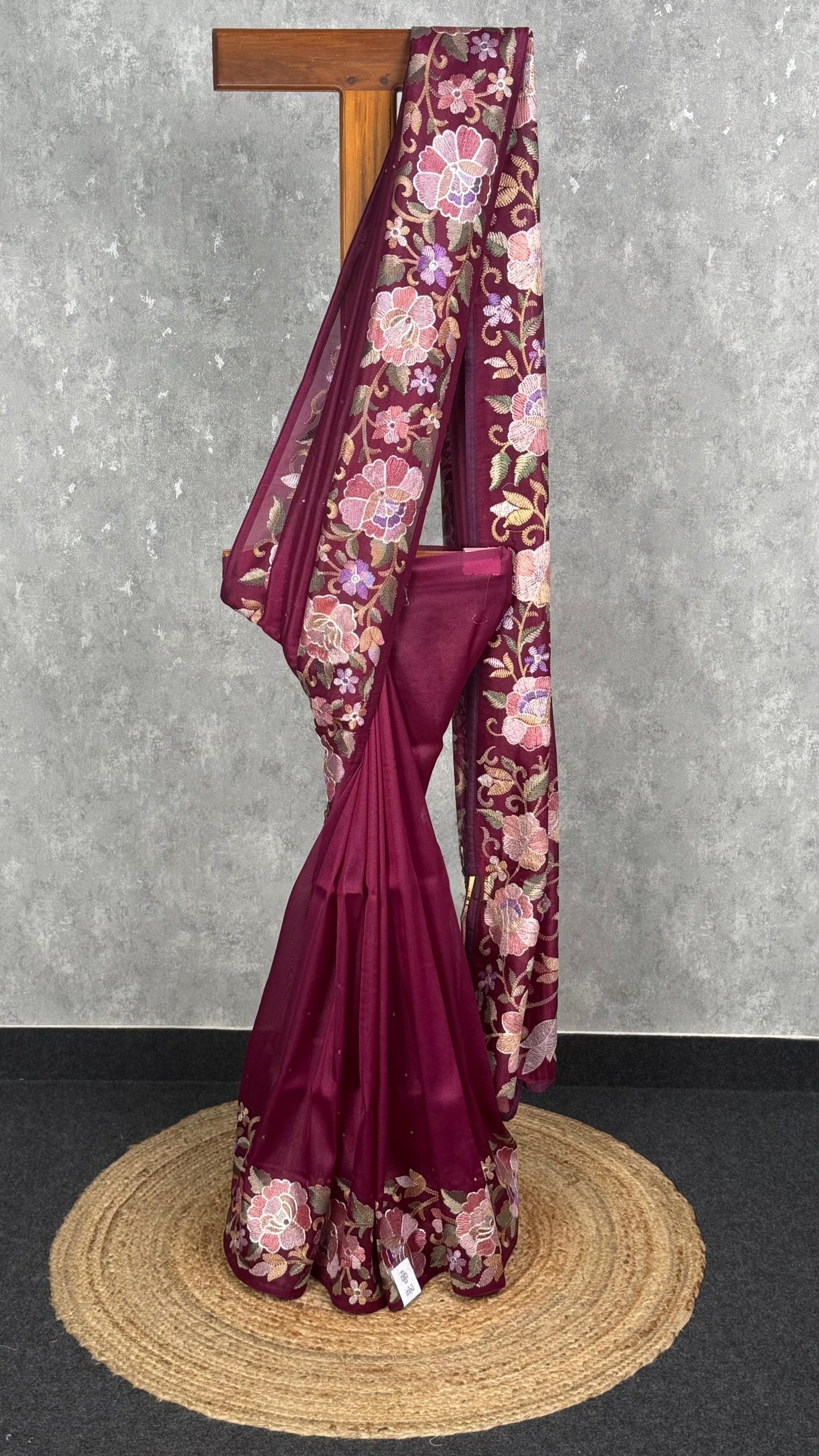SEMI ORGANZA THREAD EMBROIDERY SAREE