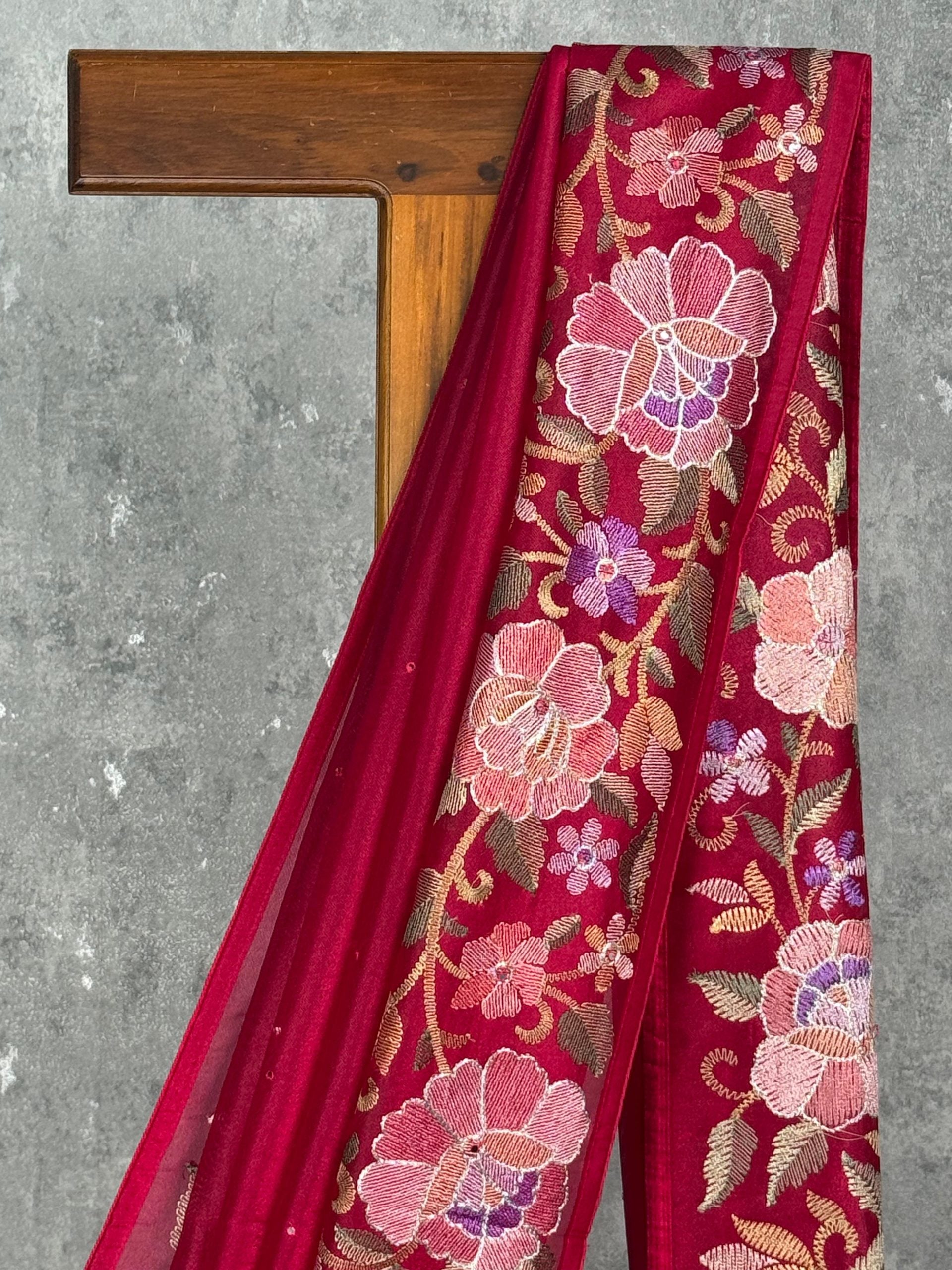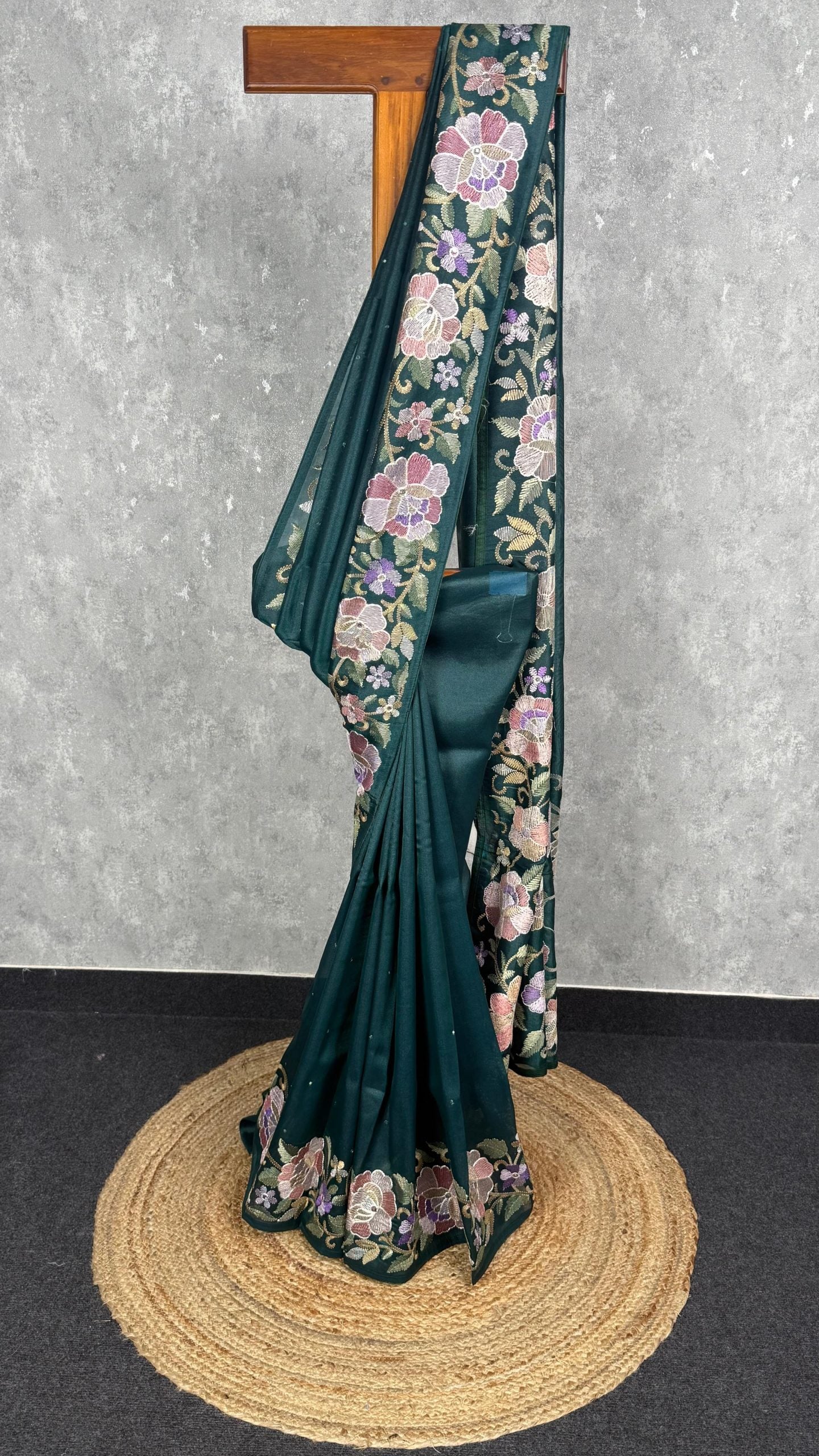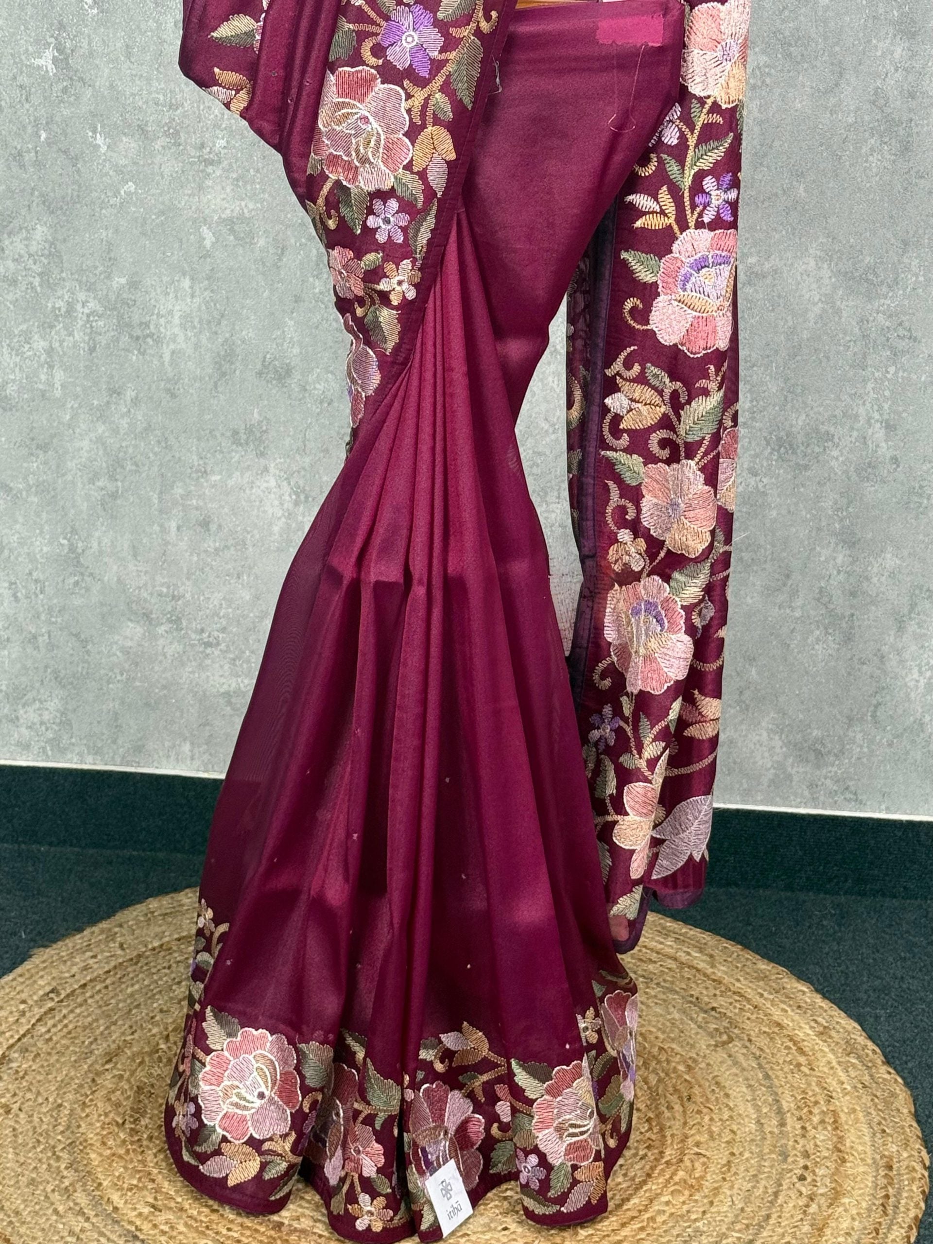 SEMI ORGANZA KANTHA STITCH EMBROIDERY SAREE