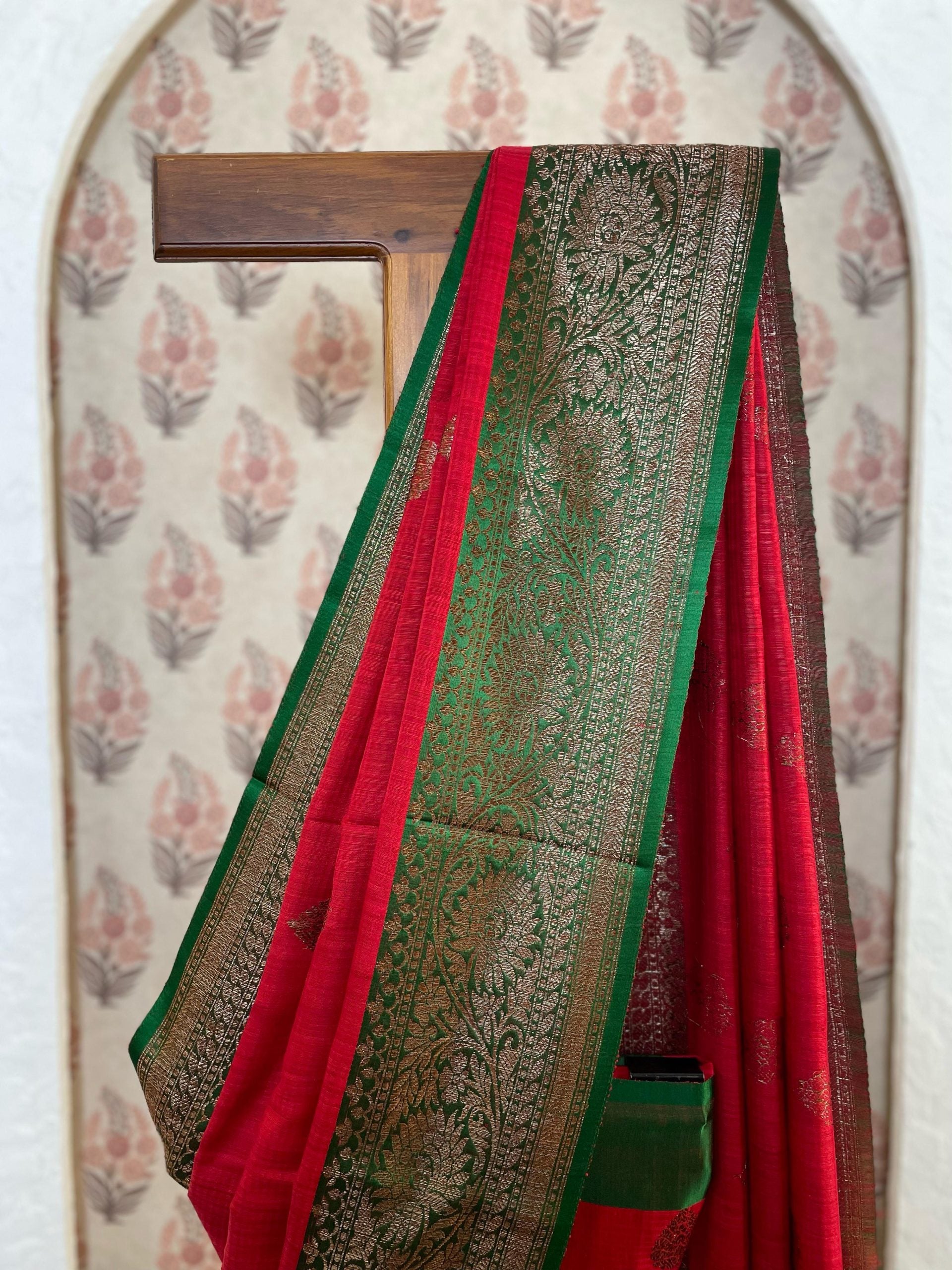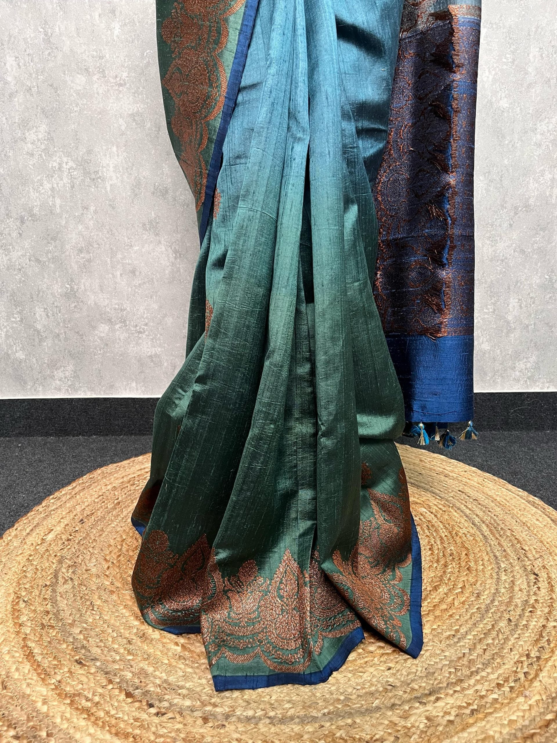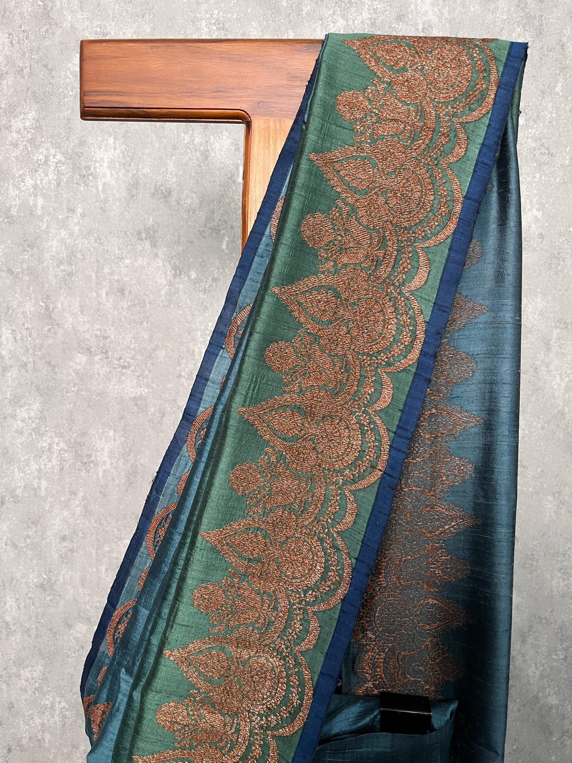 TUSSAR GEORGETTE CONTRAST BANARASI SAREE