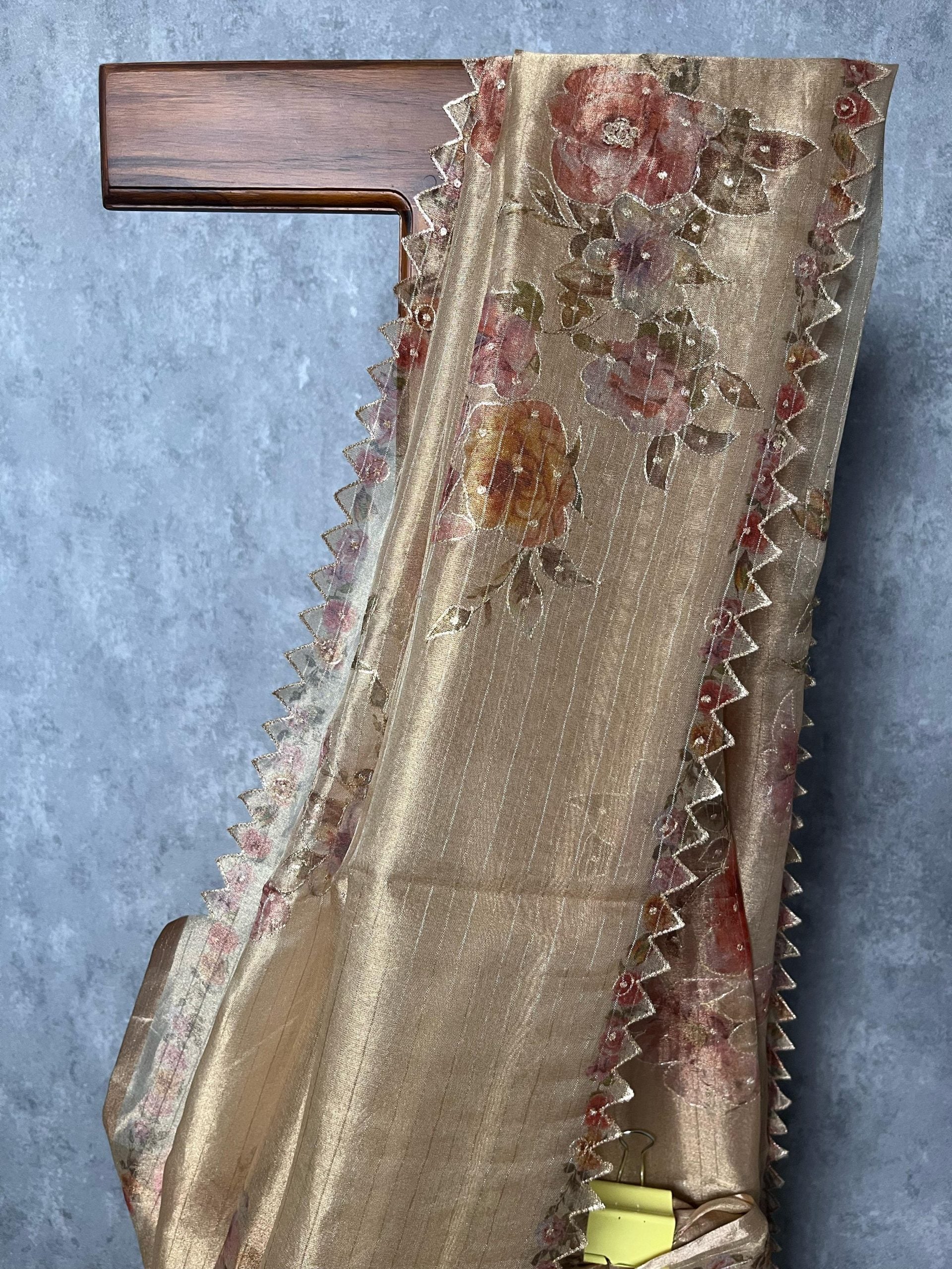 TISSUE SILK ORGANZA HAND PAINTED SAREE
