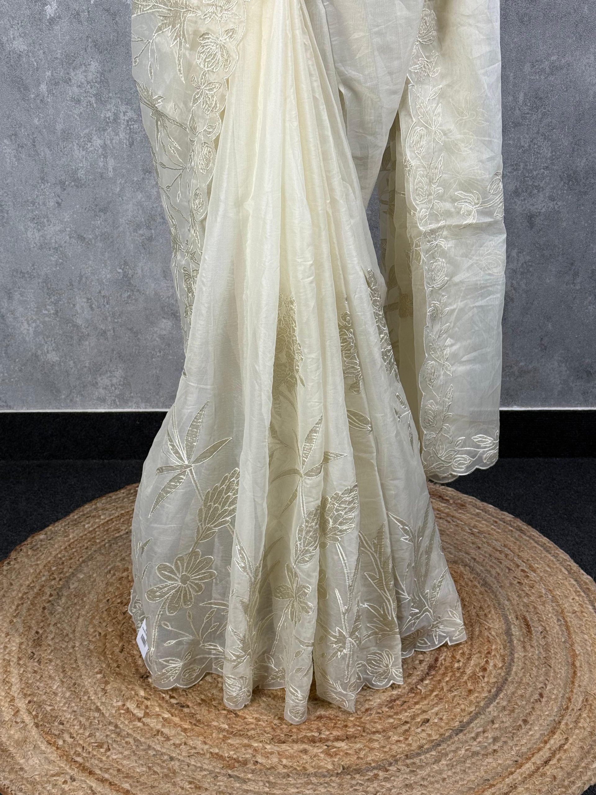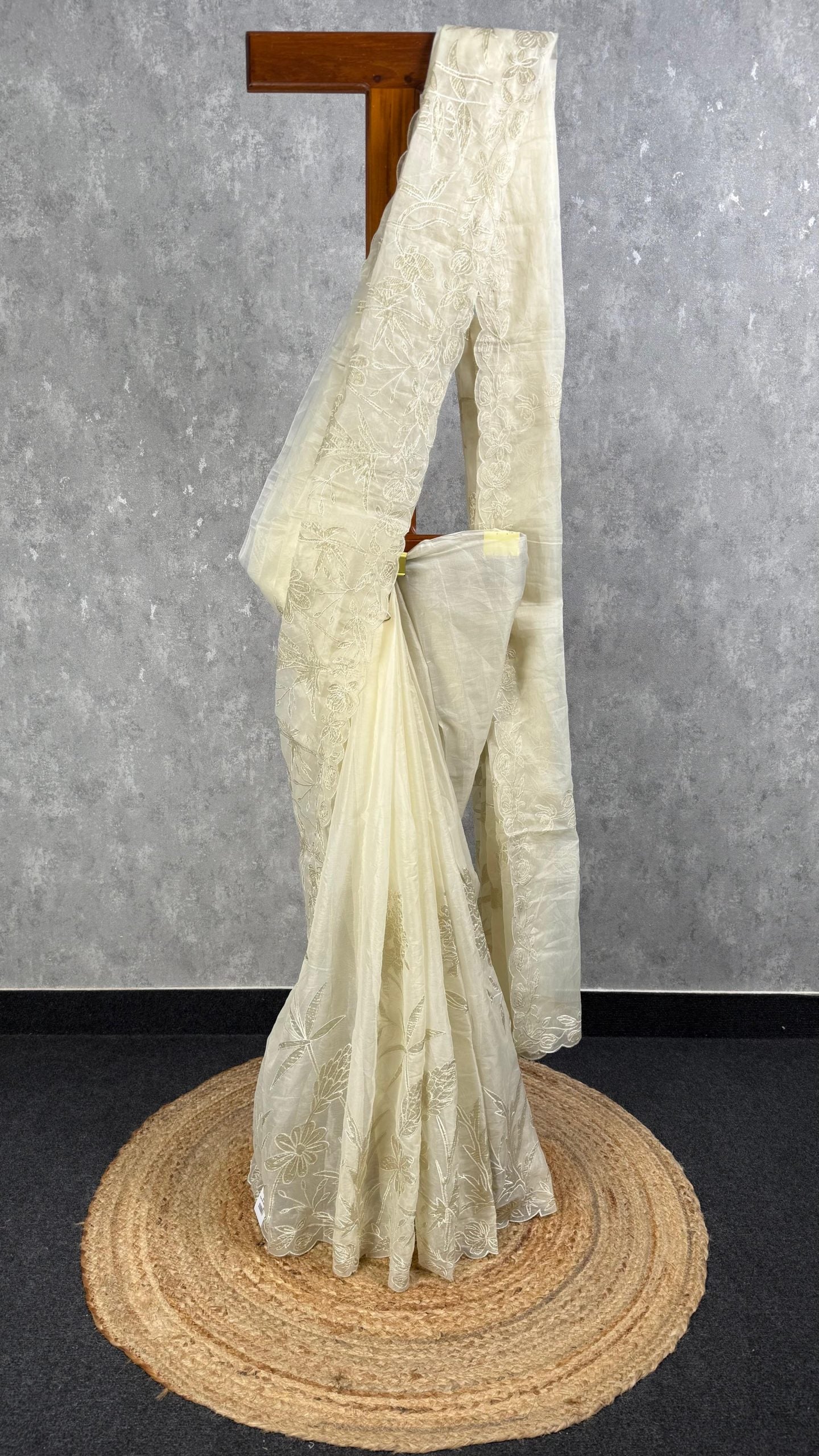 SEMI ORGANZA TISSUE APPLIQUE EMBROIDERY SAREE