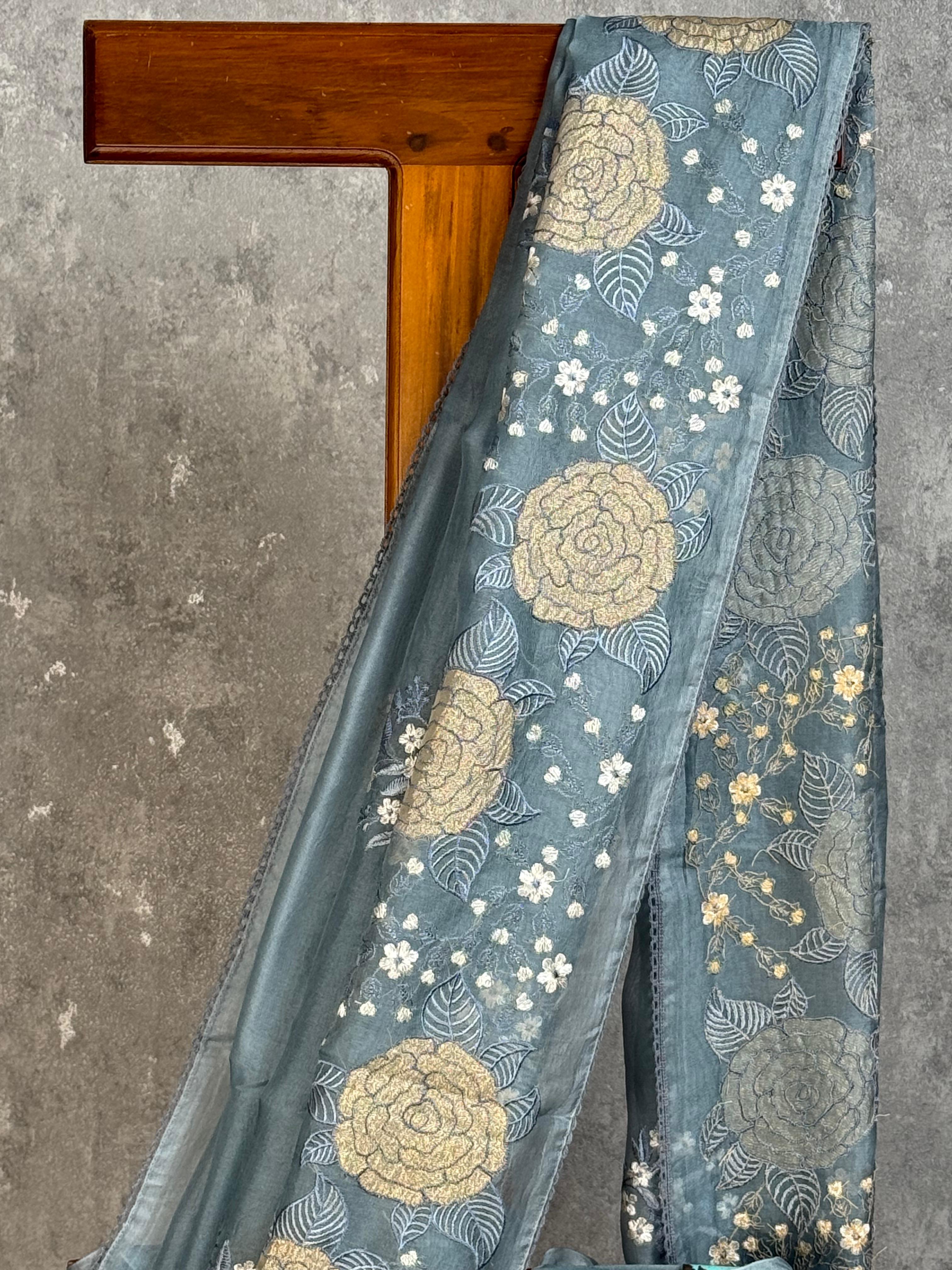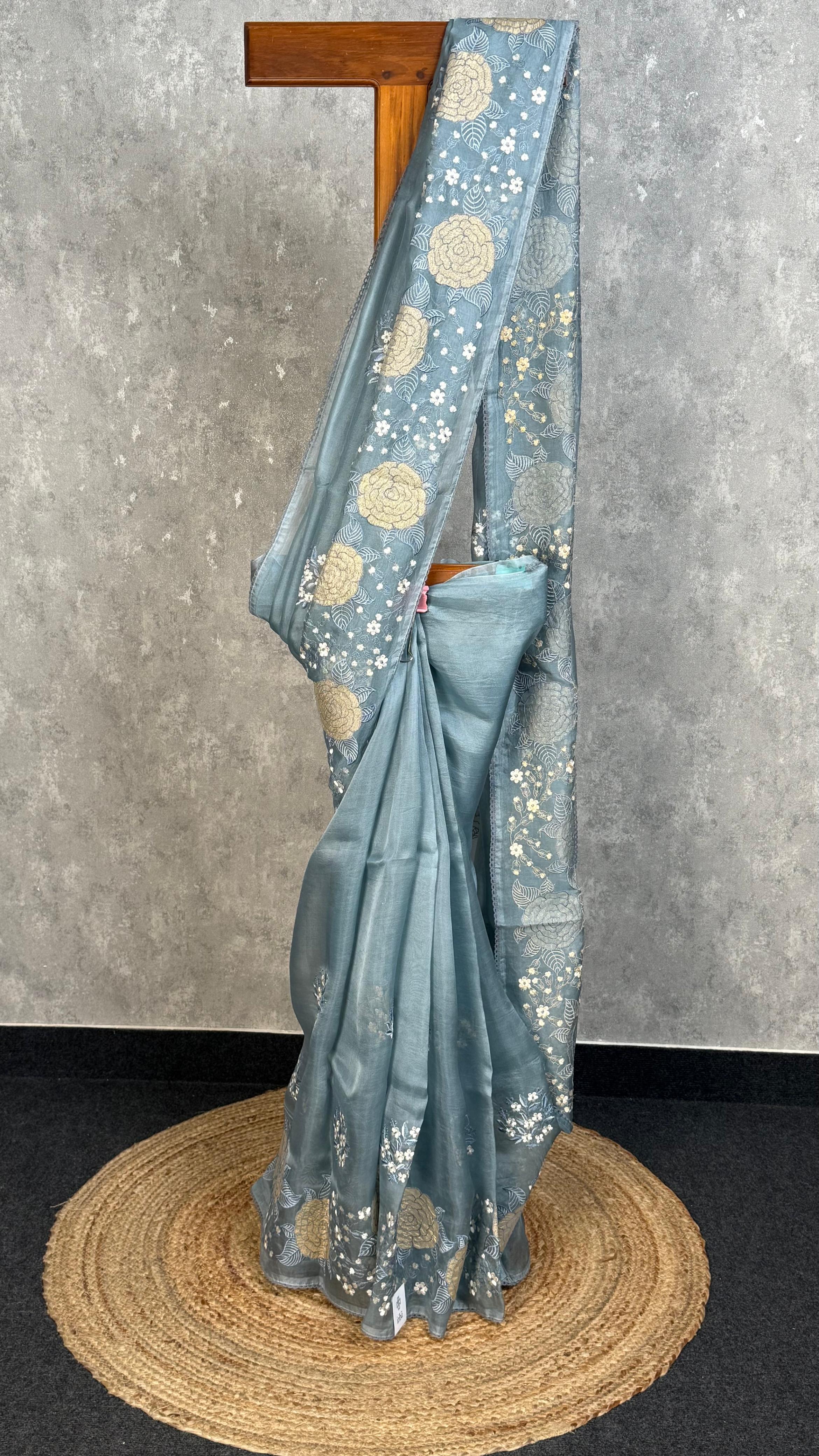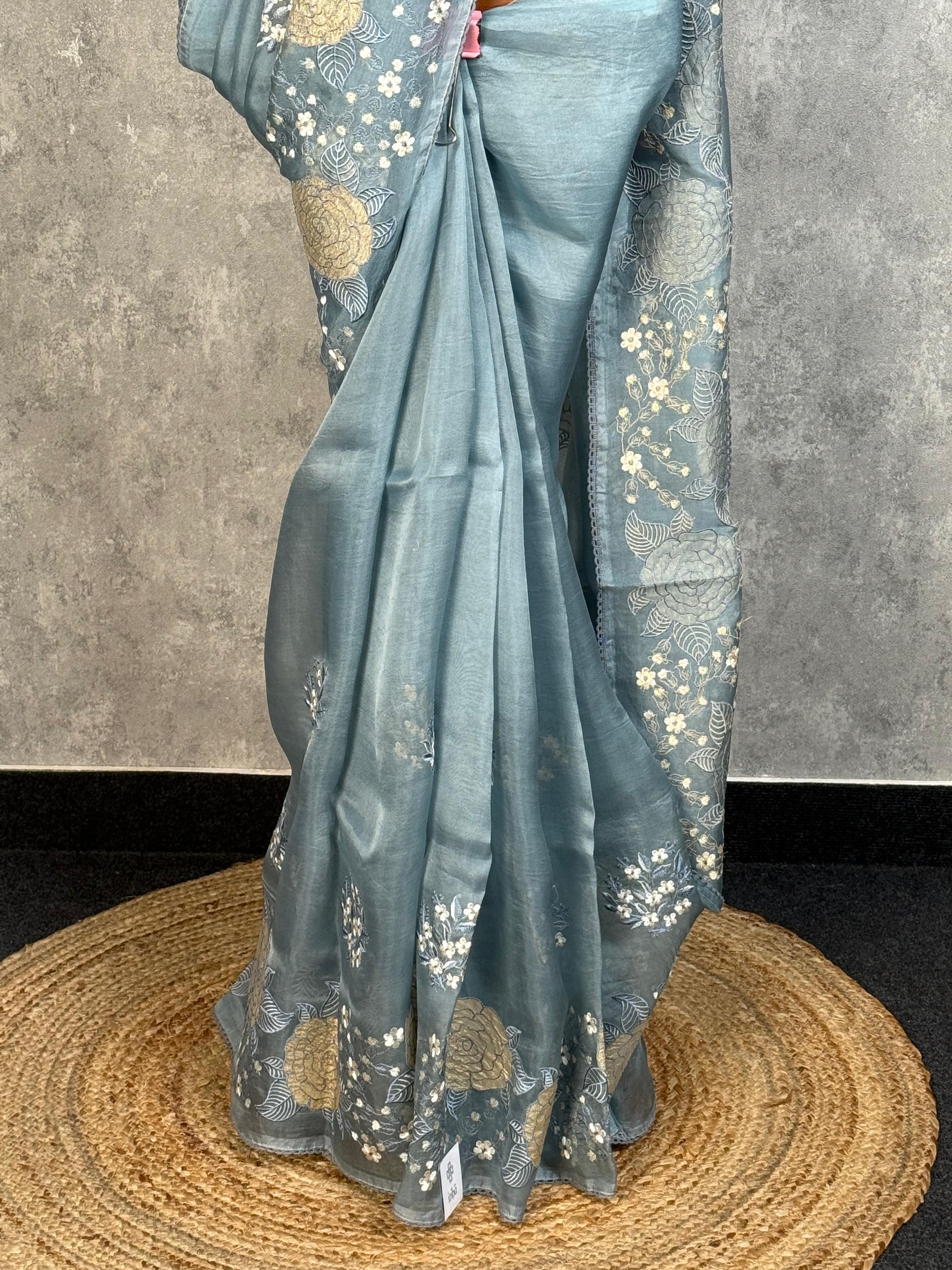 SILK ORGANZA APPLIQUE SAREE