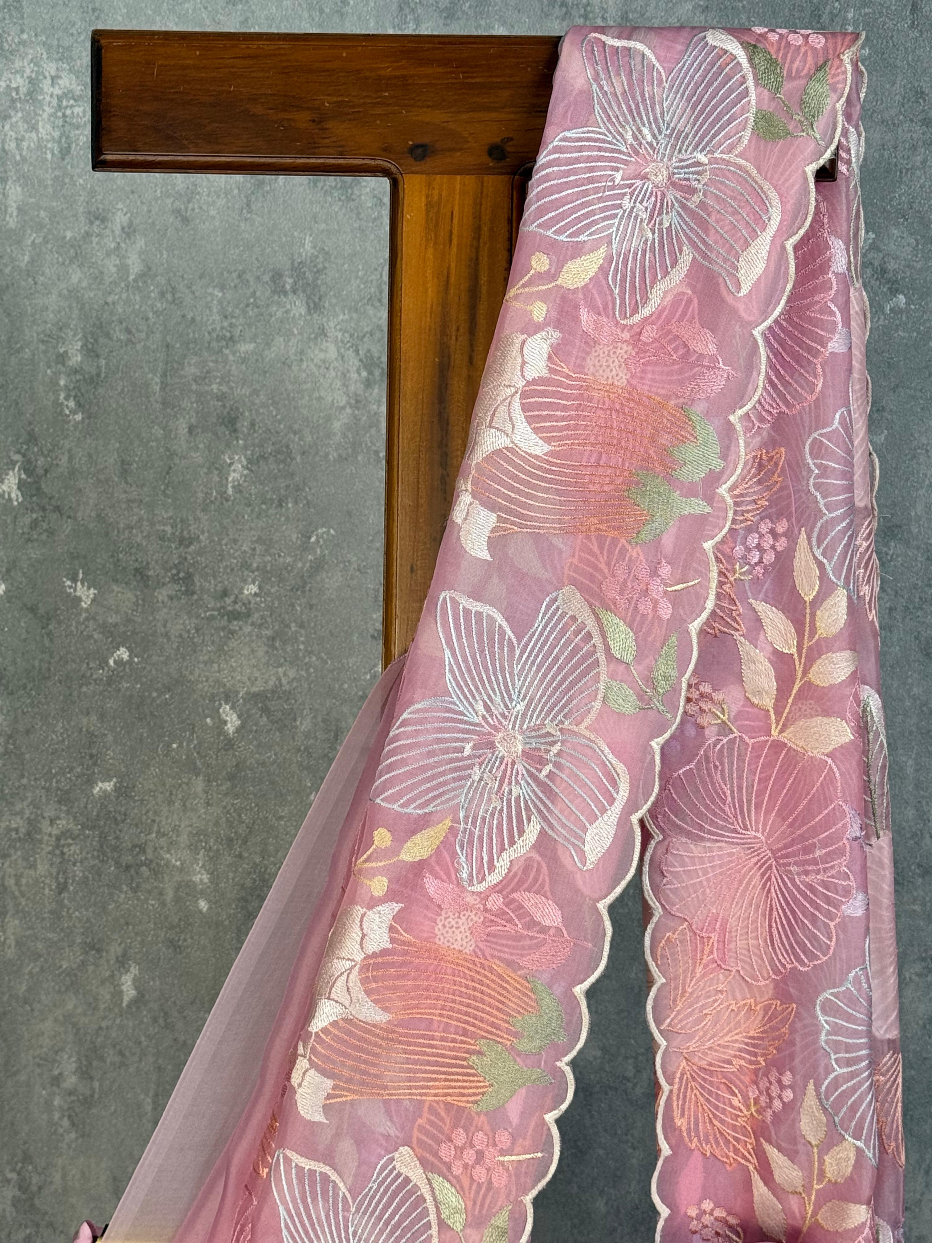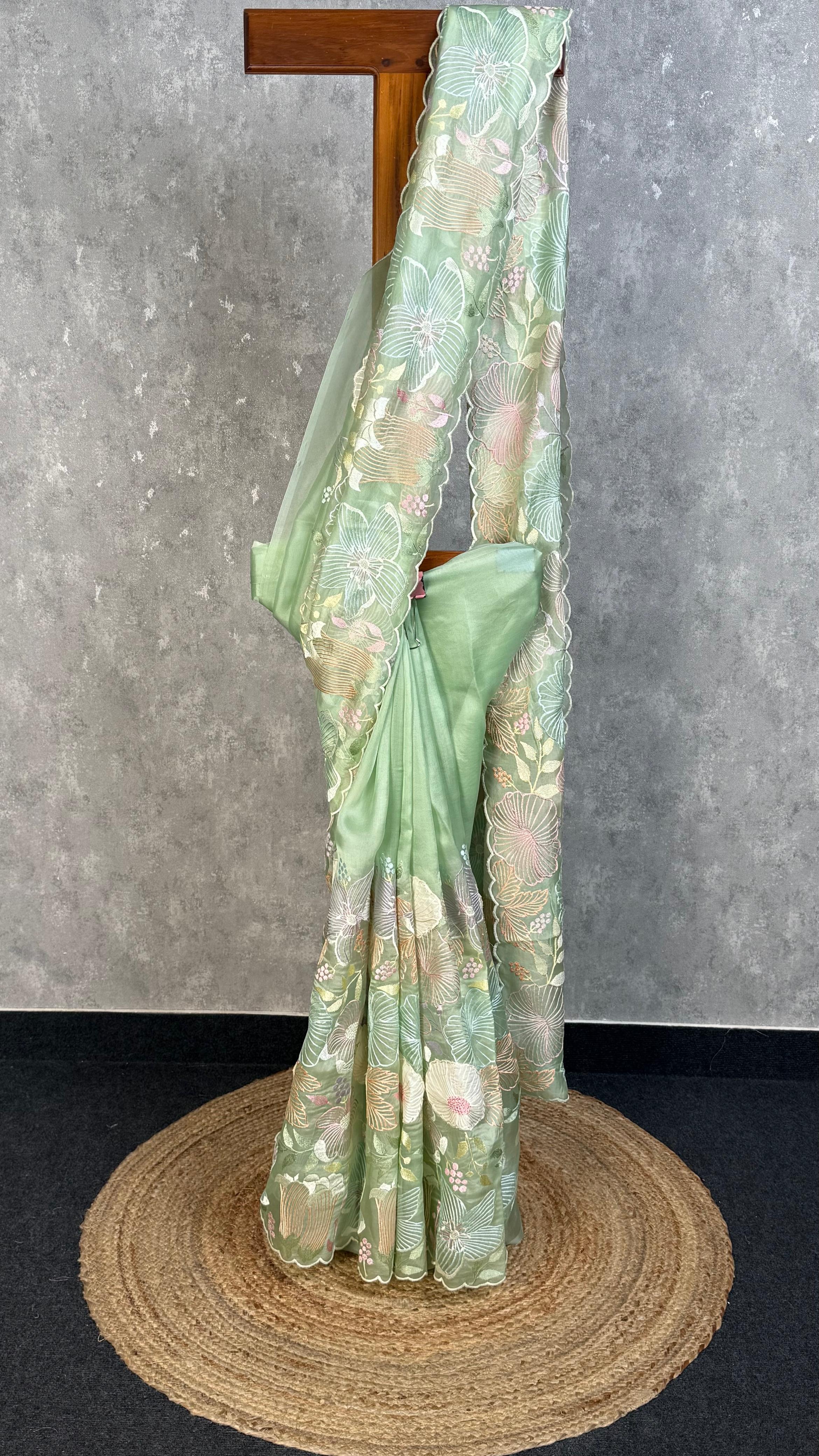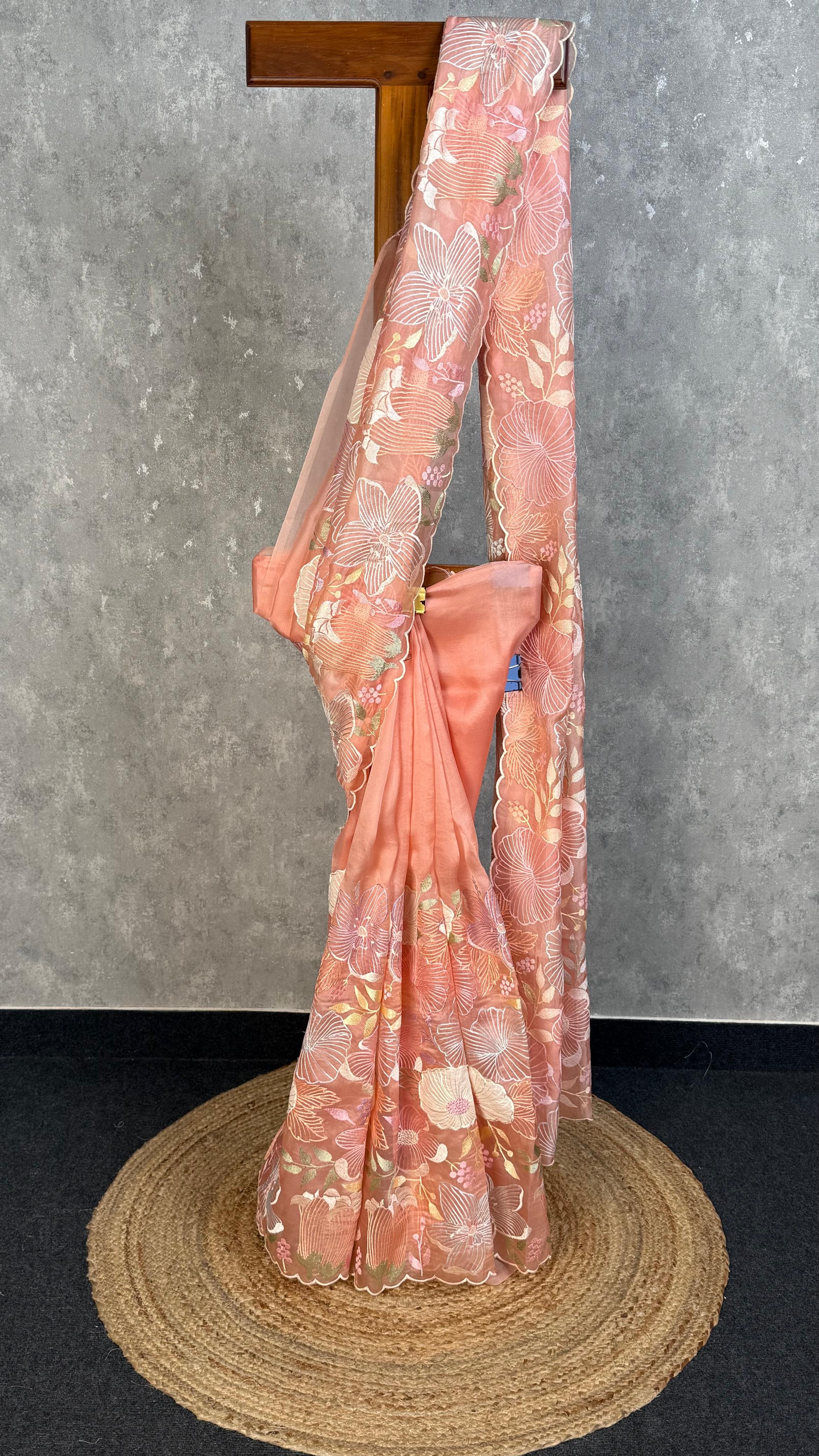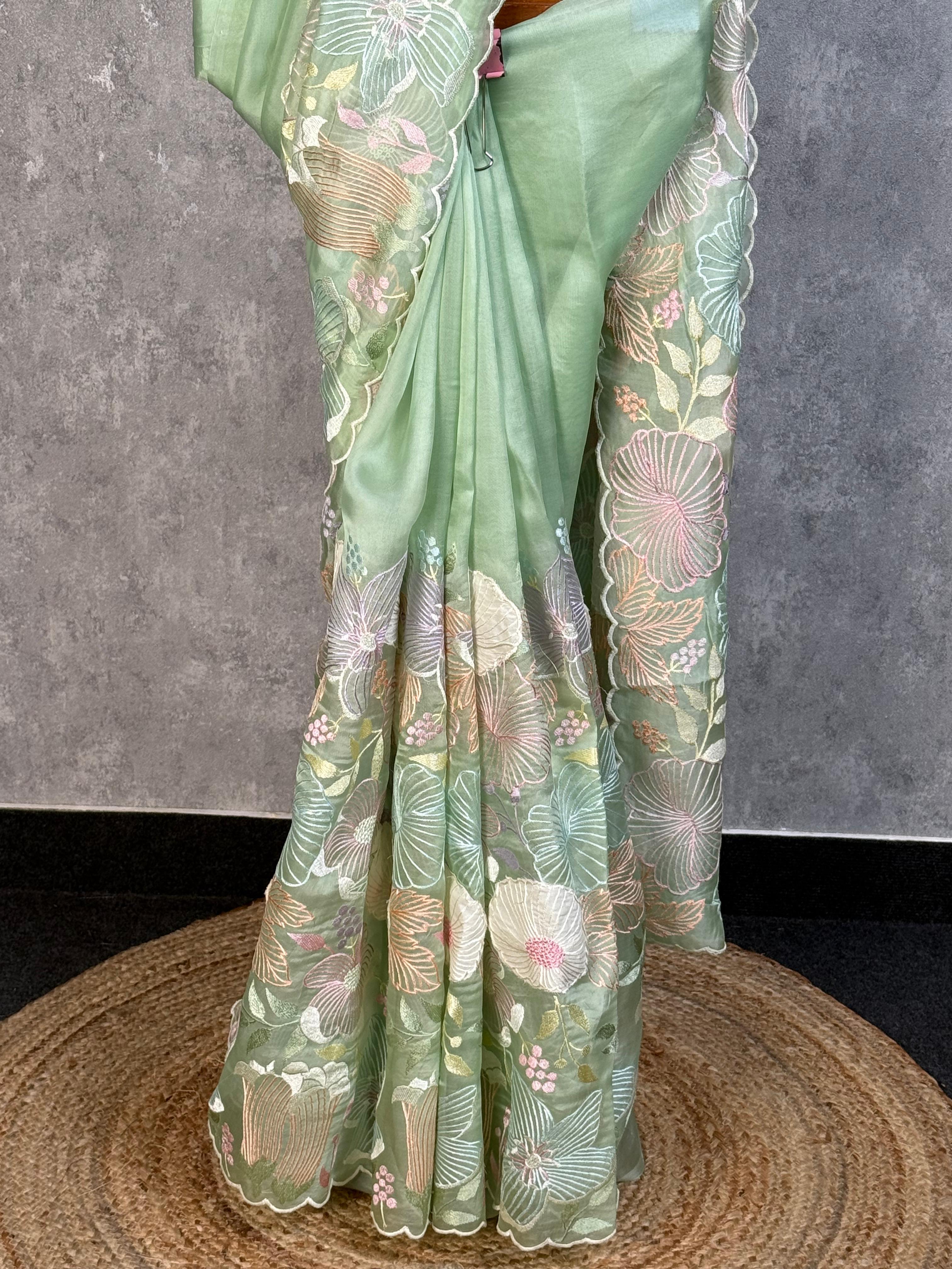 SILK ORGAZNA APPLIQUE SAREE