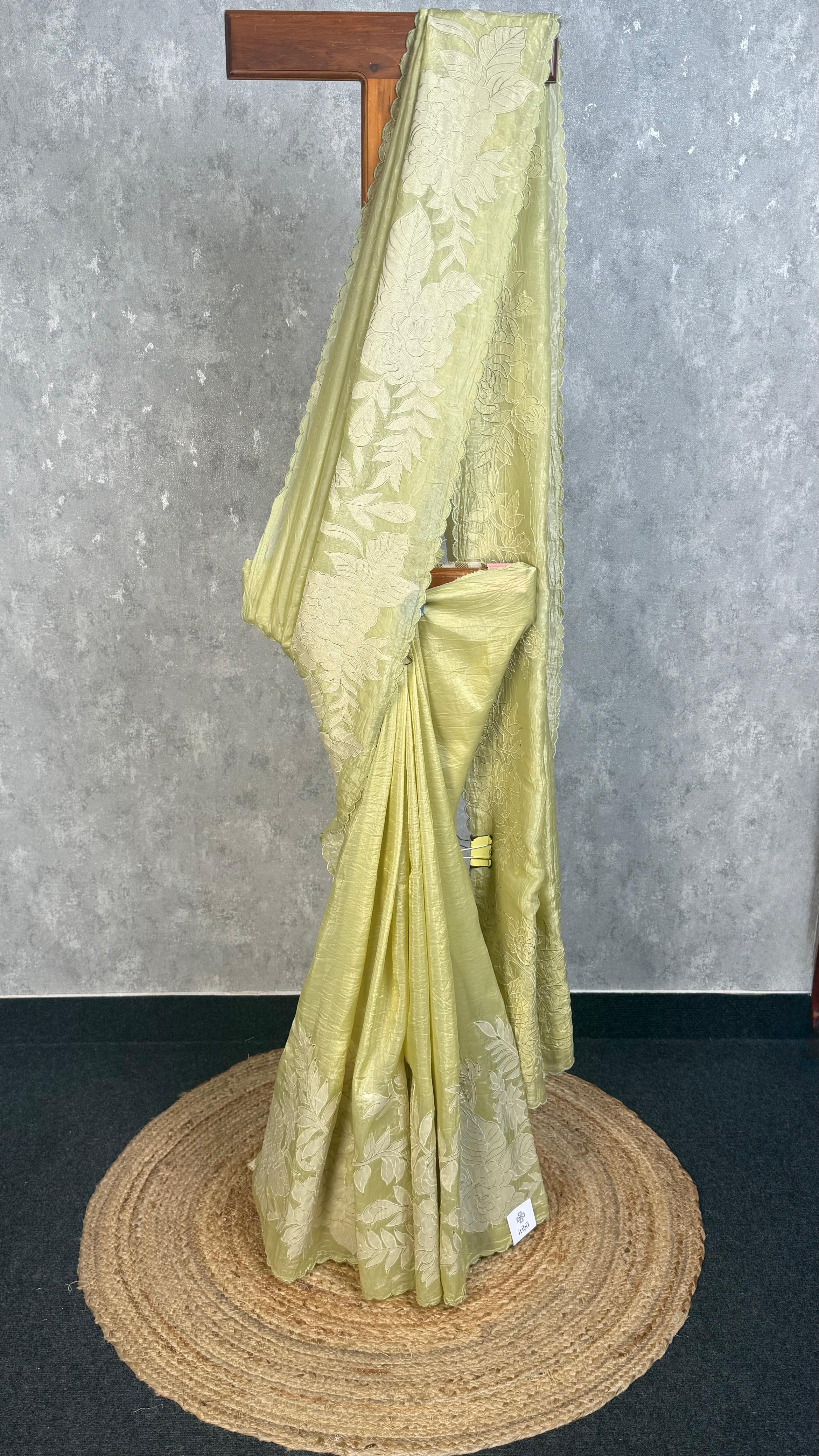 VISCOSE ORGANZA APPLIQUE EMBROIDERY SAREE