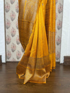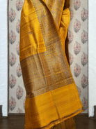 Pure tussar raw silk handloom saree with antique zari banarasi weave with bhutta design. The saree comes with self color blouse piece with antique zari border.