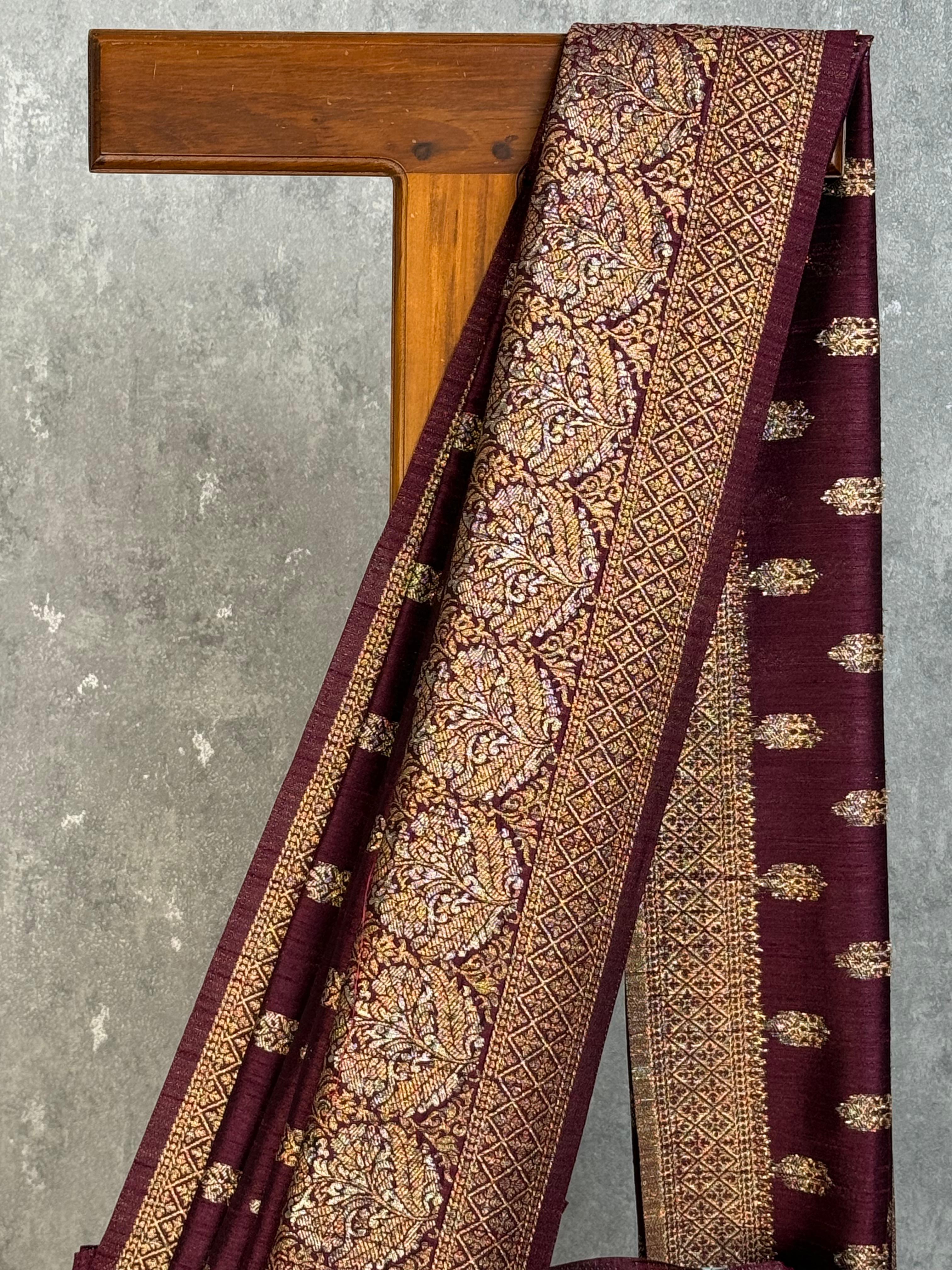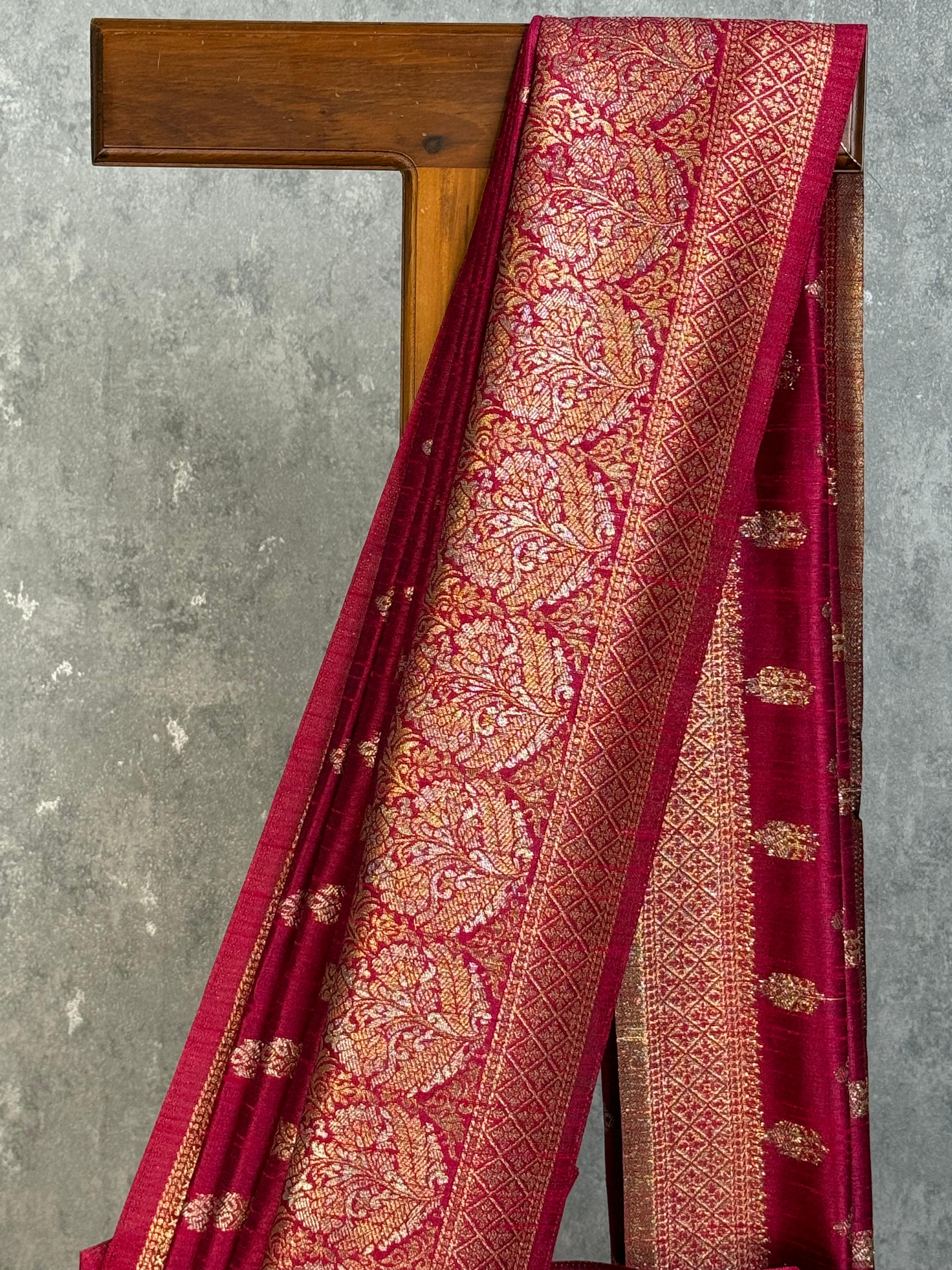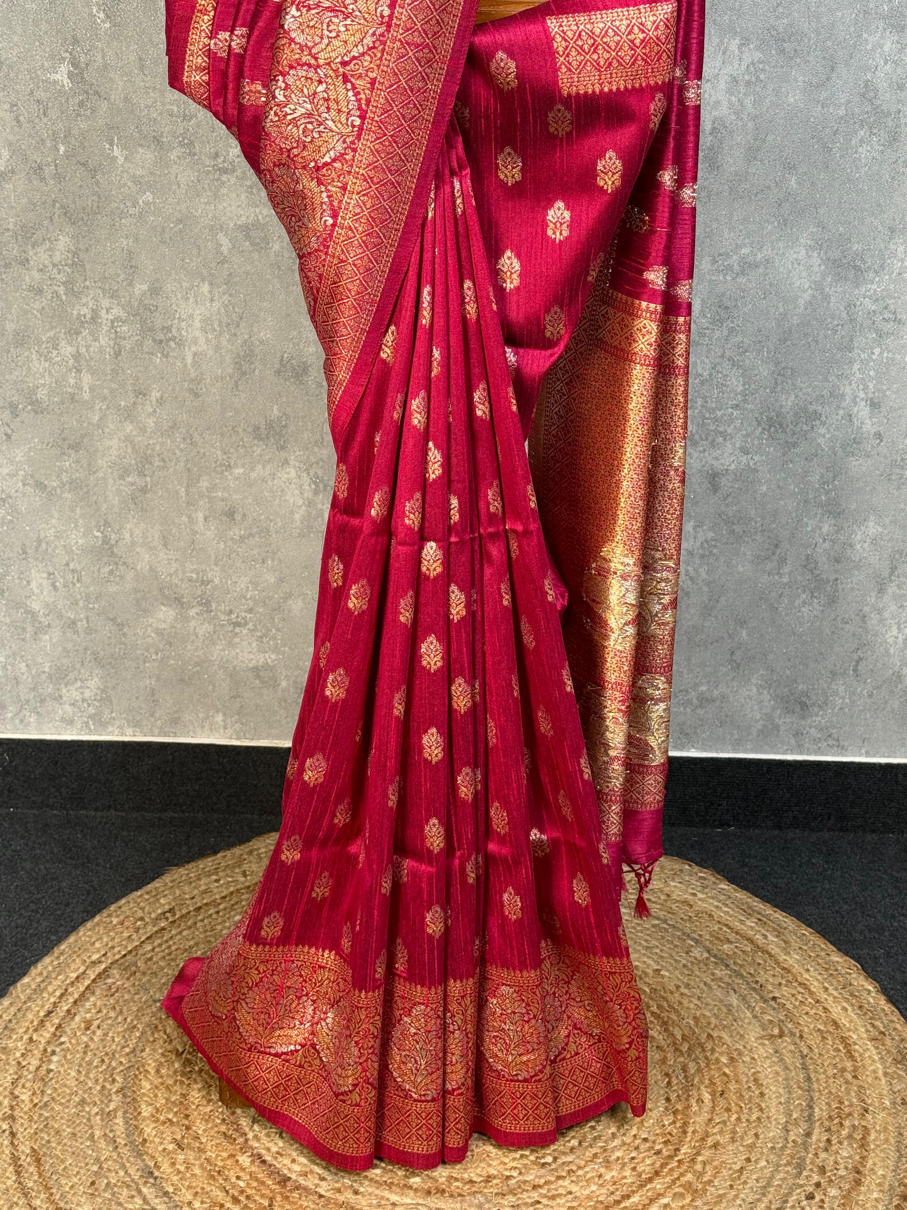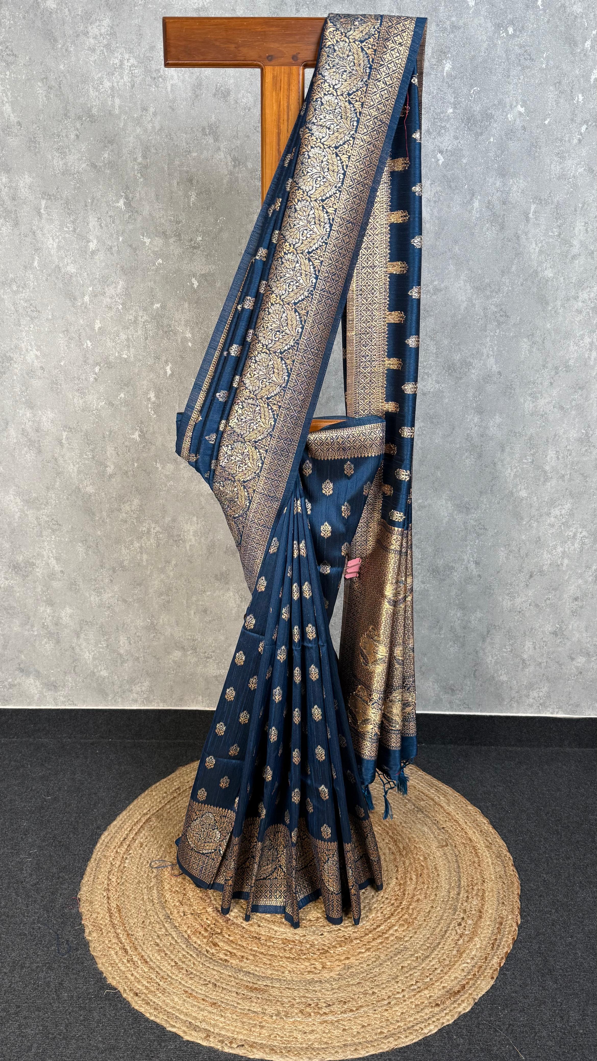 Experience the timeless elegance of our Semi Raw Silk Weaving Banarasi Saree, a masterpiece that blends traditional craftsmanship with refined sophistication. Handwoven using premium semi-raw silk, this saree showcases the intricate weaving techniques that Banarasi sarees are celebrated for, creating a fabric with natural texture and subtle lustre. Perfect for weddings, festivals, and special occasions, this piece brings authentic heritage and graceful drape to your wardrobe.