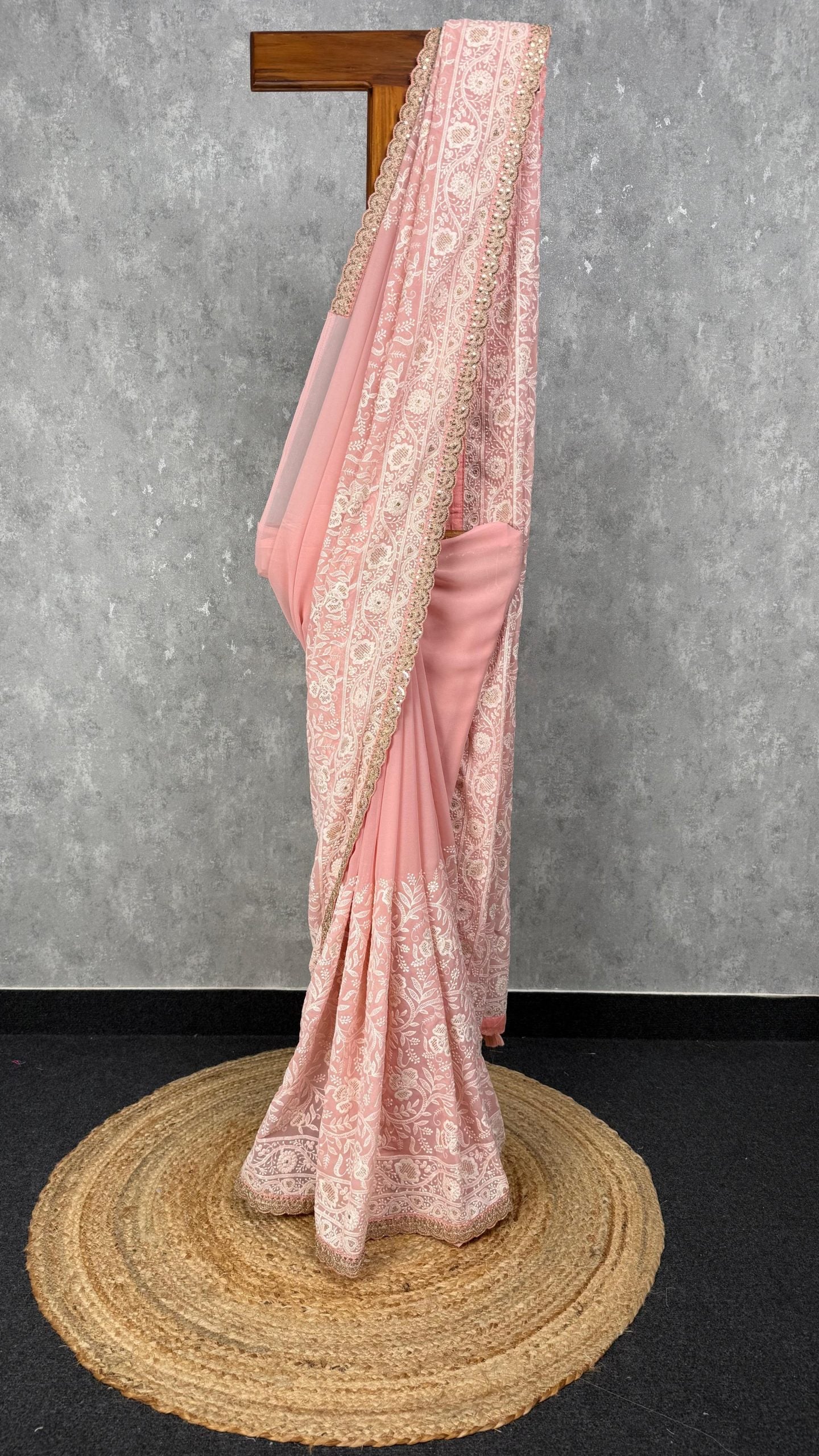 GEORGETTE CHIKANKARI EMBROIDERY SAREE