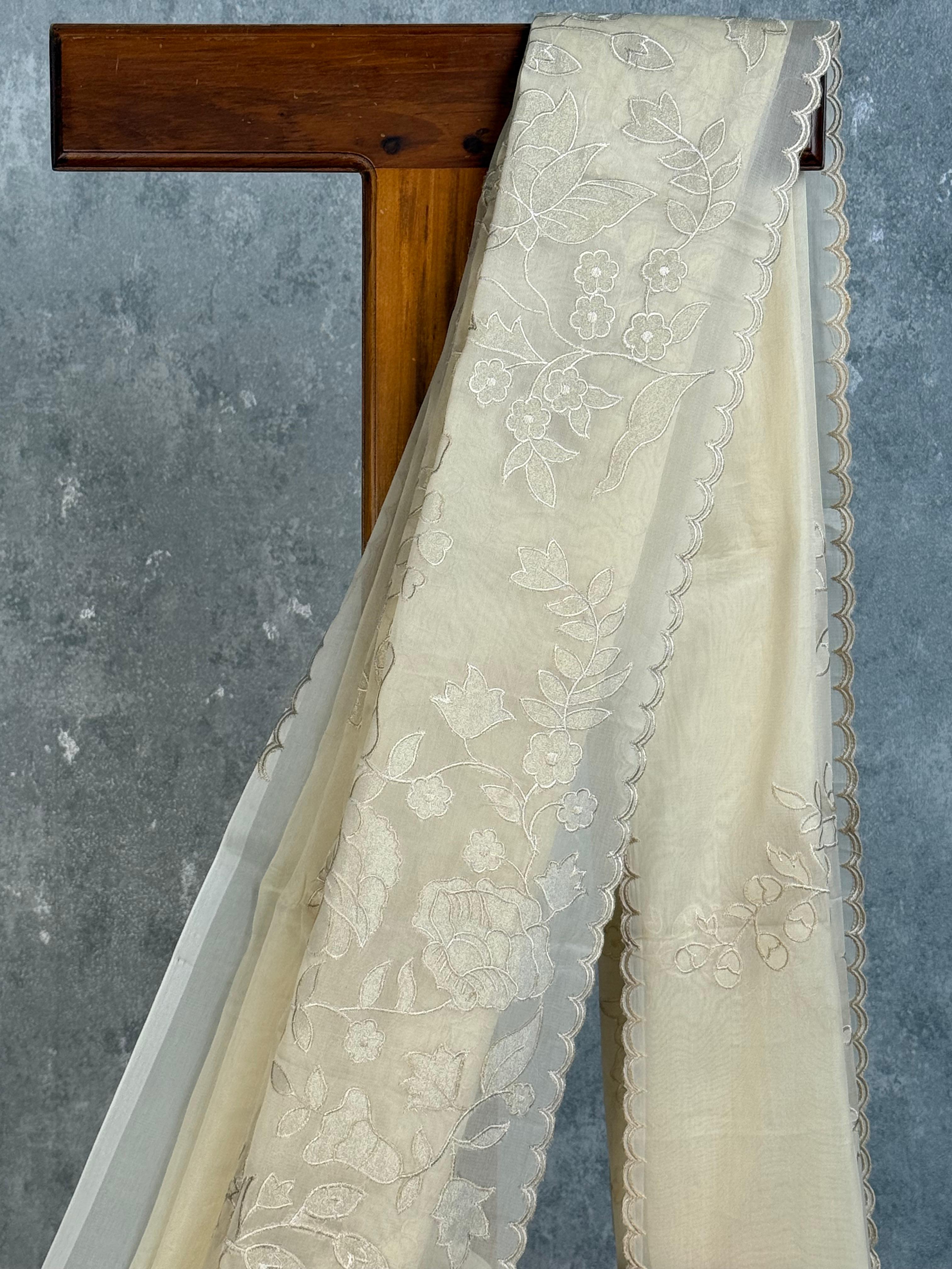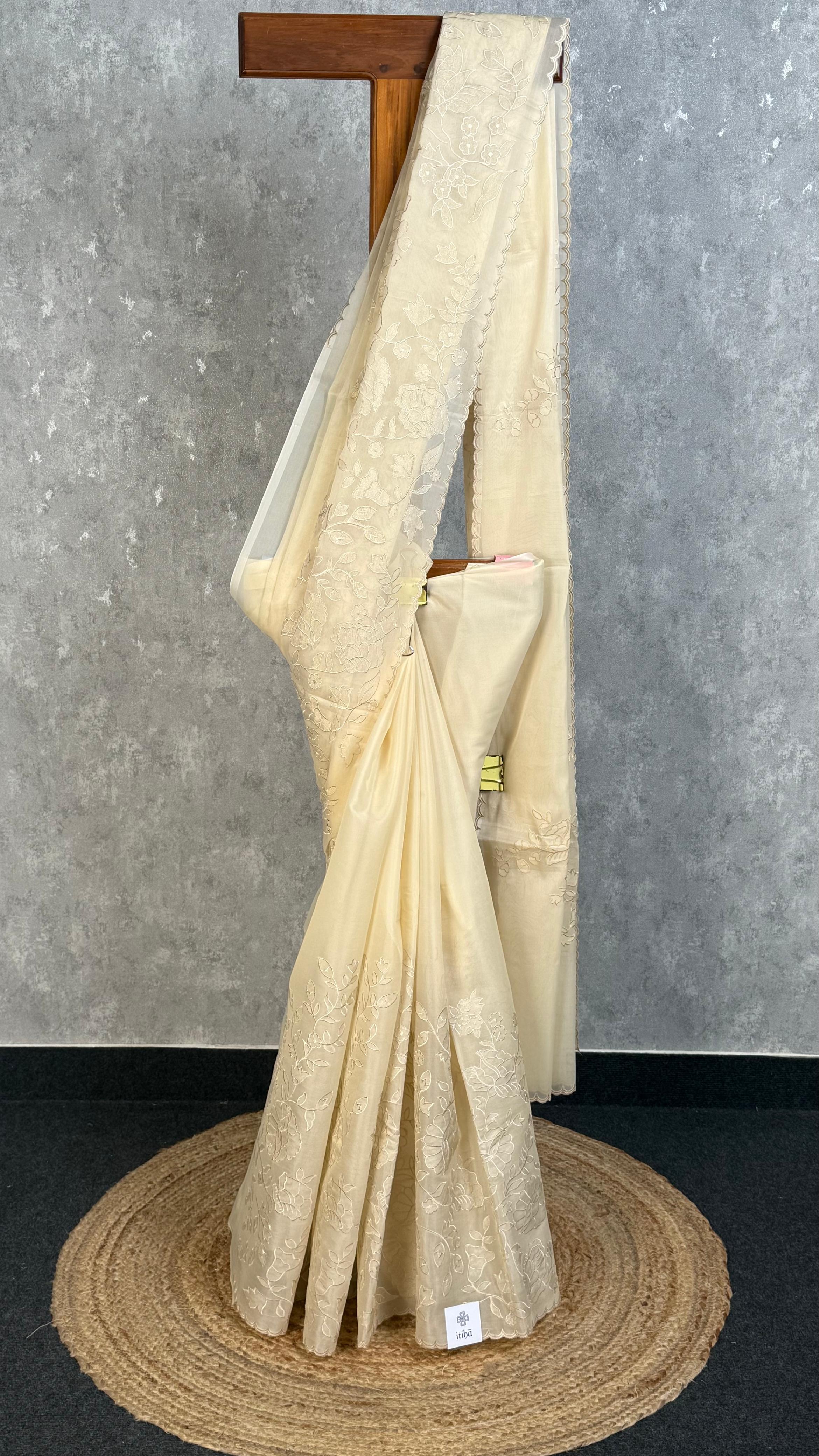 SEMI ORGANZA APPLIQUE EMBROIDERY SAREE