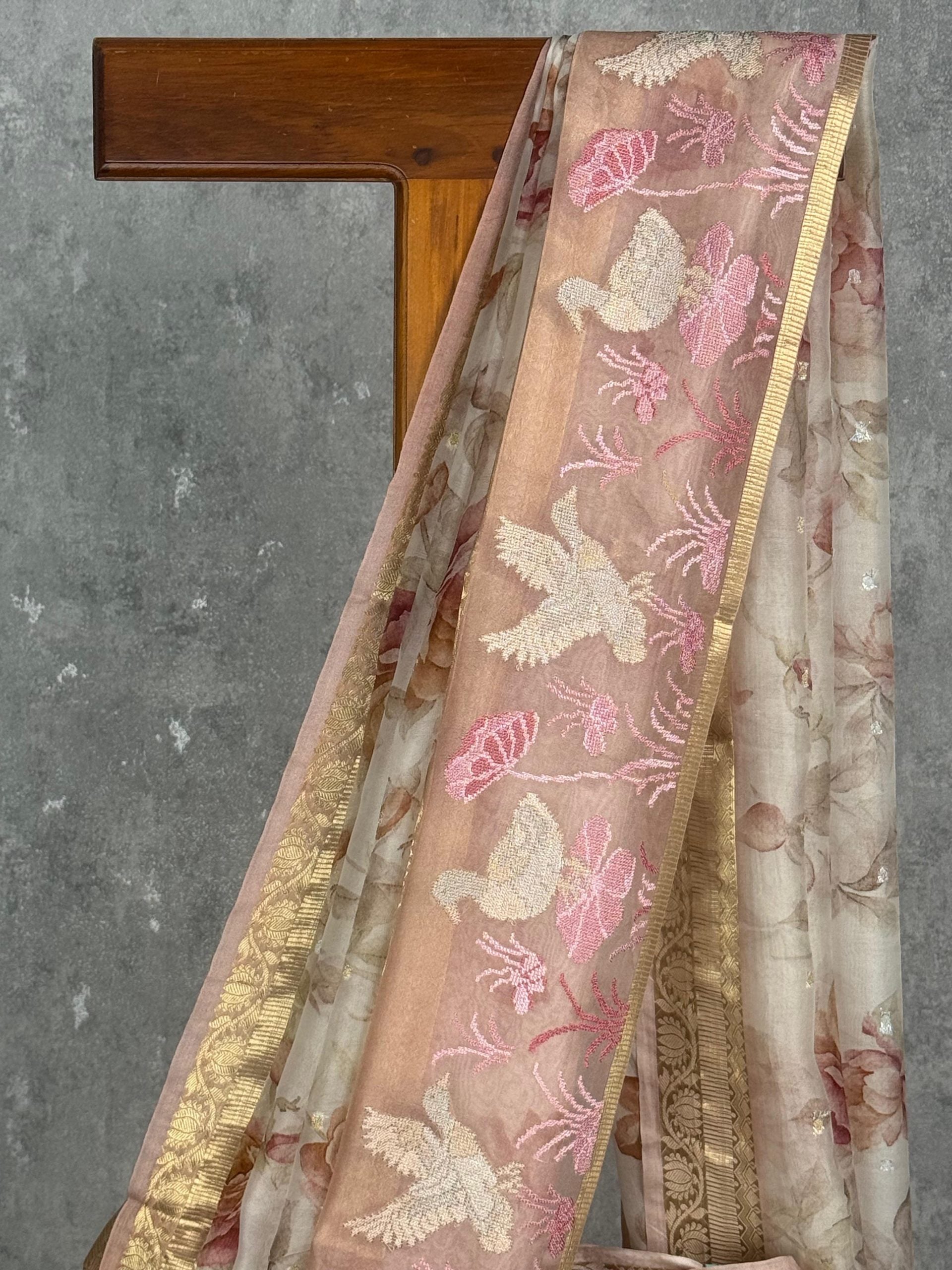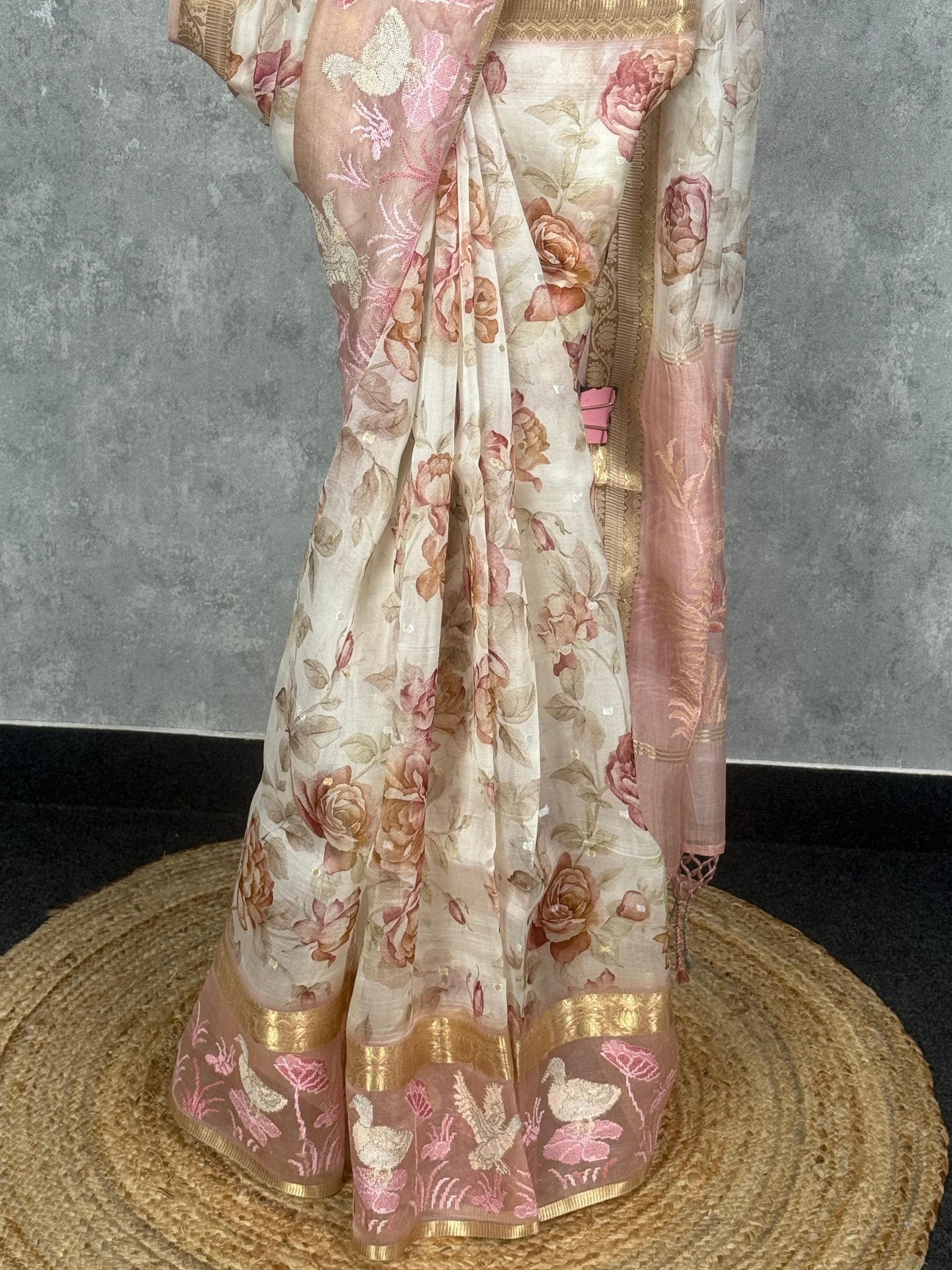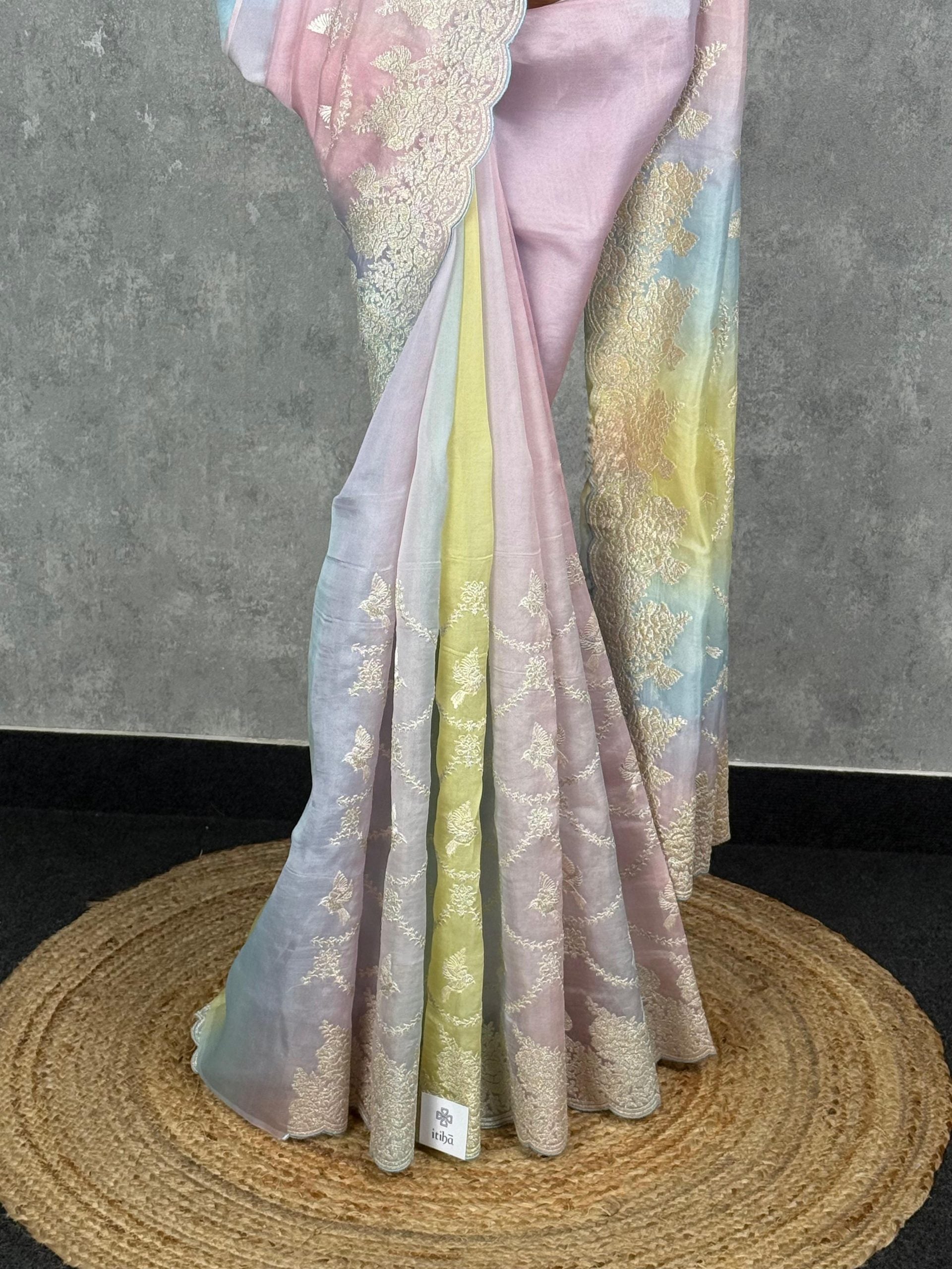 TISSUE ORGANZA EMBROIDERY SAREE