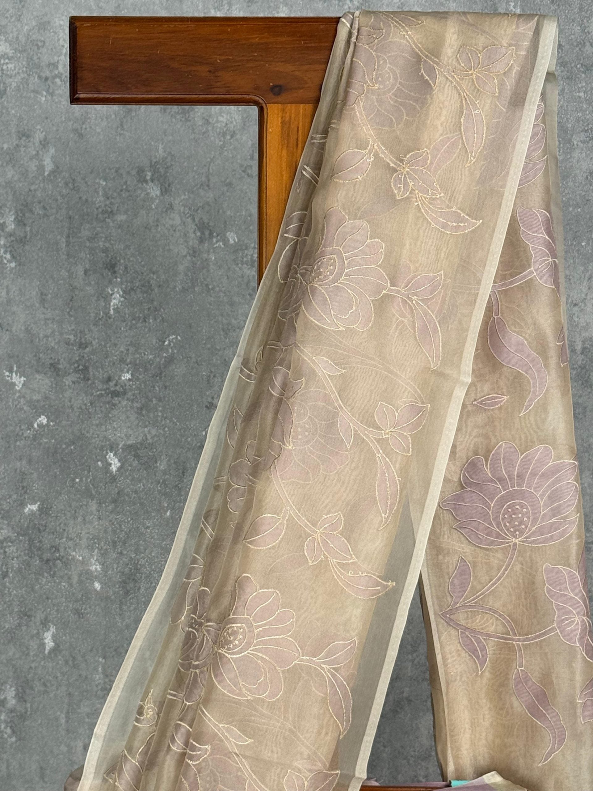 SEMI ORAGNZA APPLIQUE EMBROIDERY SAREE