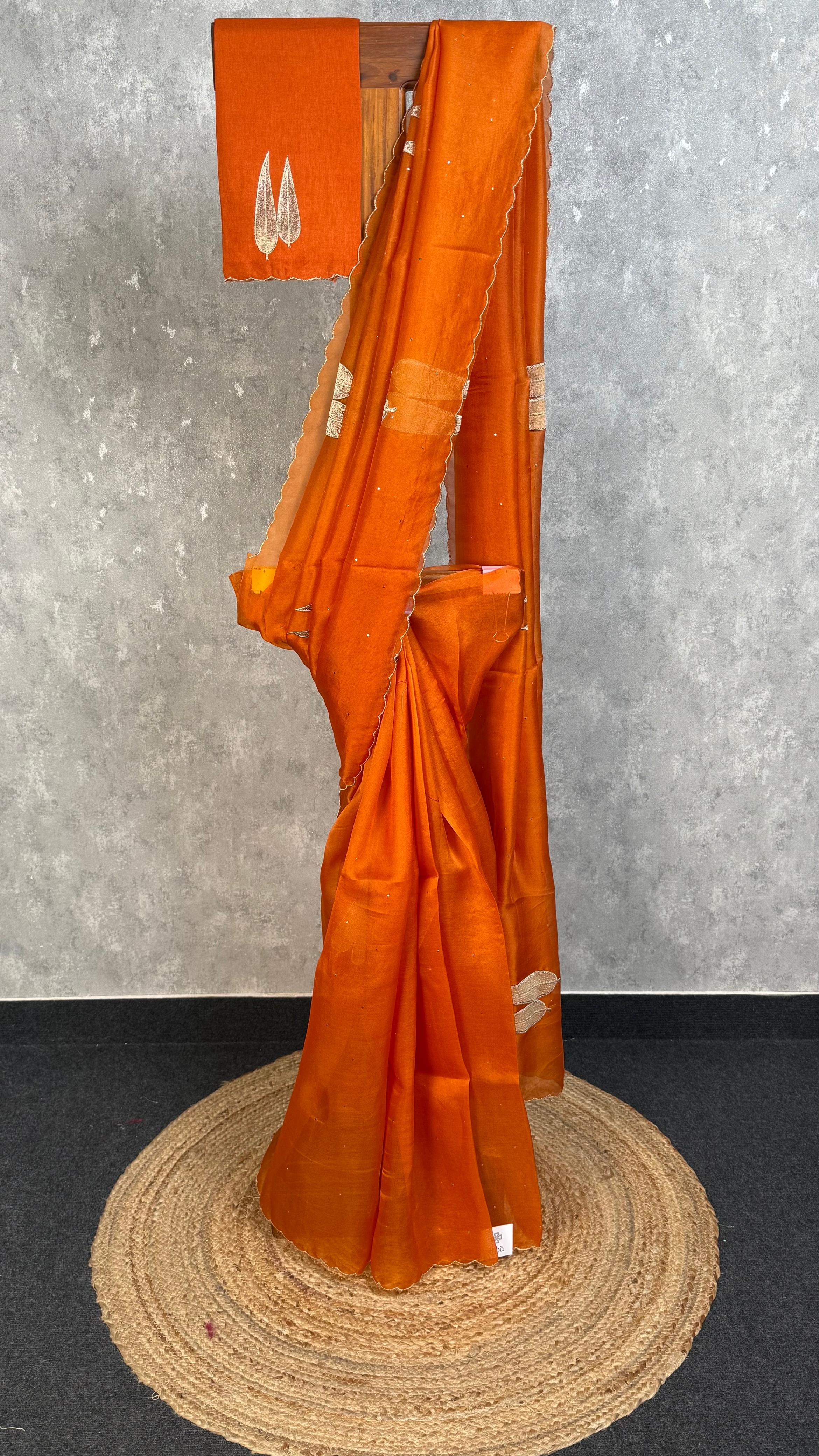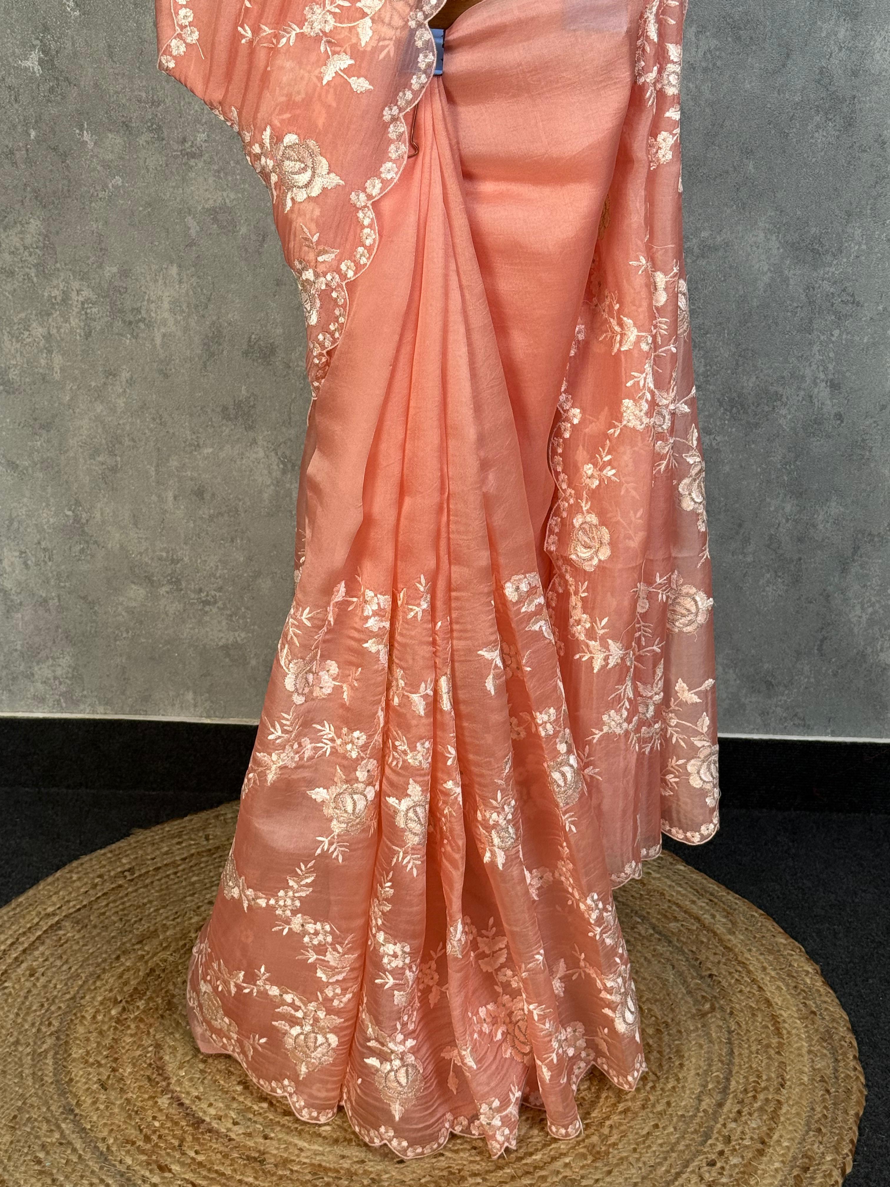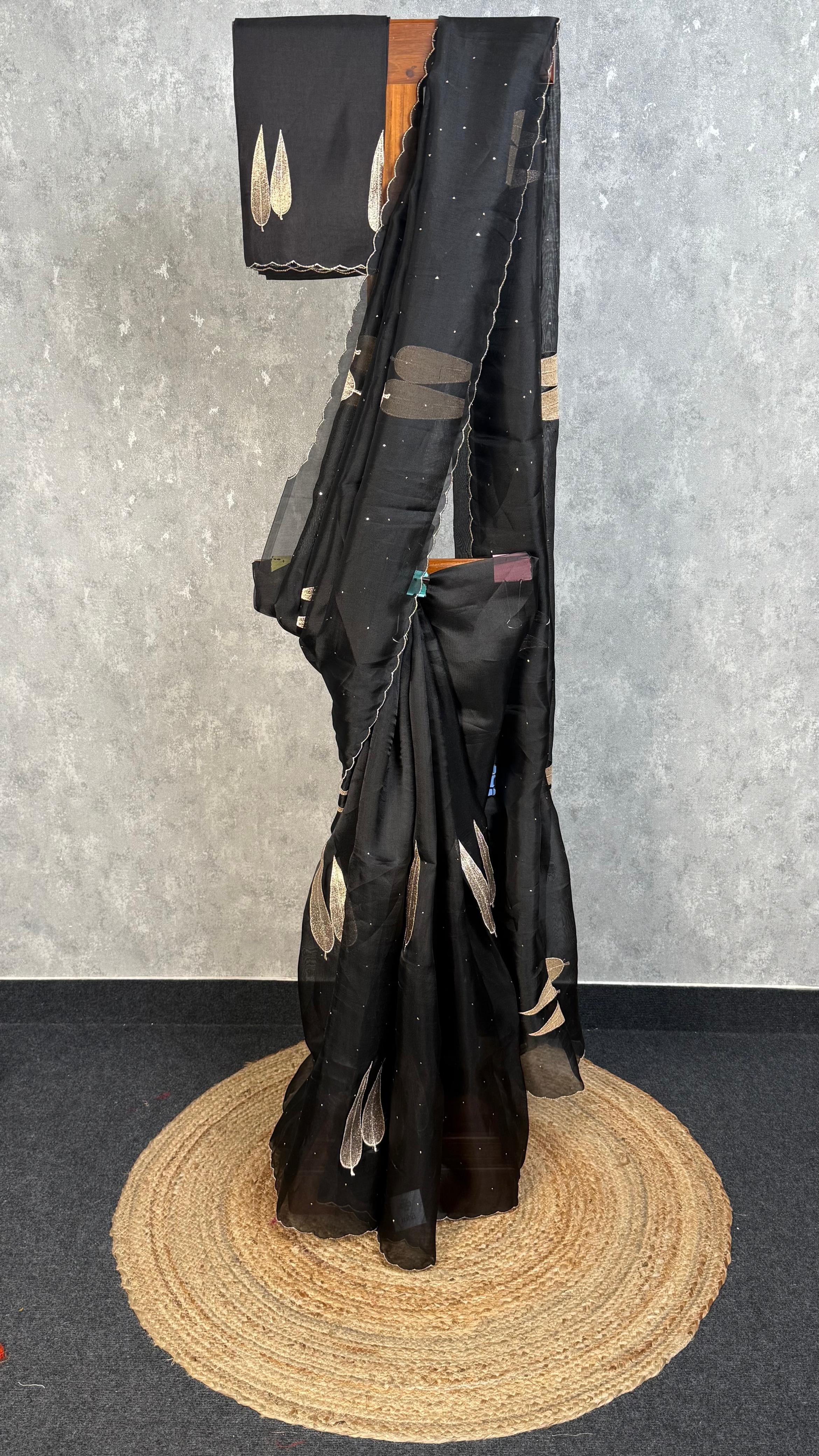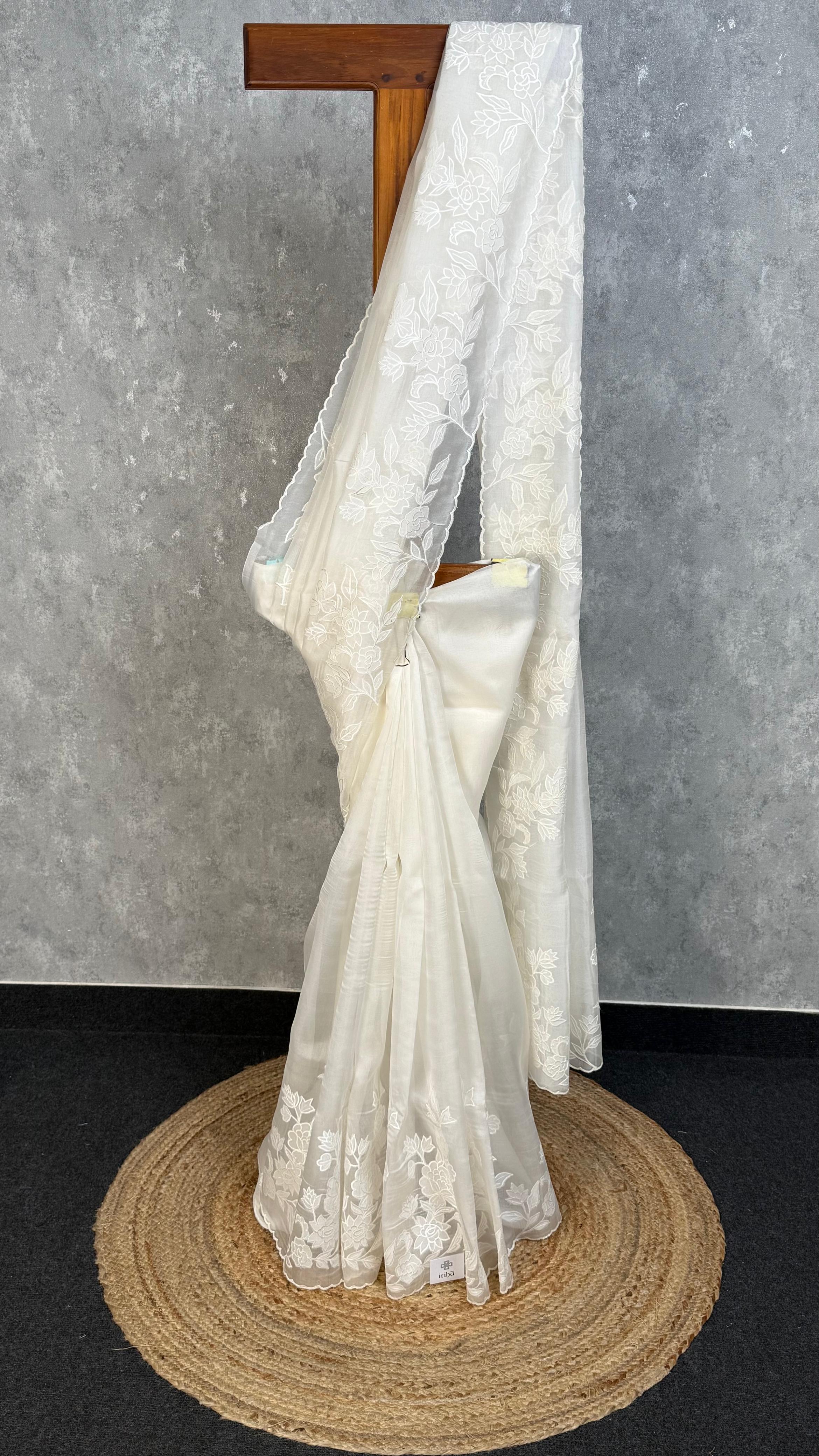 VISCOSE ORGANZA APPLIQUE EMBROIDERY SAREE