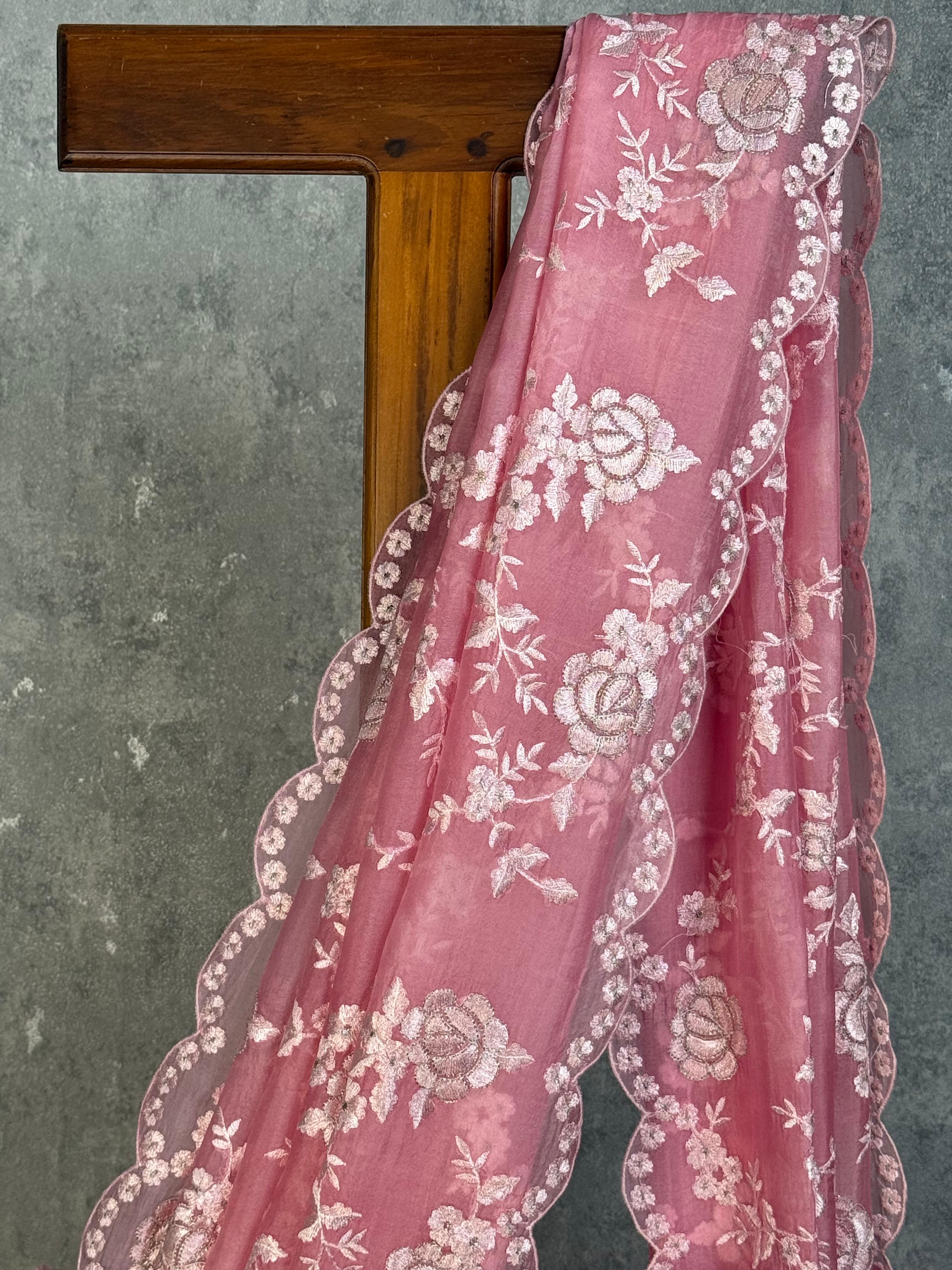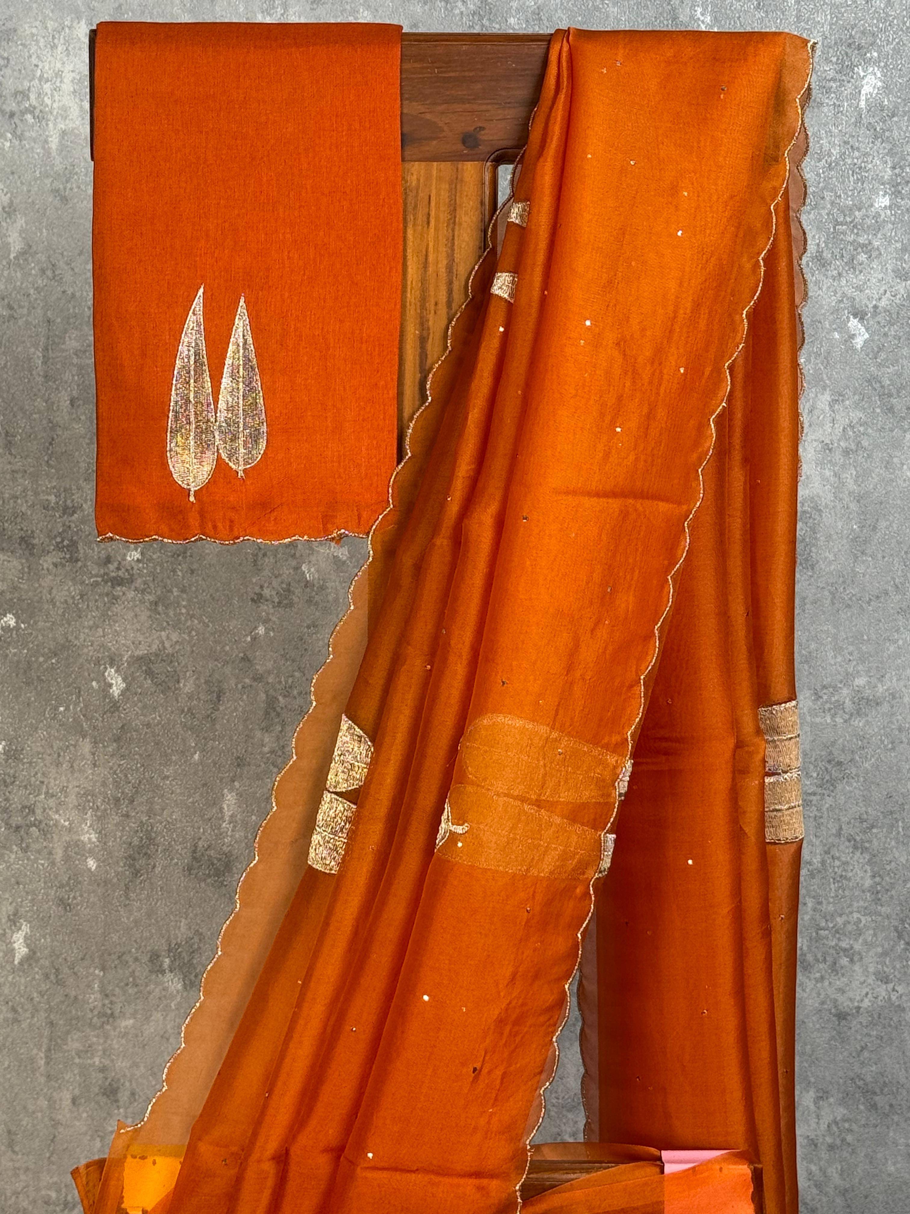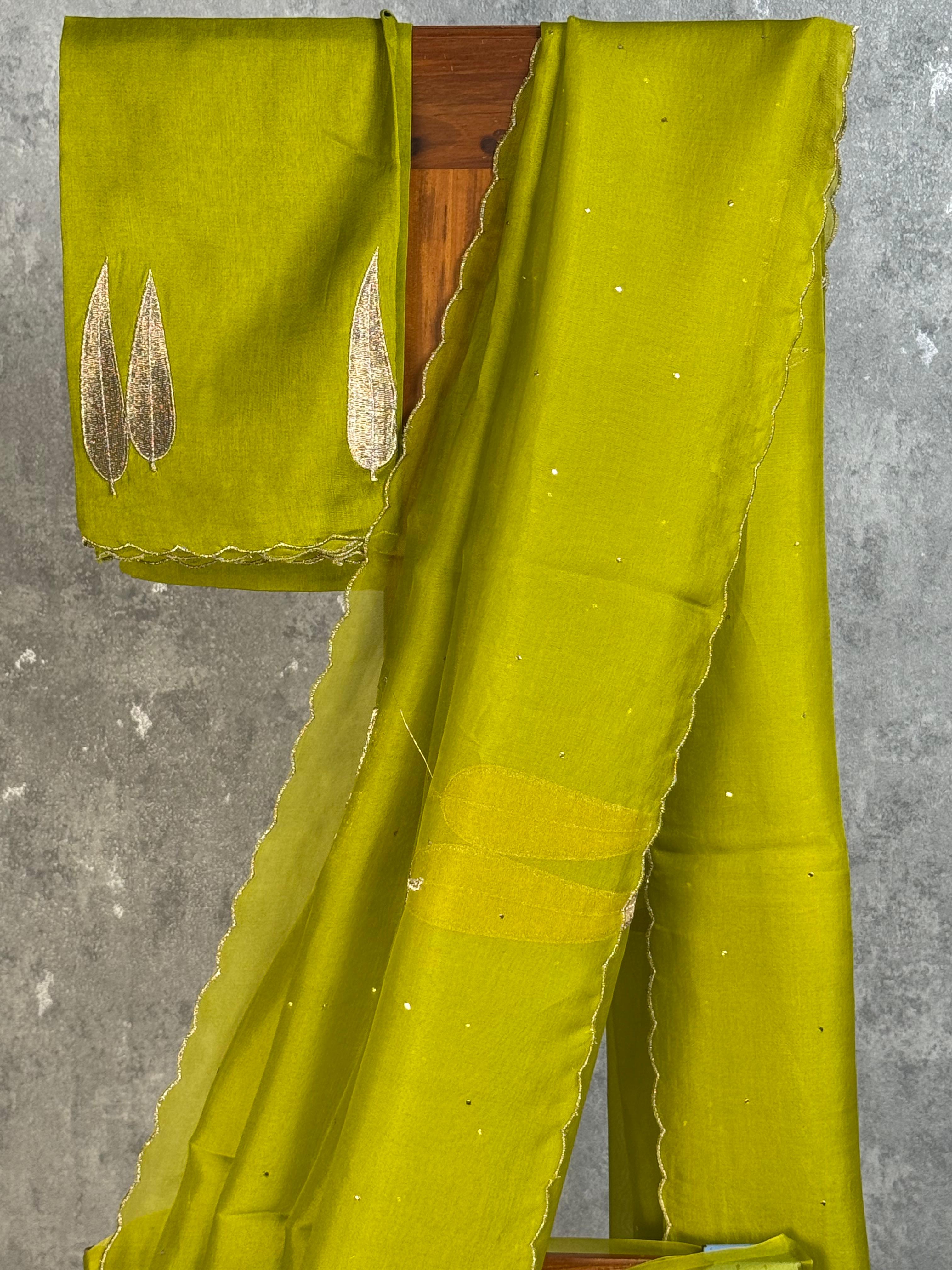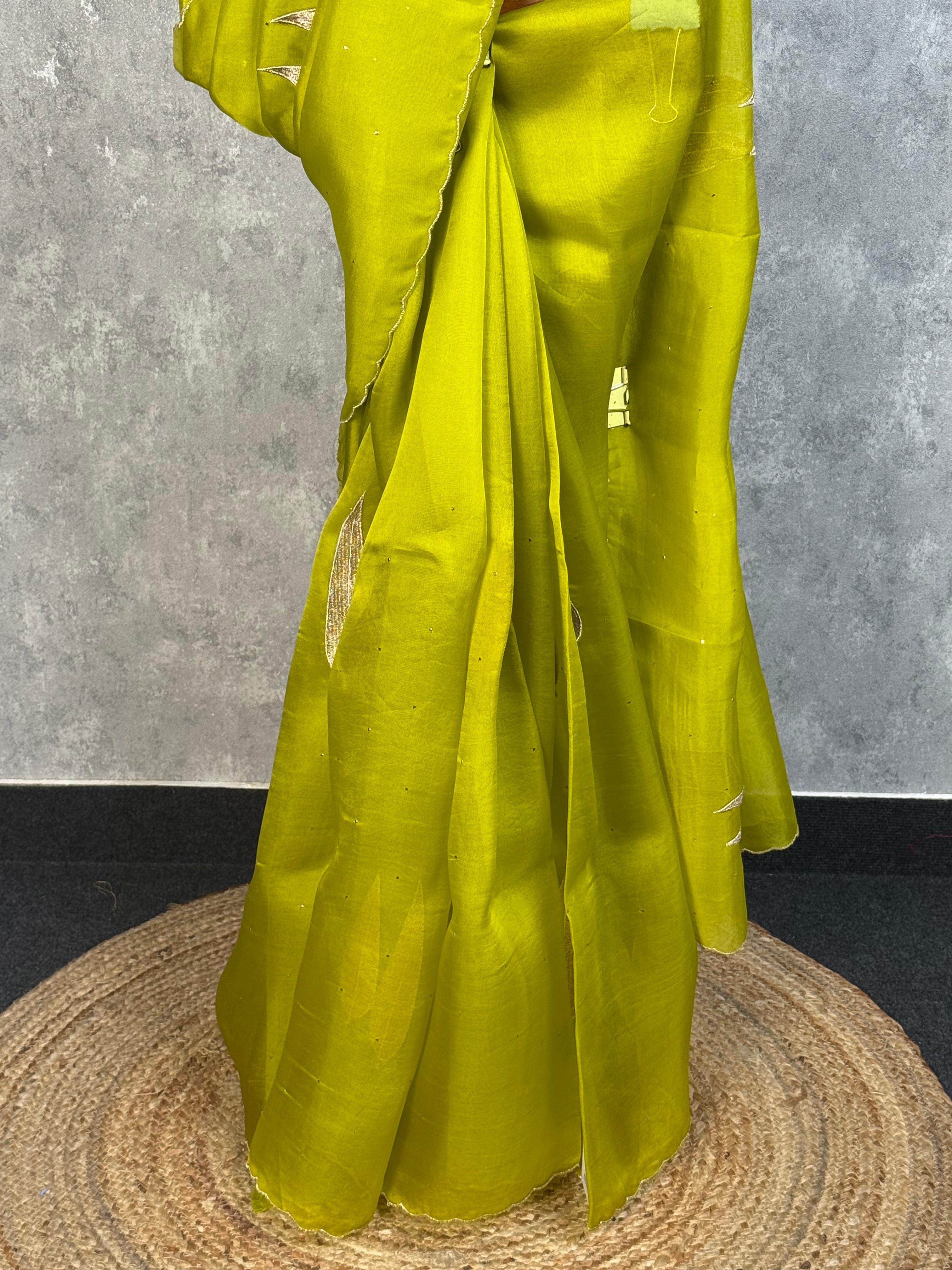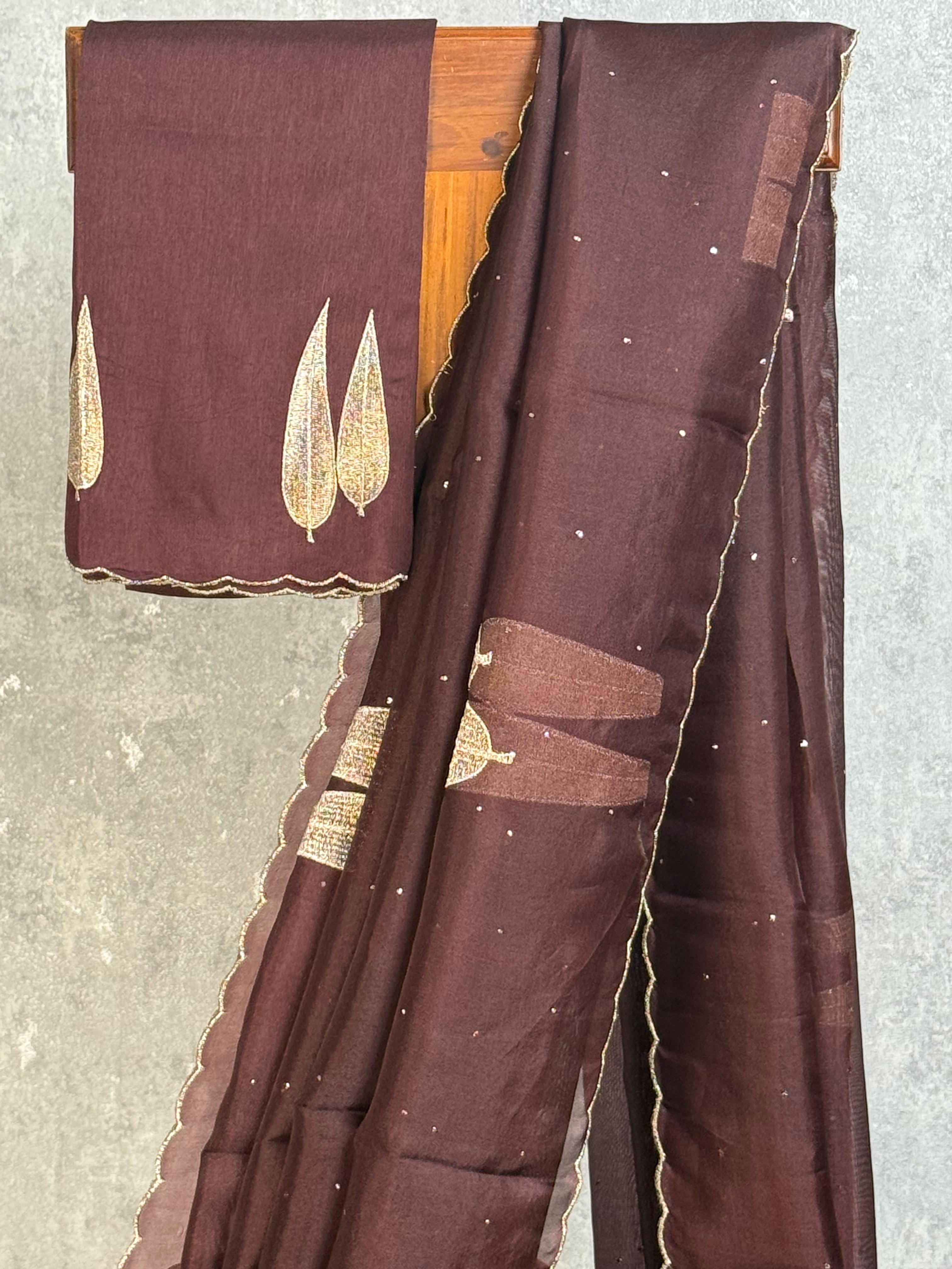 VISCOSE ORGANZA APPLIQUE EMBROIDERY SAREE