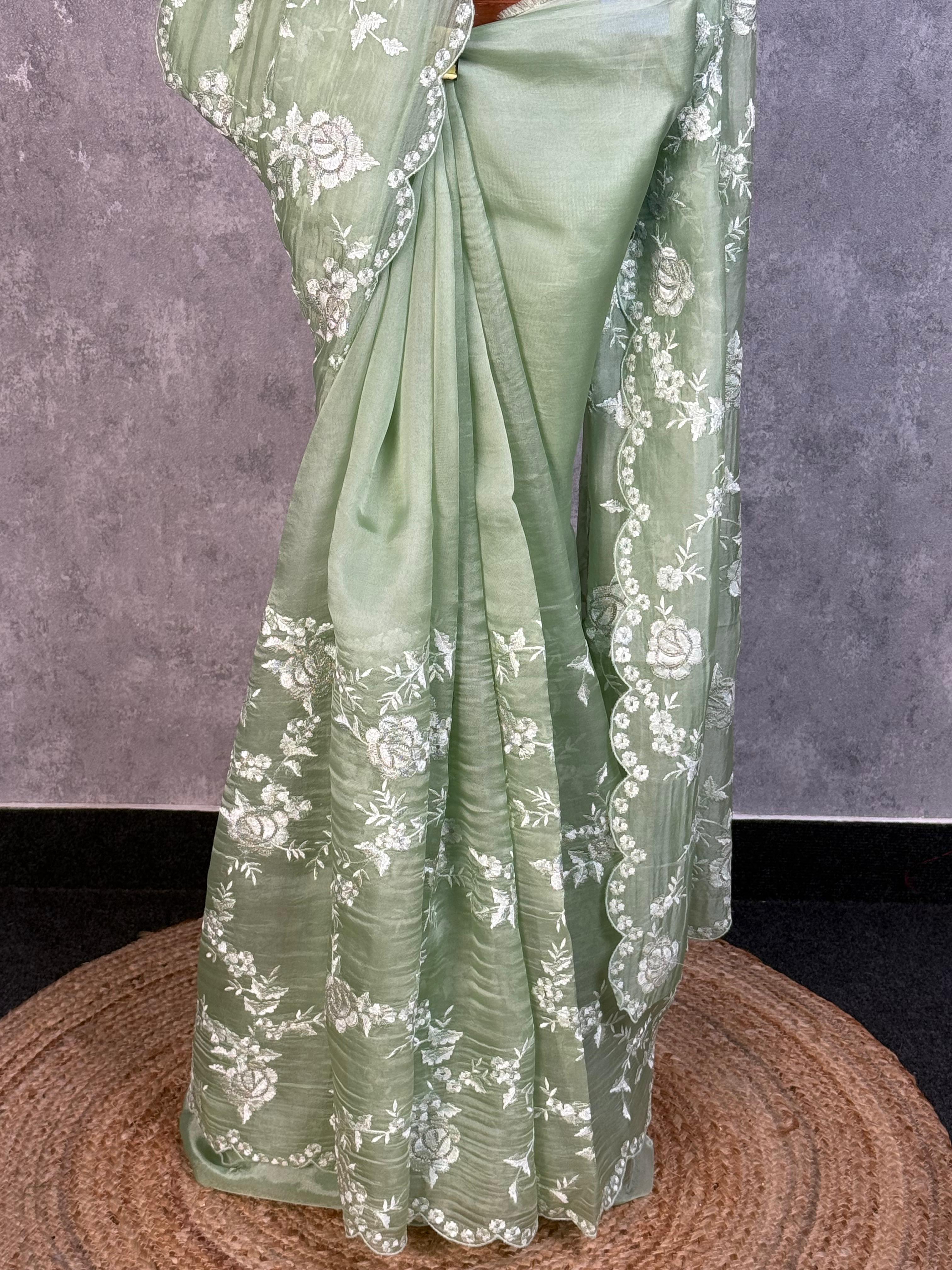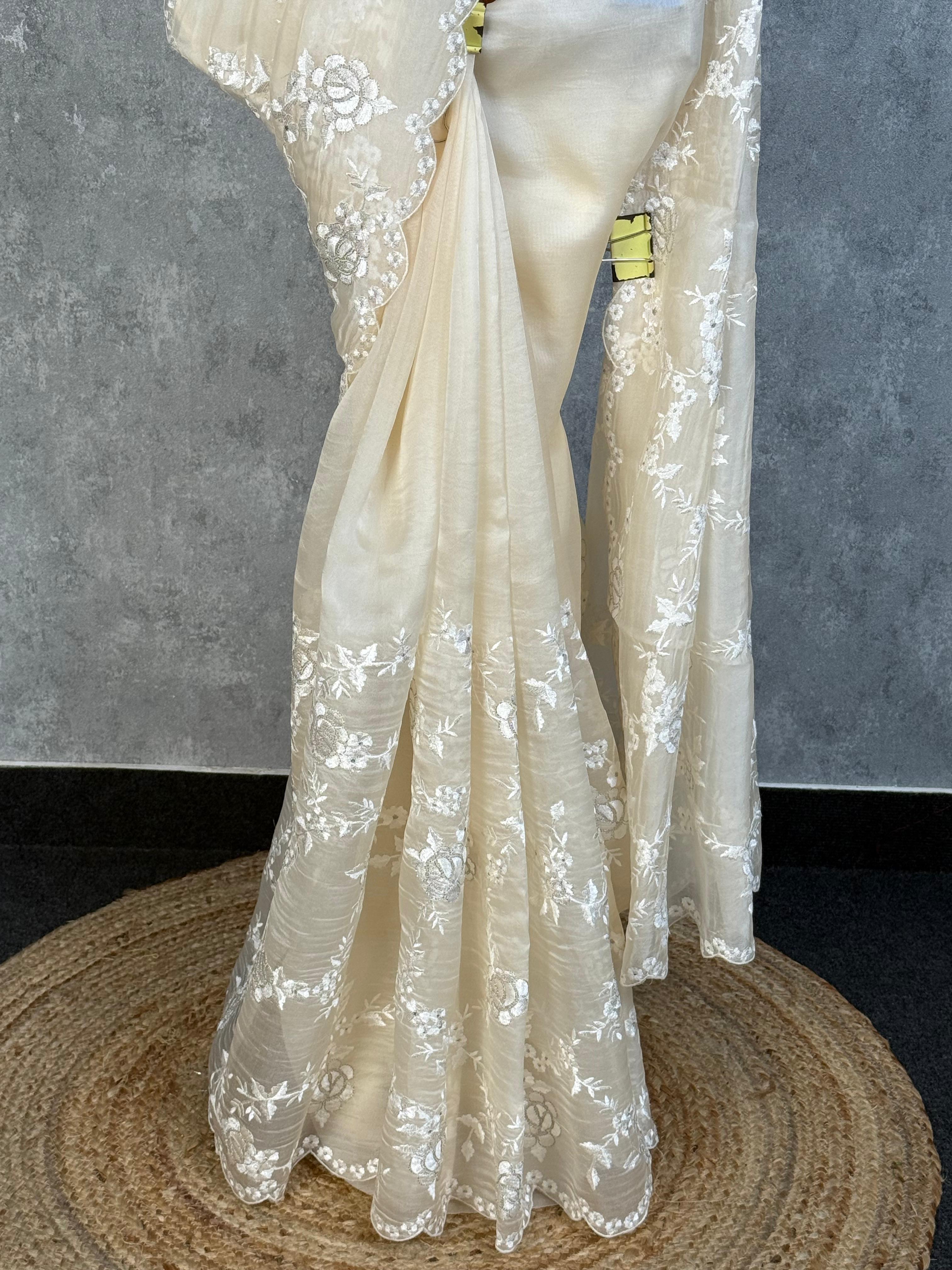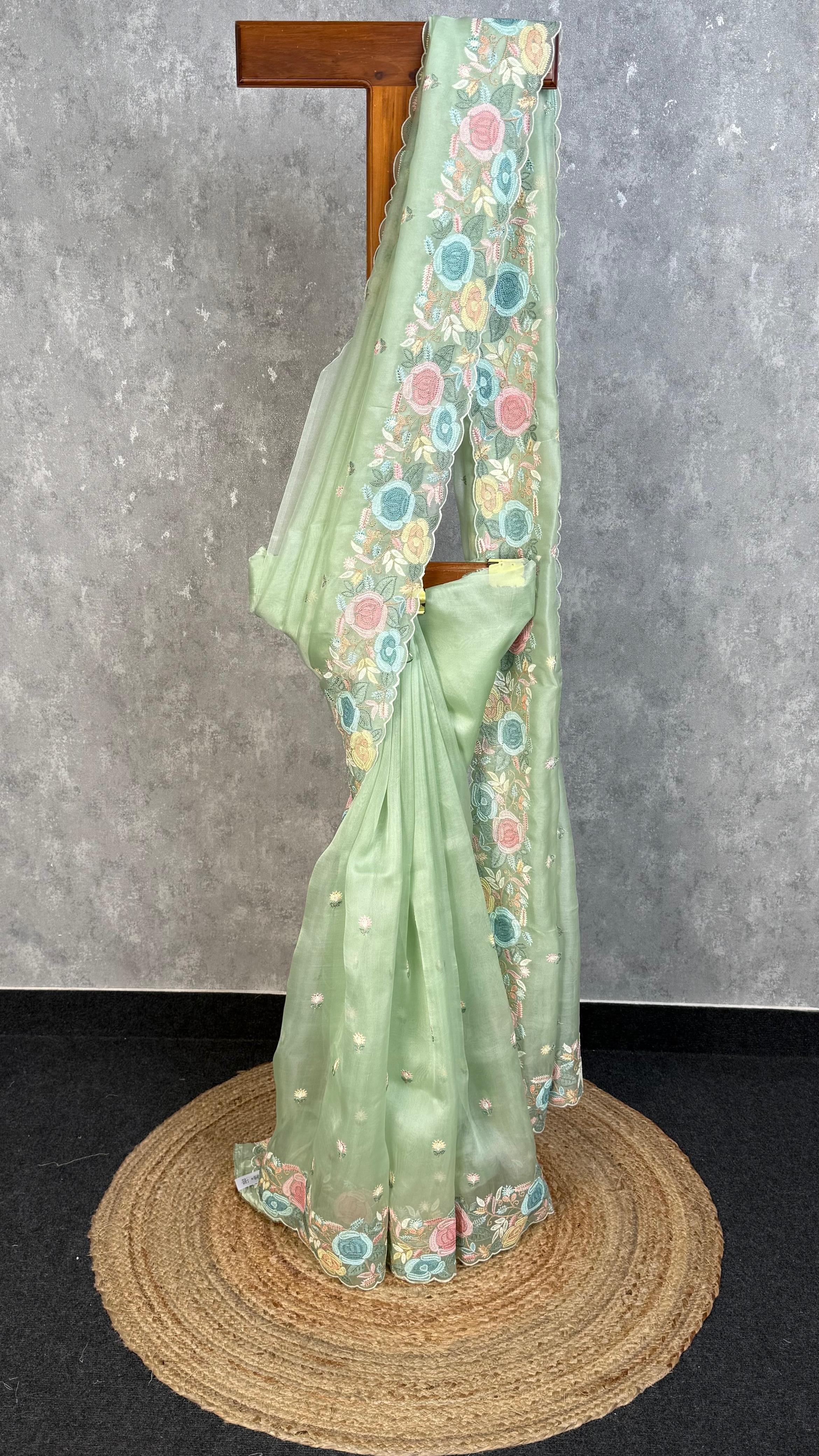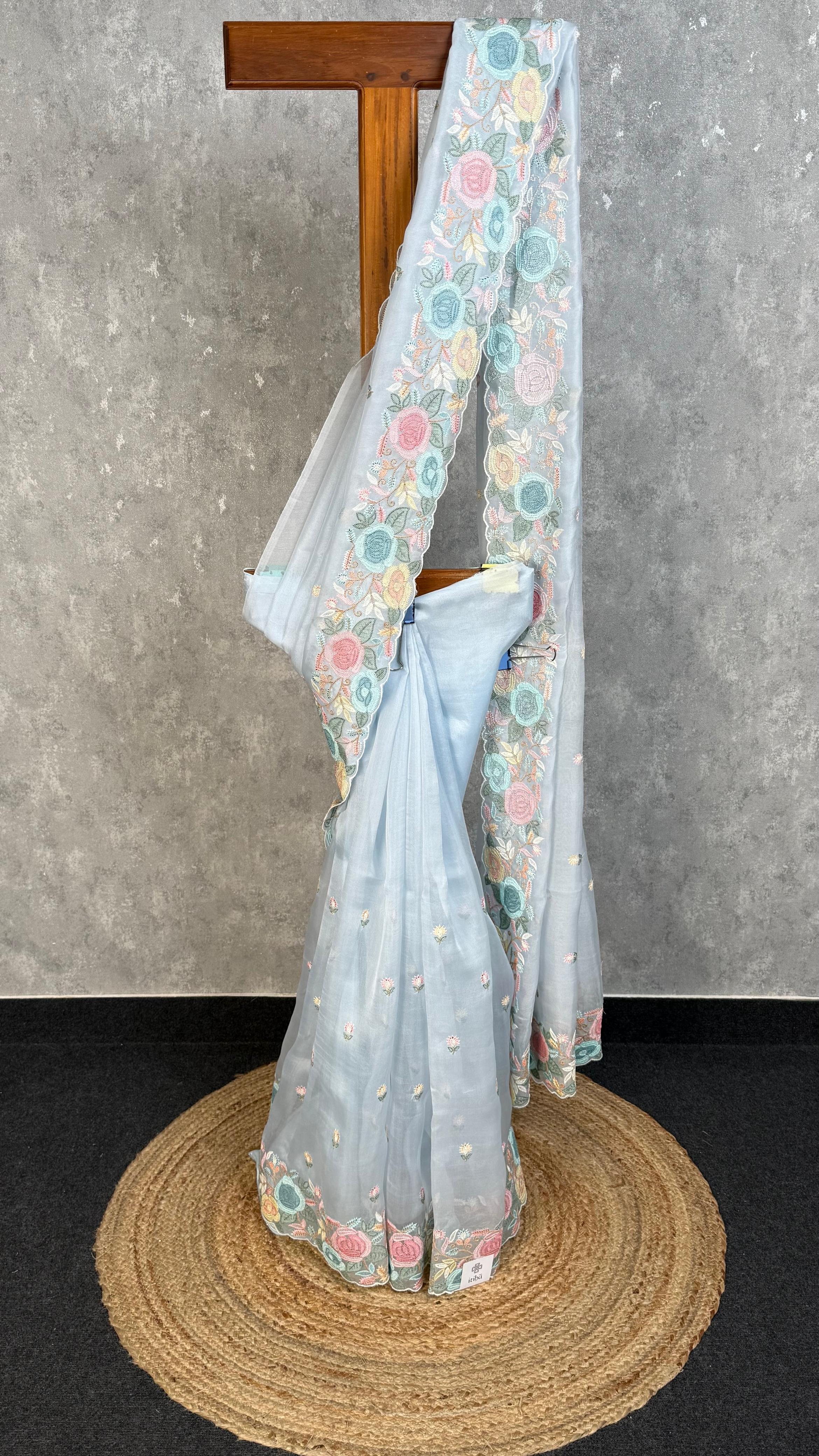 VISCOSE ORGANZA HAND EMBROIDERY SAREE