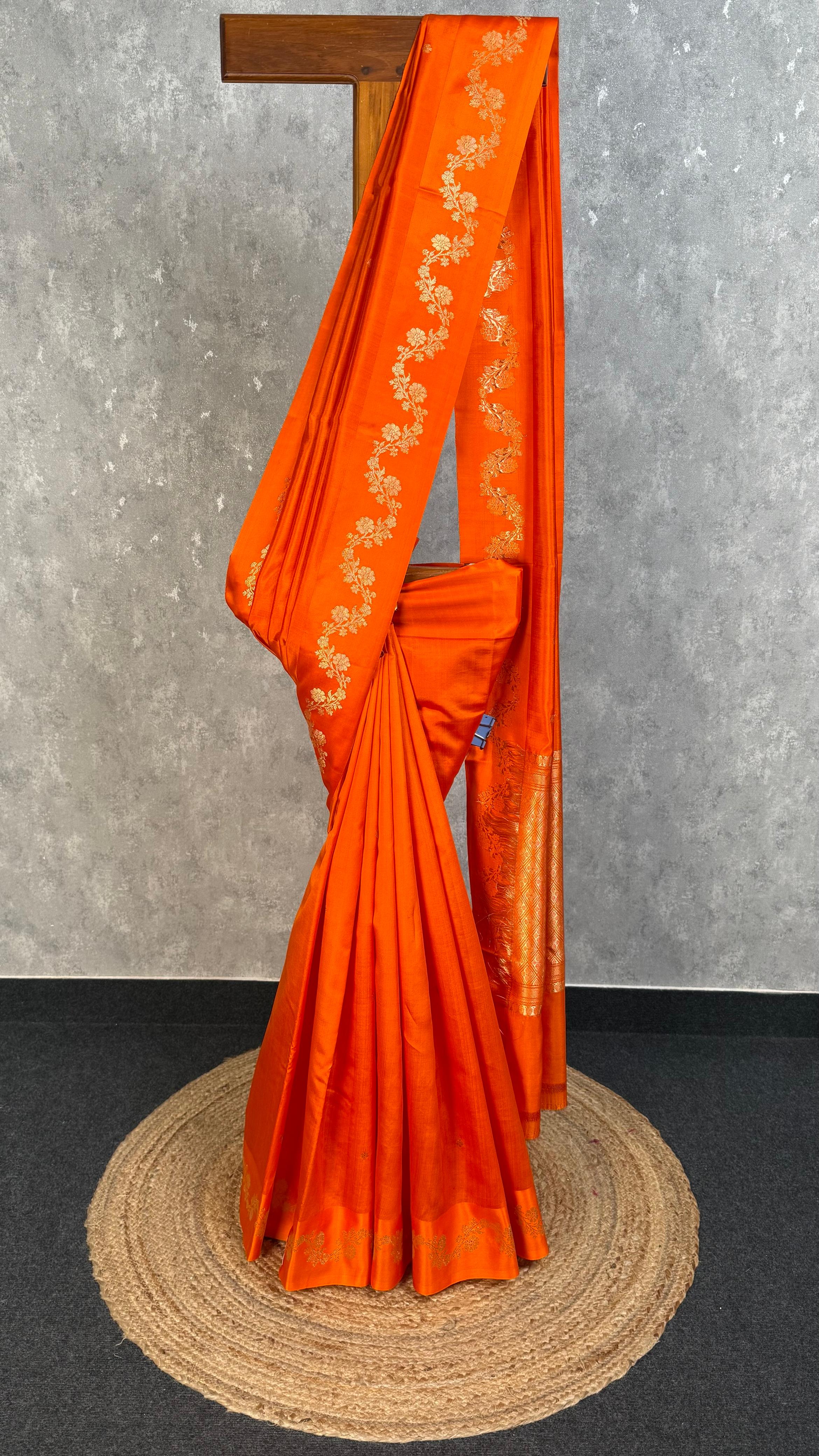 Discover the timeless elegance of our Soft Katan Silk Saree, crafted from premium silk that drapes beautifully and feels luxurious against your skin. This traditional saree combines authentic weaving techniques with a gentle, comfortable fabric that's perfect for both everyday wear and special occasions. Experience the perfect balance of sophistication and ease with a piece that celebrates fine craftsmanship and enduring style.