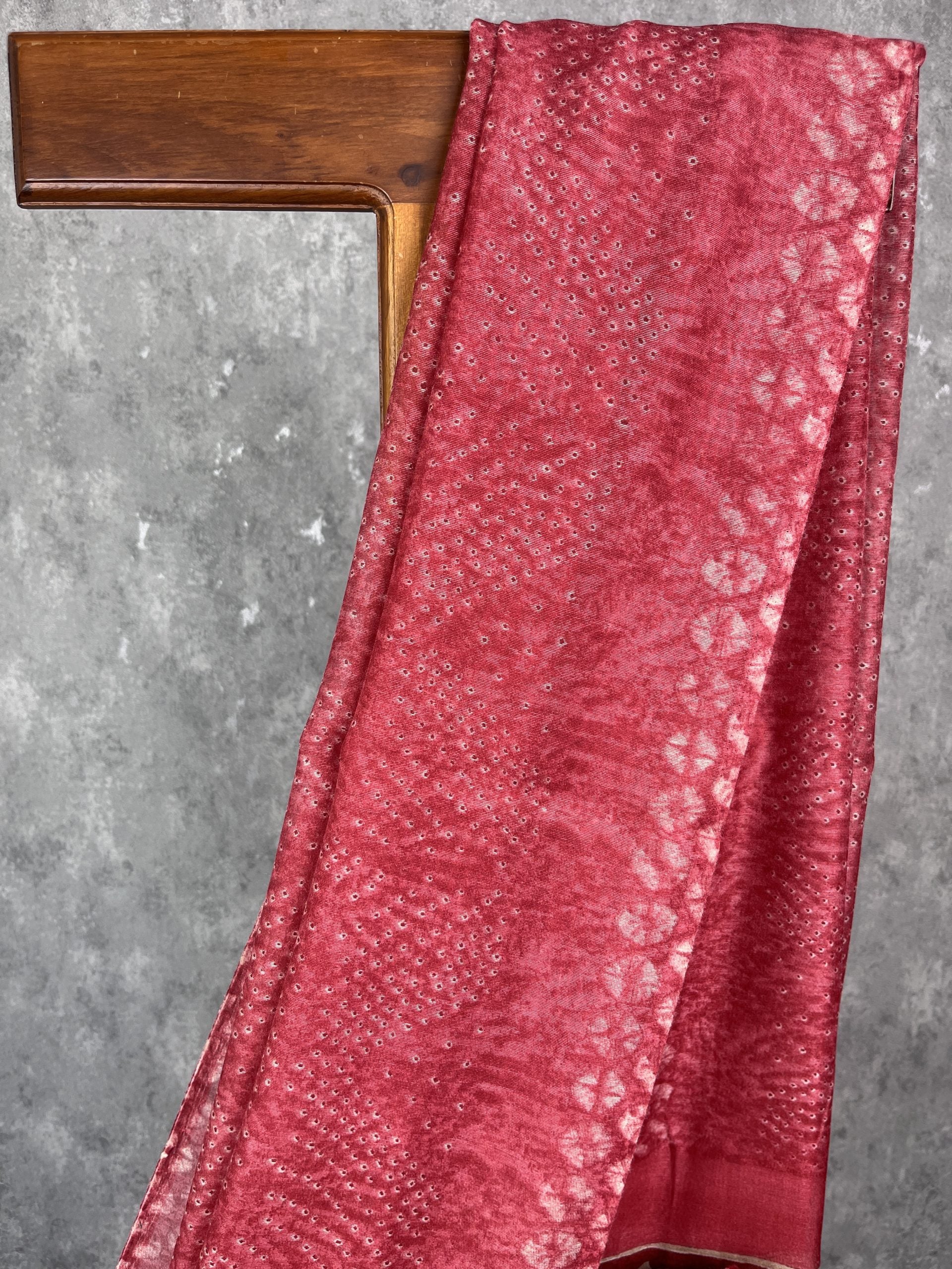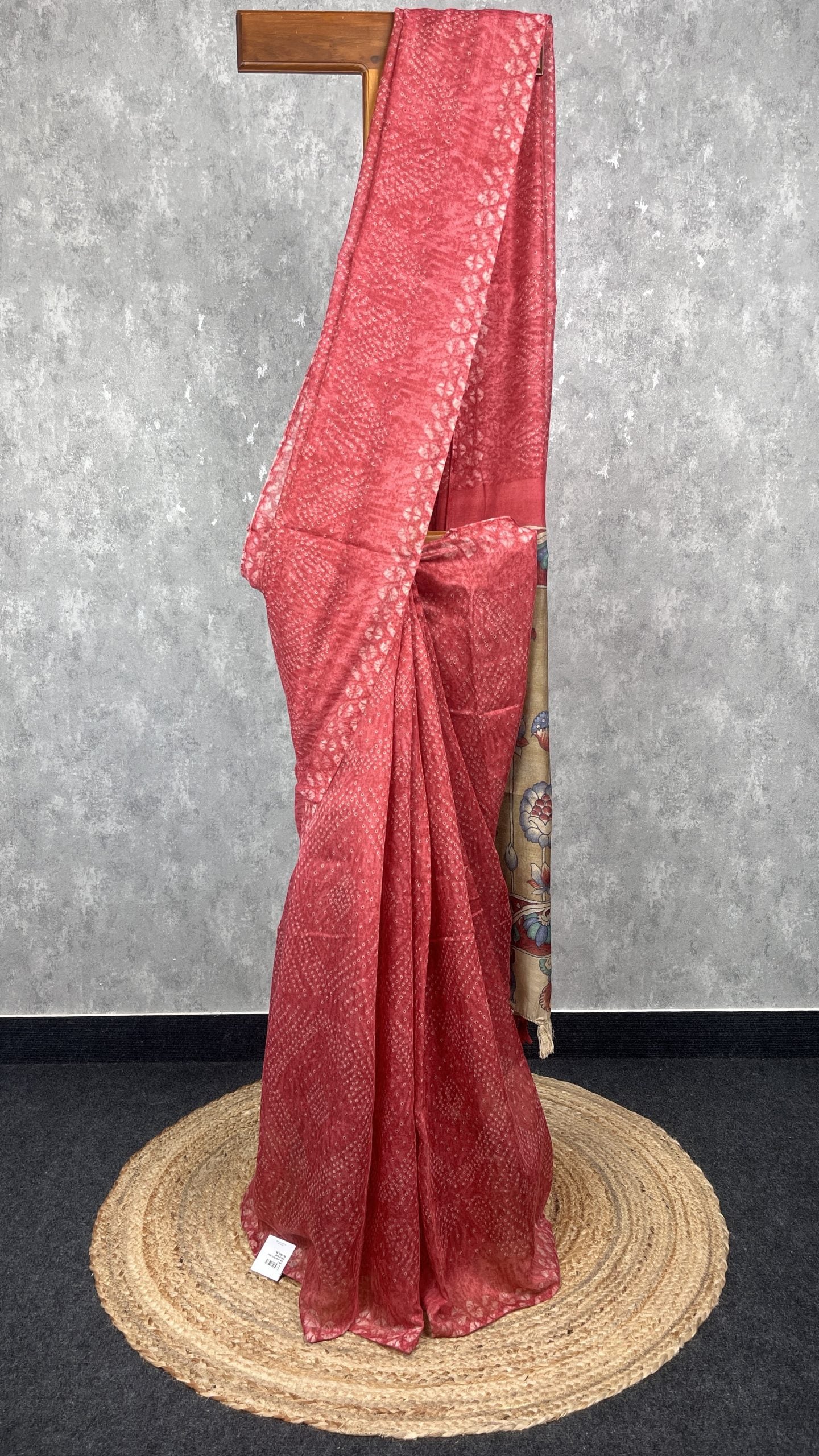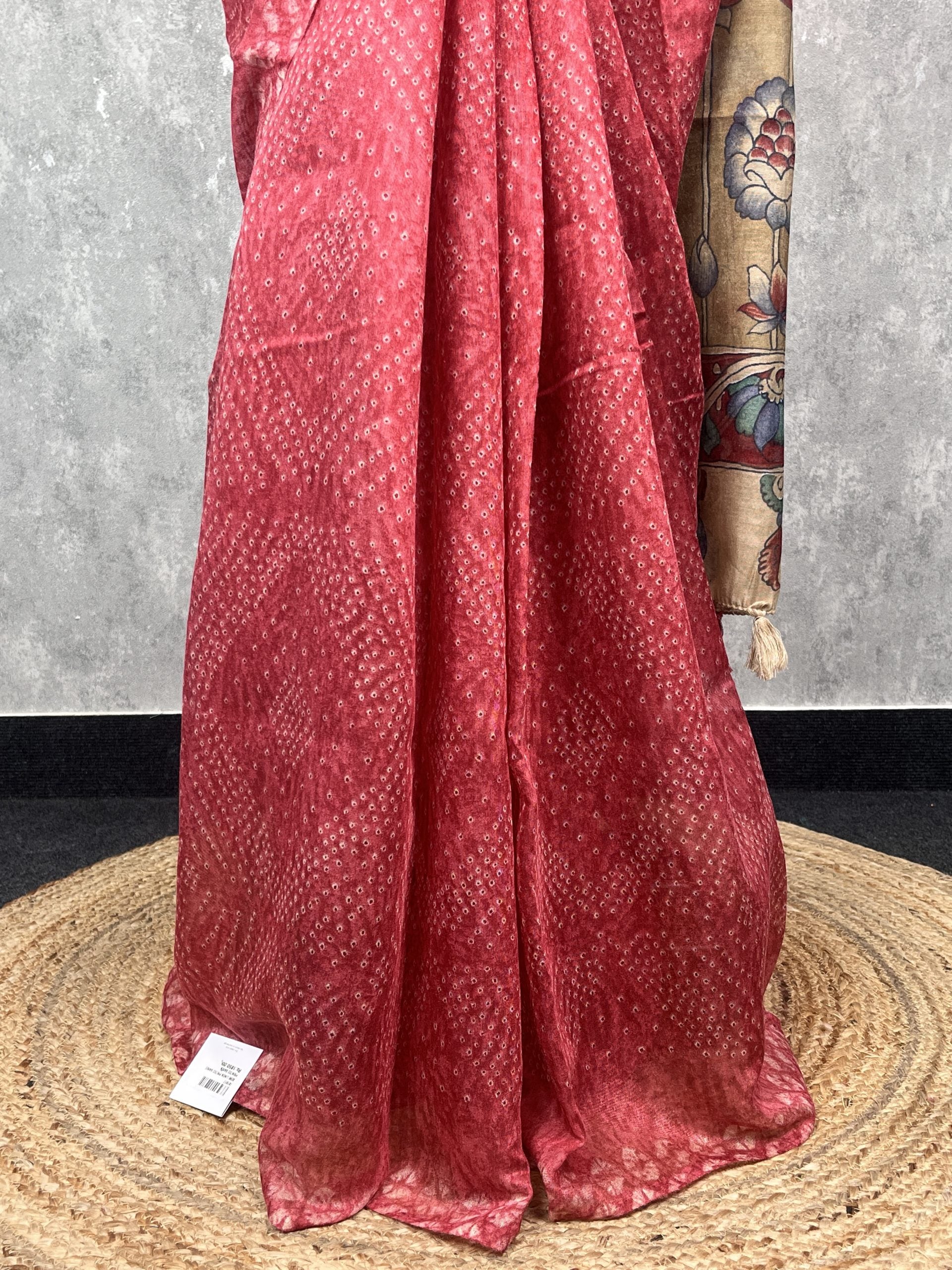 Cotton linen saree in black with bandhini print all over the body. The saree is very light weight and easy to drape.