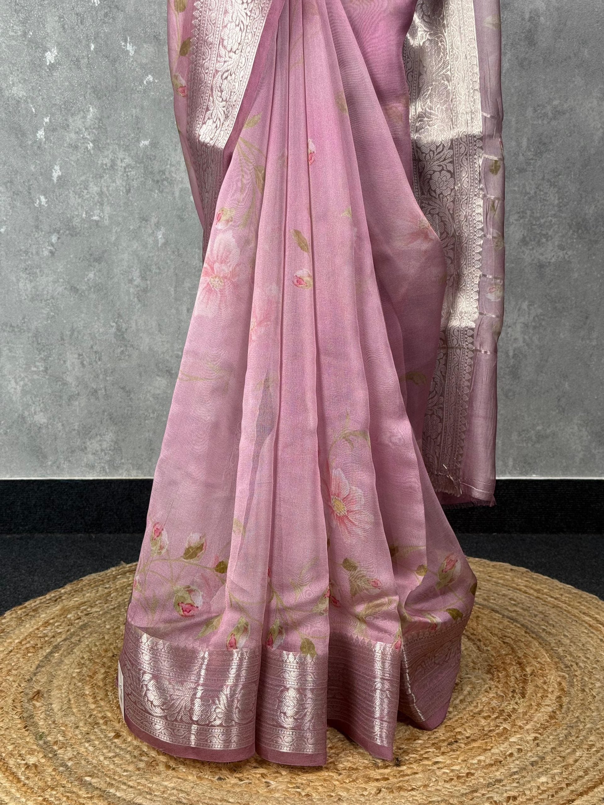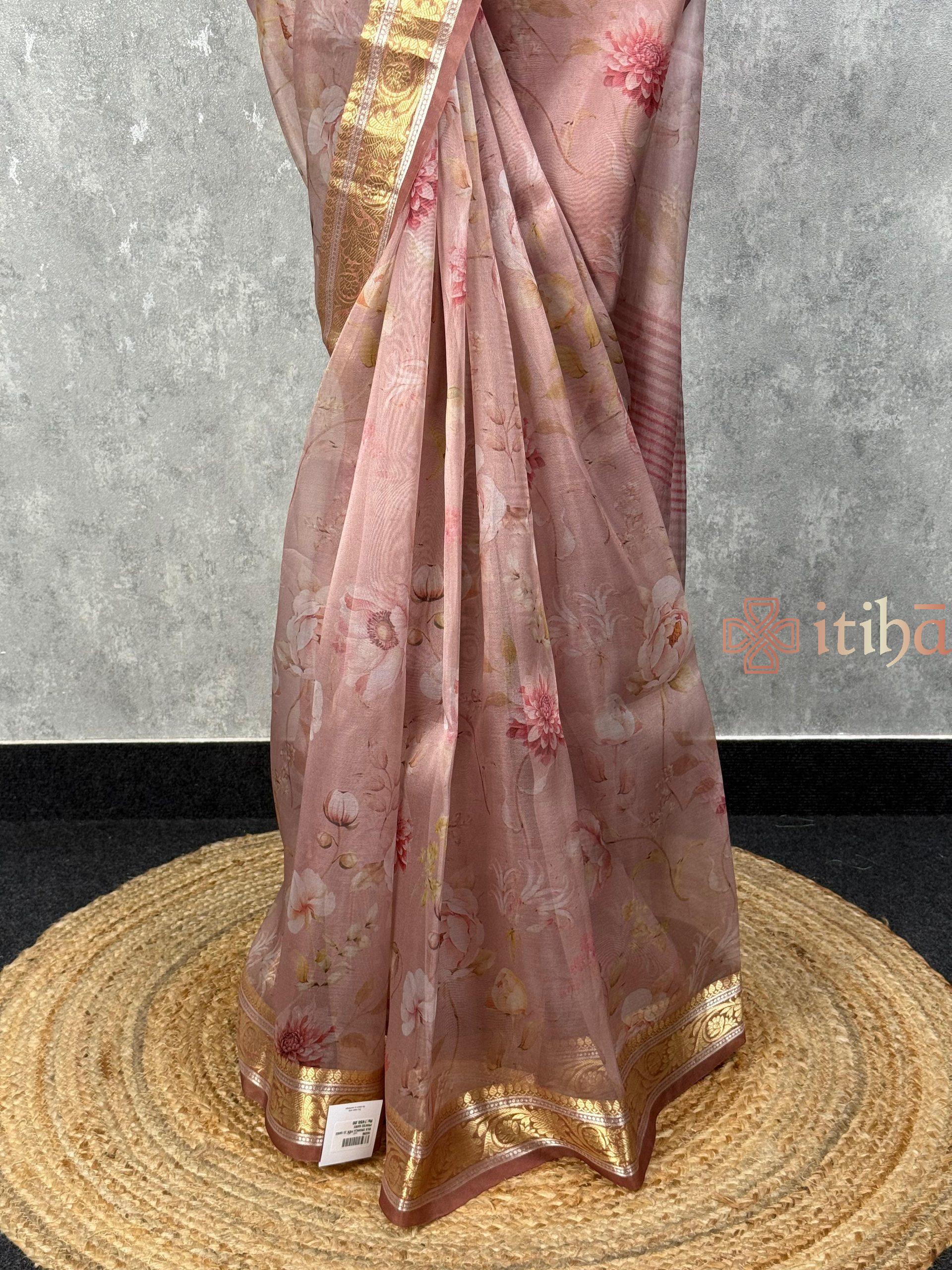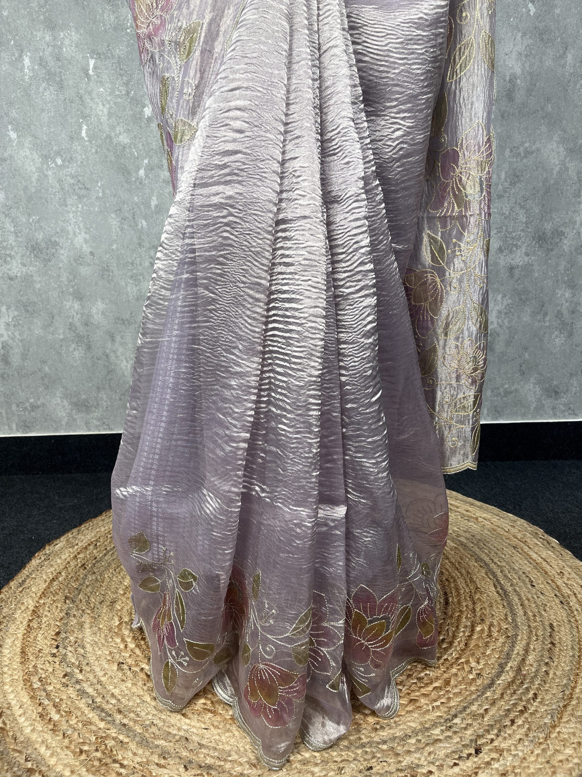 TISSUE SILK ORGANZA HAND PAINTED SAREE
