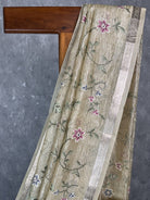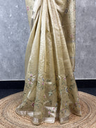 SEMI ORGANZA CROSS STITCH EMBROIDERY SAREE