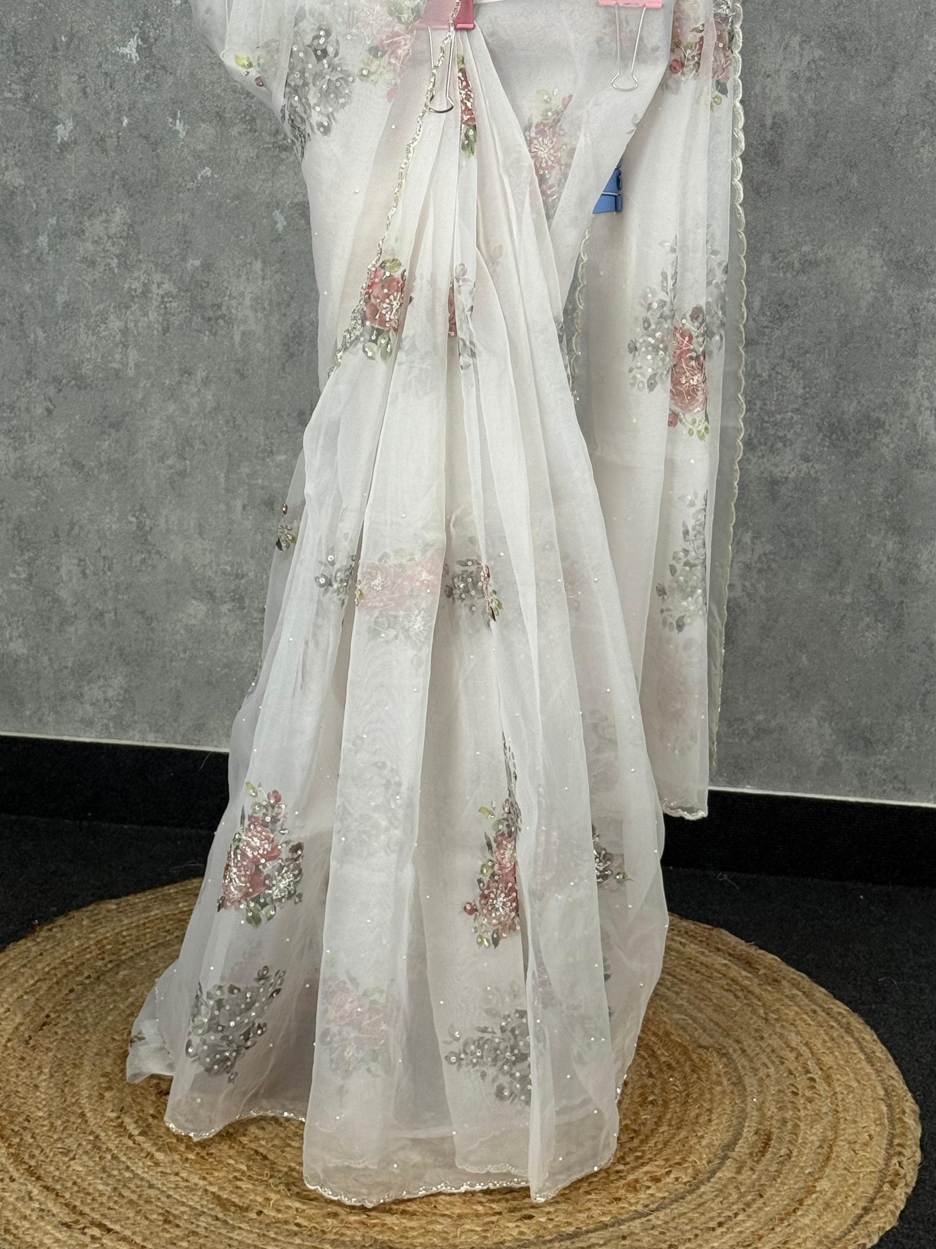 SILK ORGANZA HAND EMBROIDERY SAREE