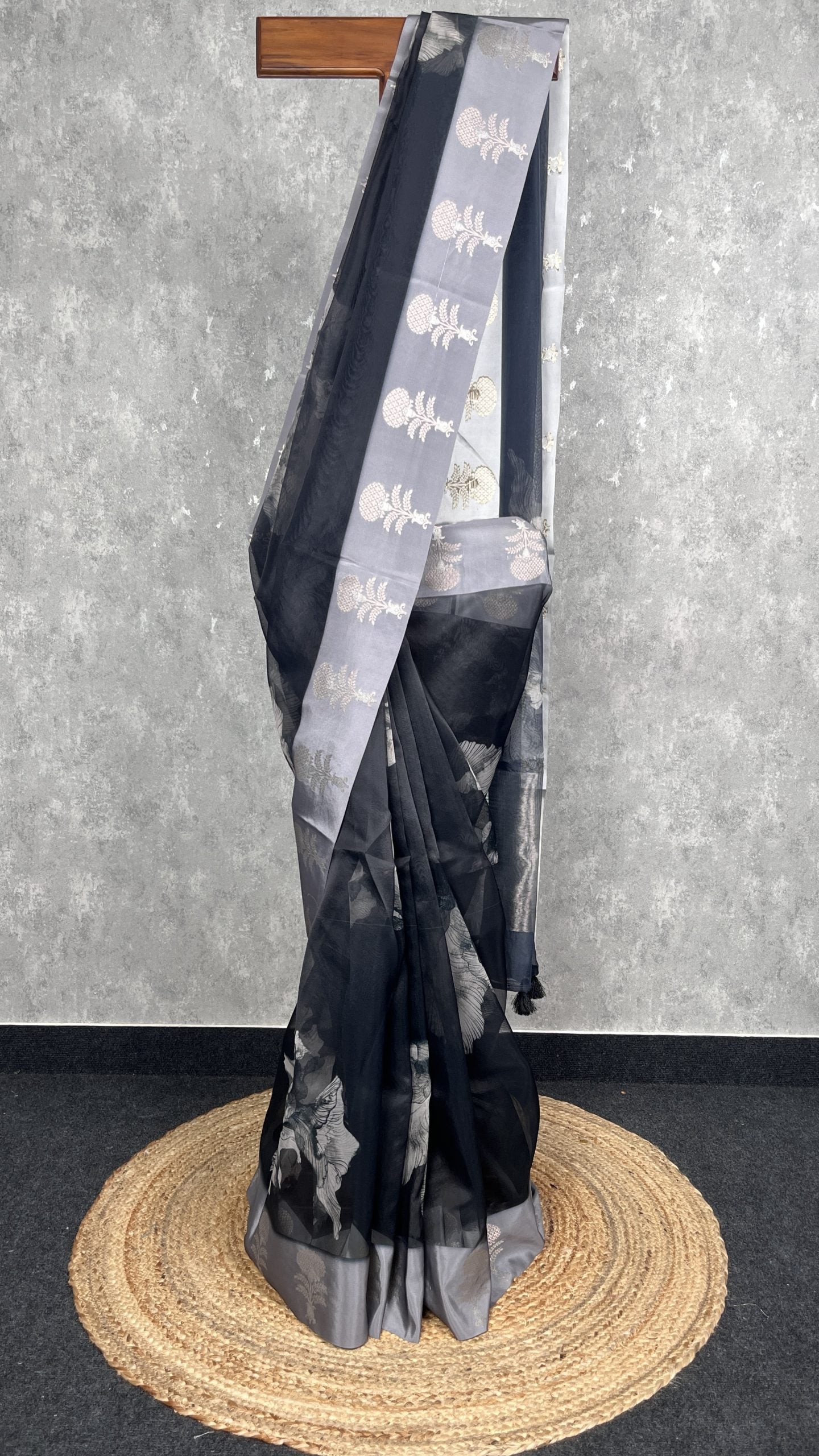 PRINTED ORGANZA SATIN BORDER BANARASI SAREE