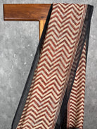 Cotton linen saree in maroon colour with geometrical print all over the body. The saree is very light weight and easy to drape.
