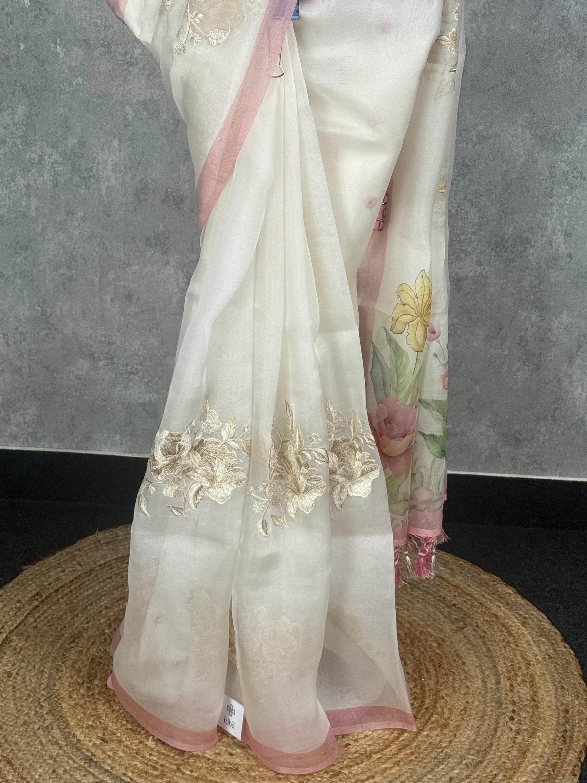 SILK ORGANZA EMBROIDERY SAREE