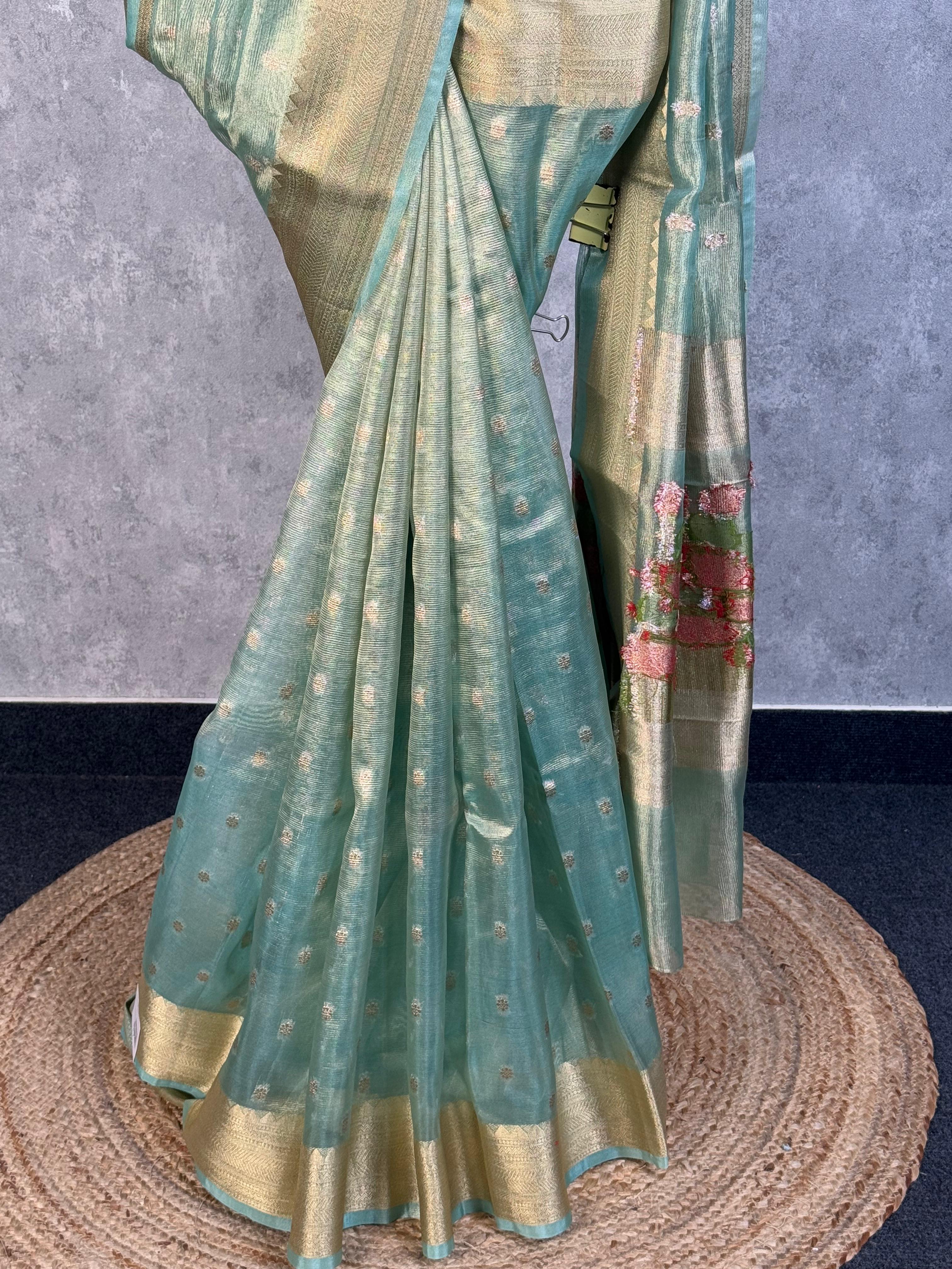 Experience the timeless elegance of a Semi Tissue Banarasi saree, where traditional craftsmanship meets refined sophistication. This lightweight yet luxurious drape features the signature golden zari work and intricate patterns that Banarasi weaving is celebrated for, making it perfect for both festive occasions and special celebrations. The semi tissue fabric offers a delicate sheen and graceful flow, ensuring you look effortlessly graceful while staying comfortable throughout the day.