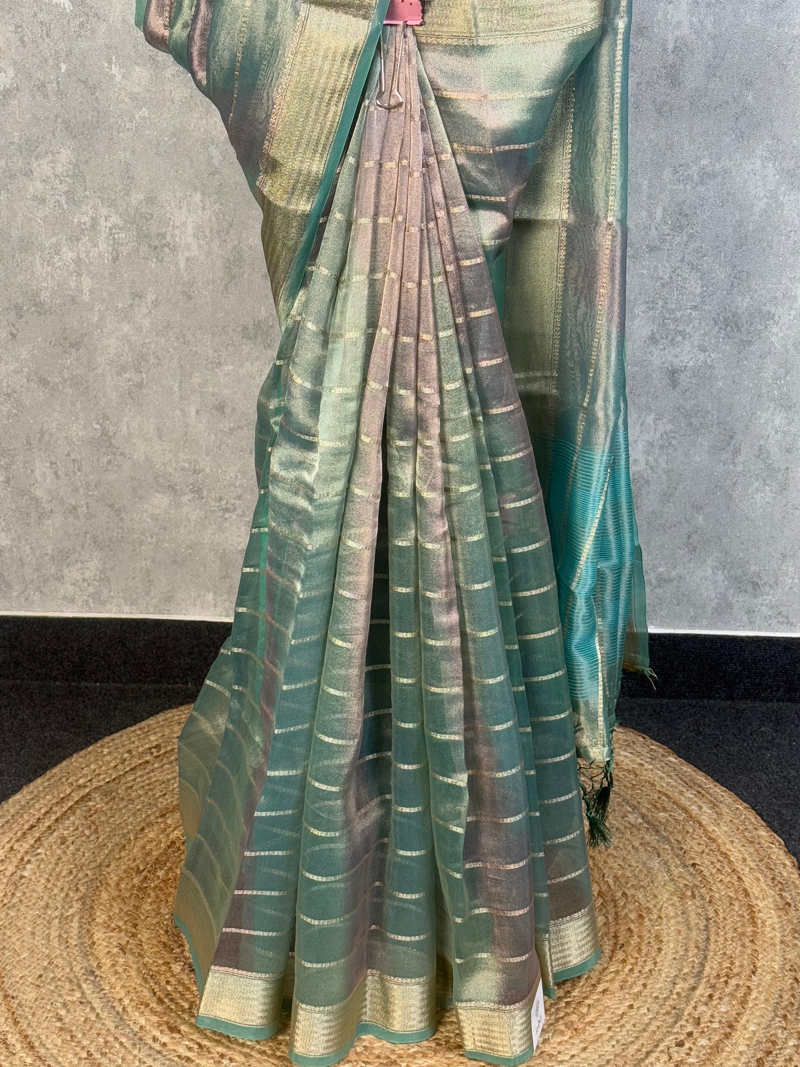 SEMI TISSUE ORGANZA SHADED BANARASI SAREE