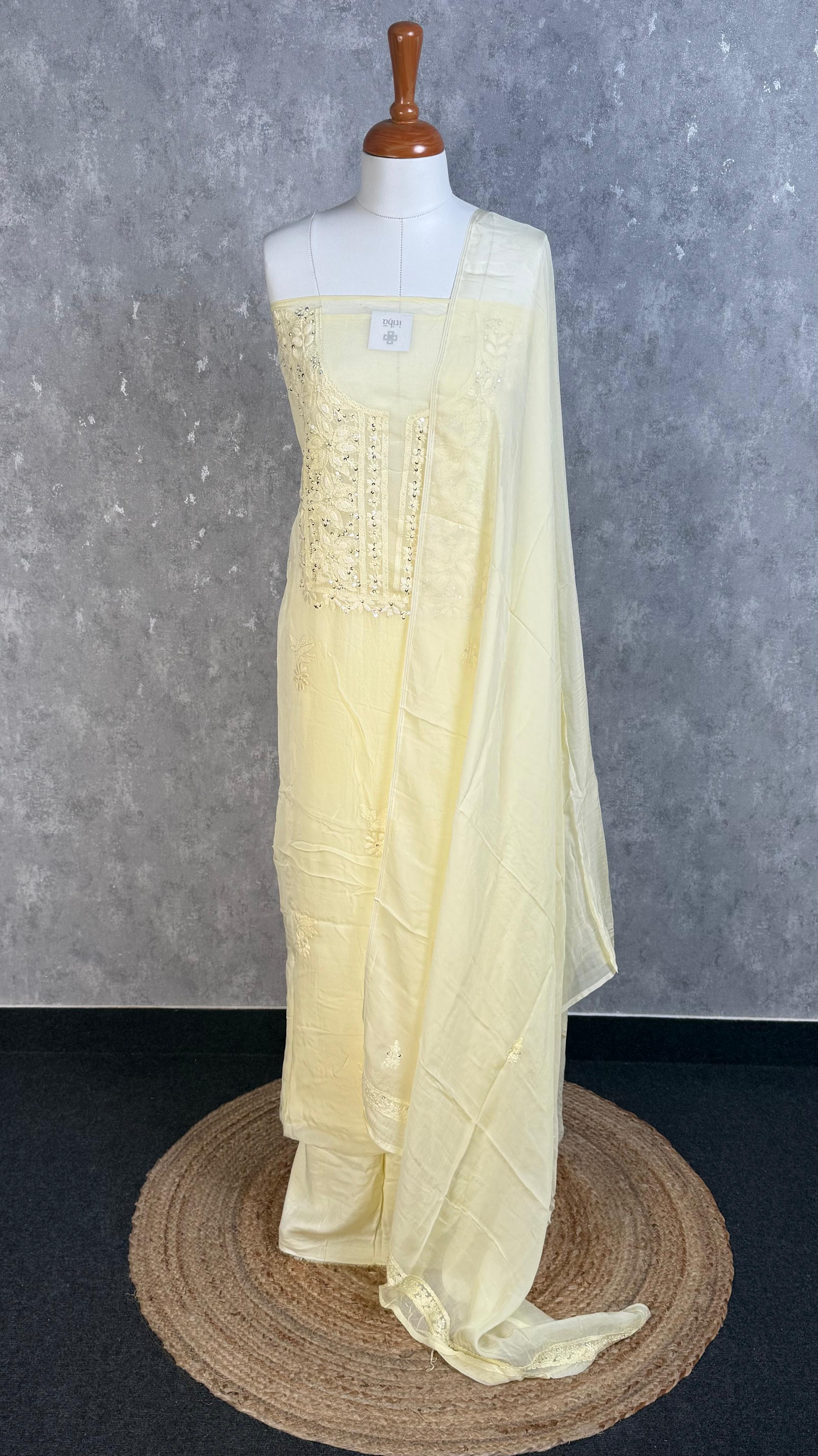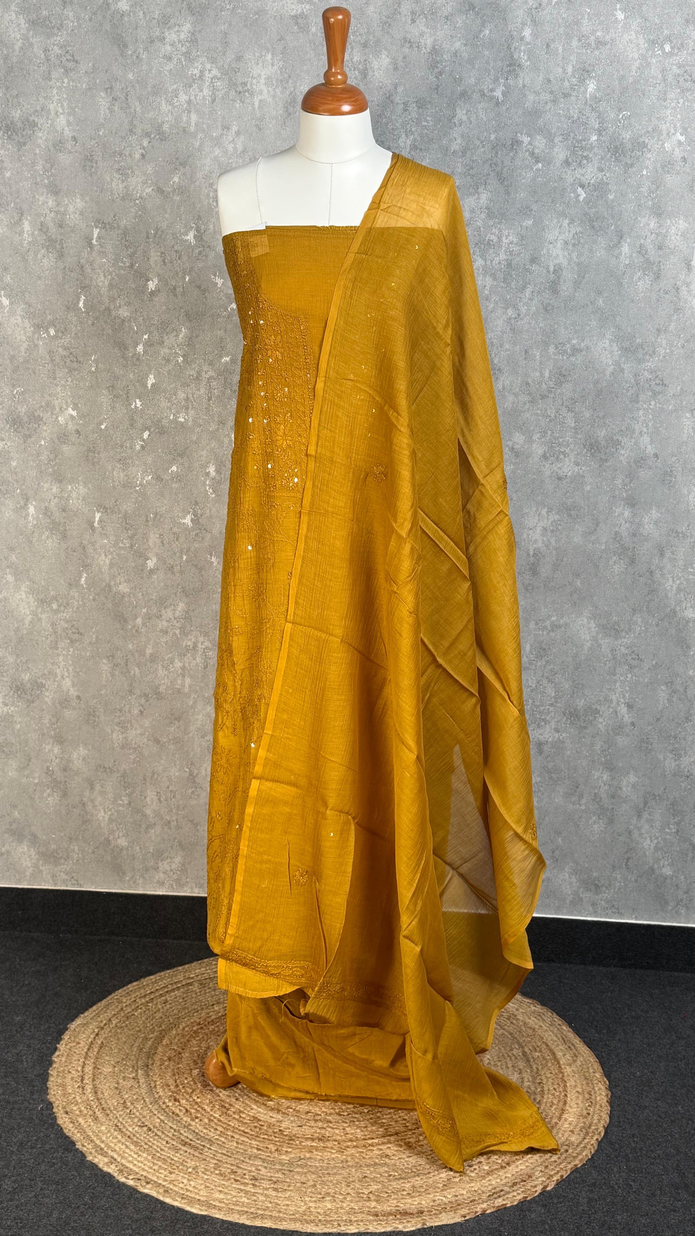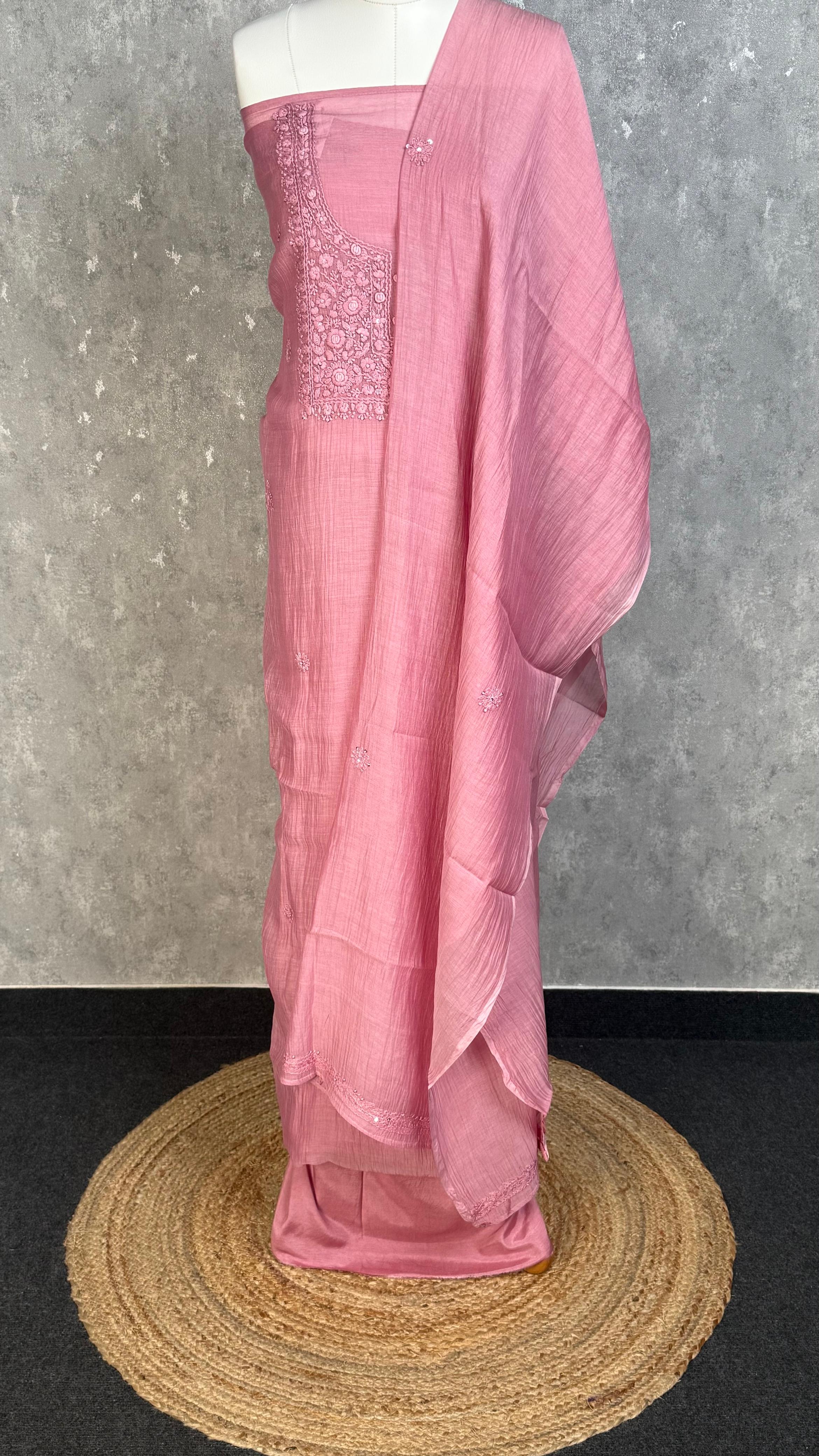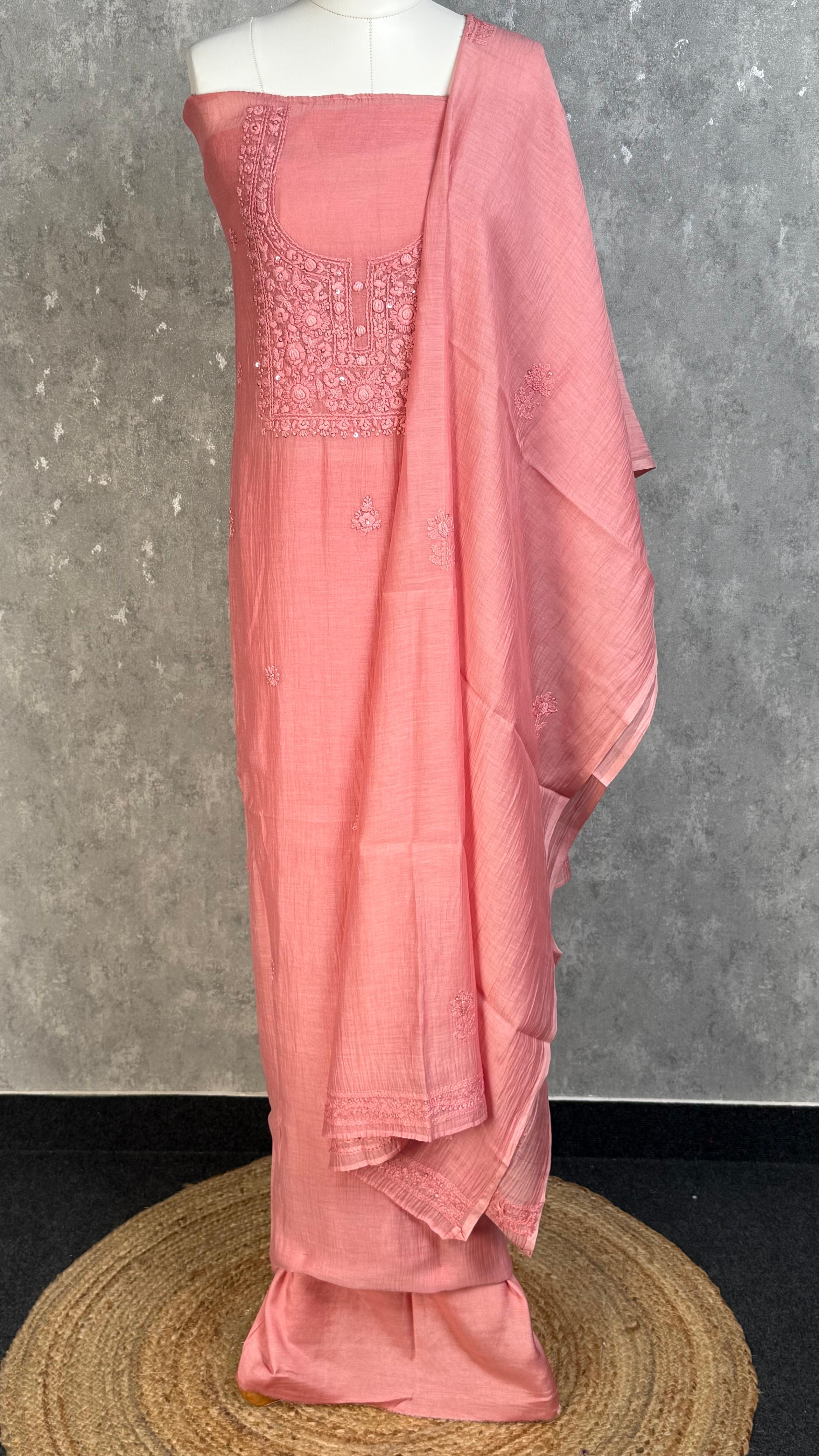 MUL CHANDERI CHIKANKARI SALWAR SET