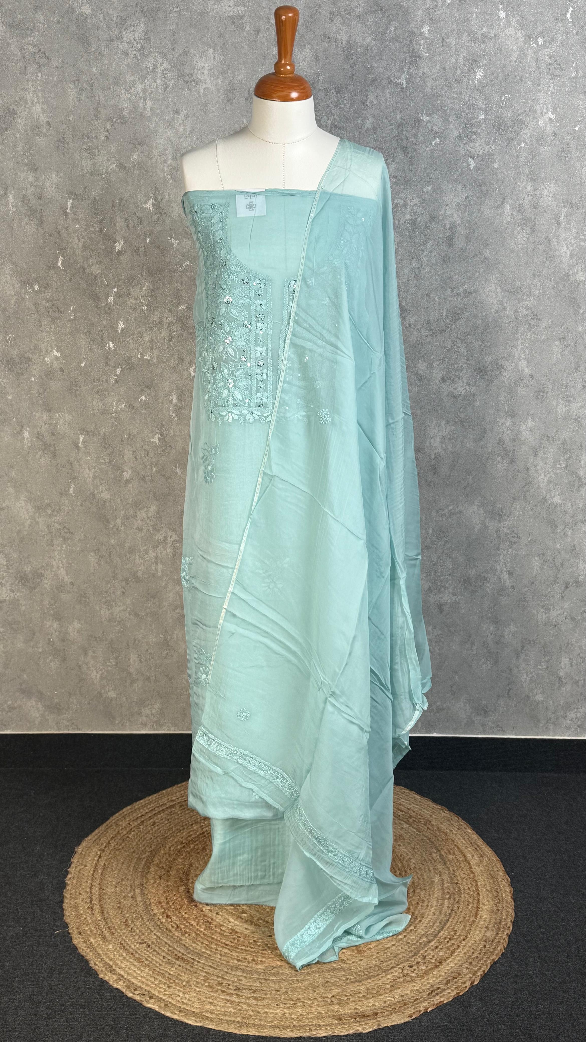 FABRIC            TOP- Mul chanderi ,BOTTOM-Shantoon, DUPPATTA- Mul chanderi