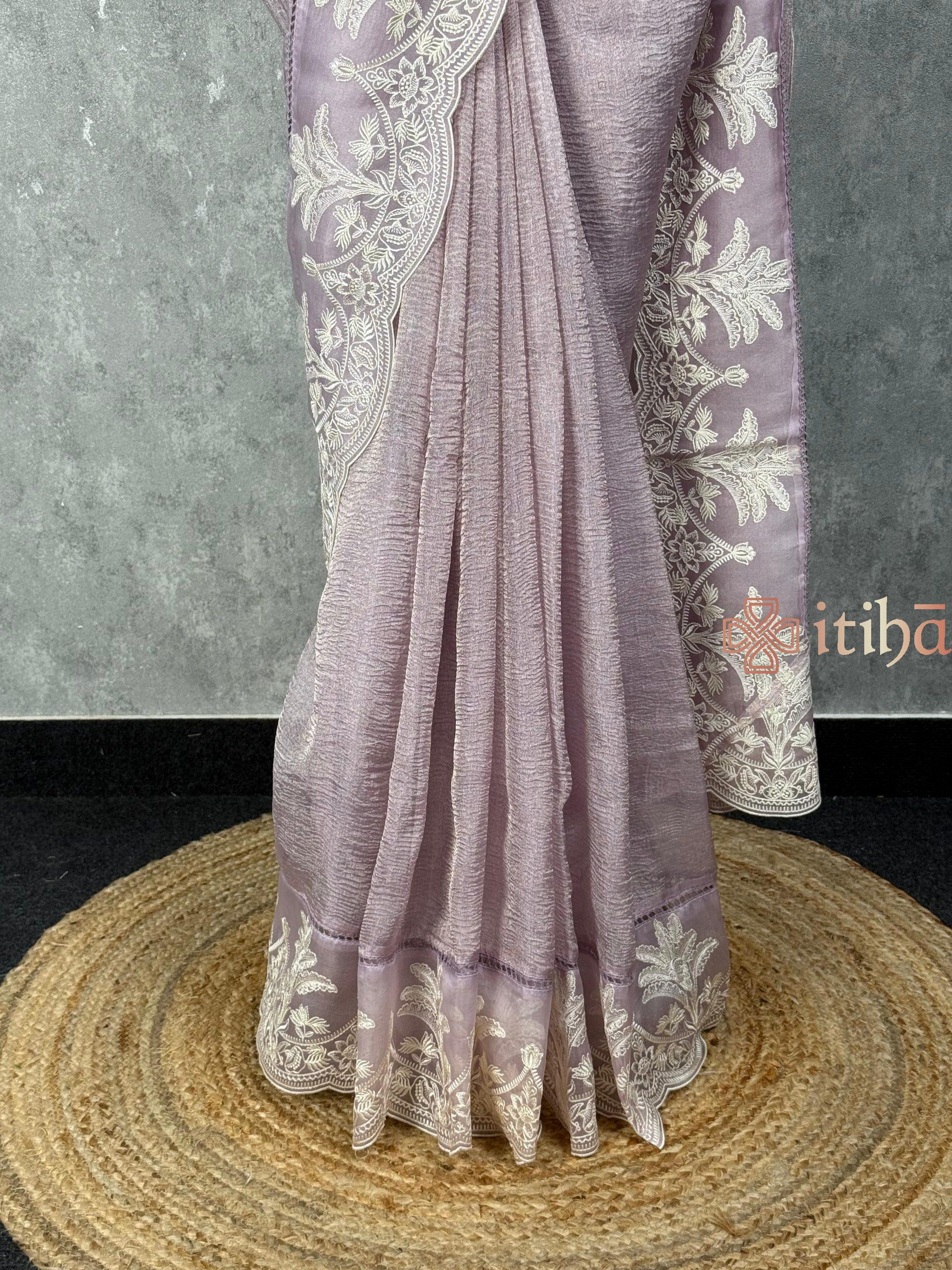 CRUSHED TISSUE SILK EMBROIDERY SAREE