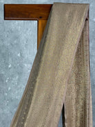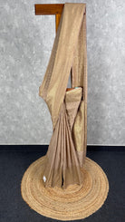 This stunning Semi Georgette Antique Zari Banarasi Saree comes in a vibrant beige shade, admired with intricate antique gold zari weavings. The saree comes with attached self color blouse piece.