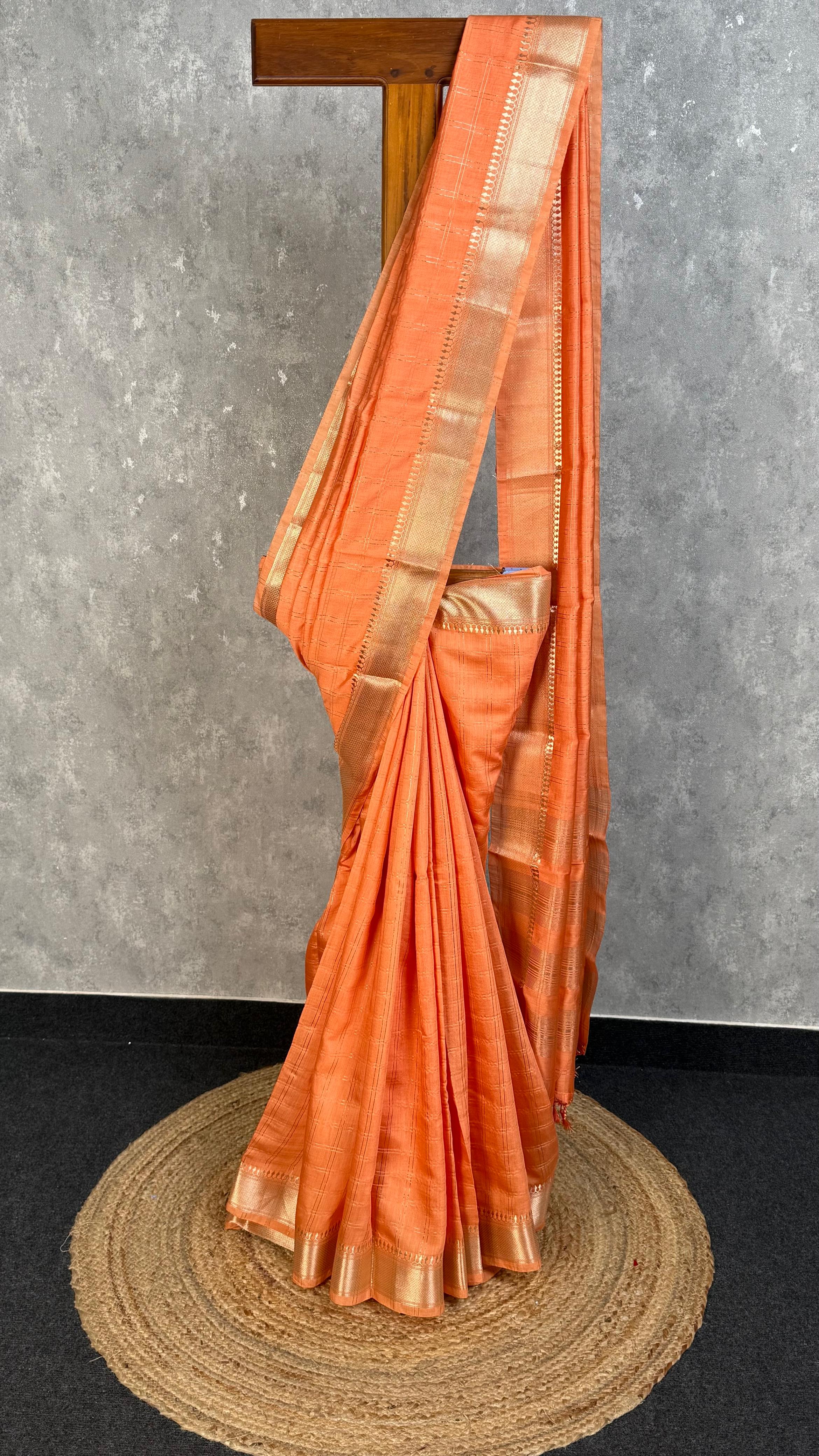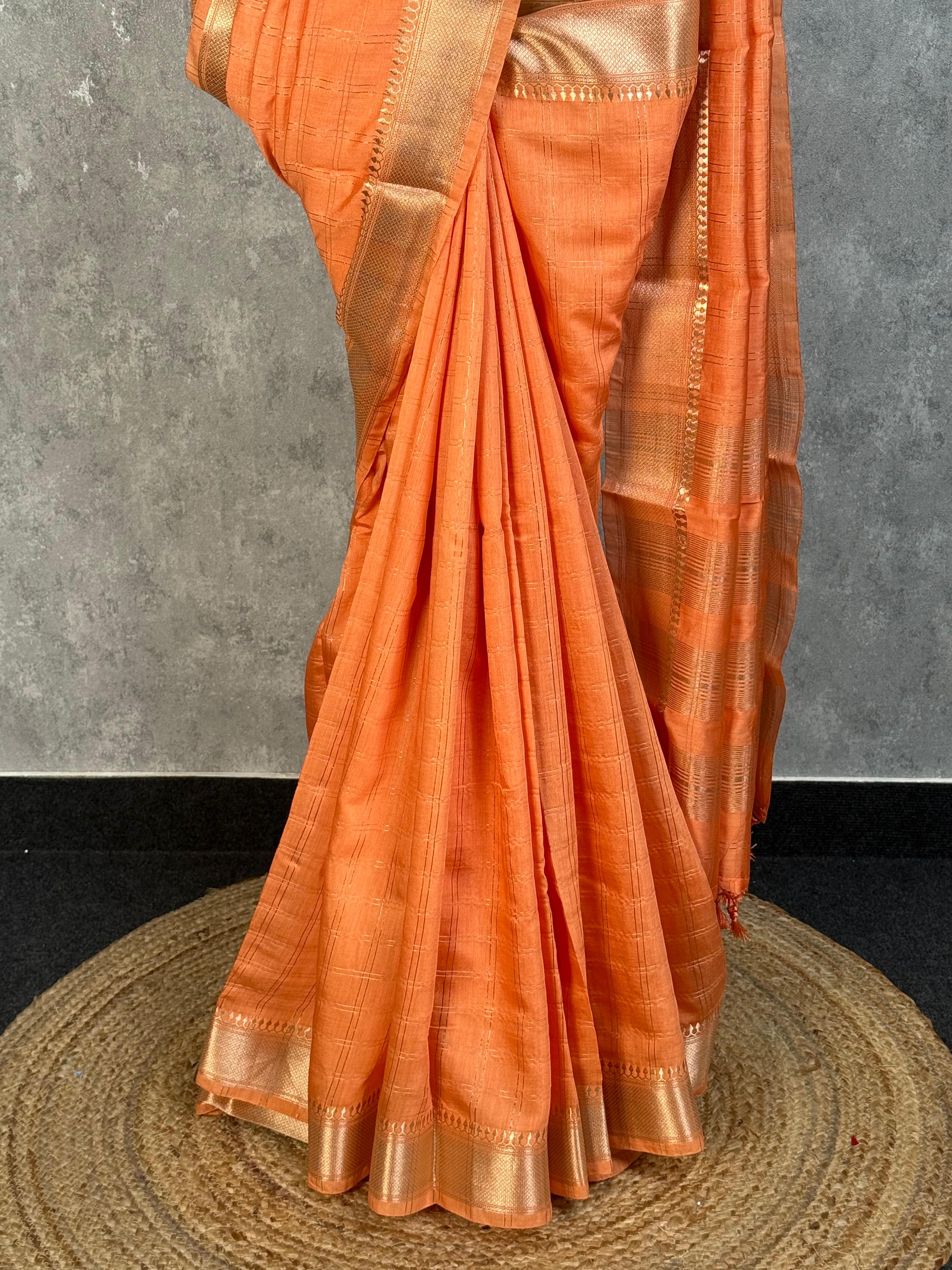 A semi silk saree blends the elegance of silk with the comfort and affordability of cotton blends, making it perfect for everyday wear and special occasions alike. These sarees drape beautifully and maintain their shape, offering a sophisticated look without the high maintenance of pure silk. Ideal for those seeking quality craftsmanship at an accessible price point.