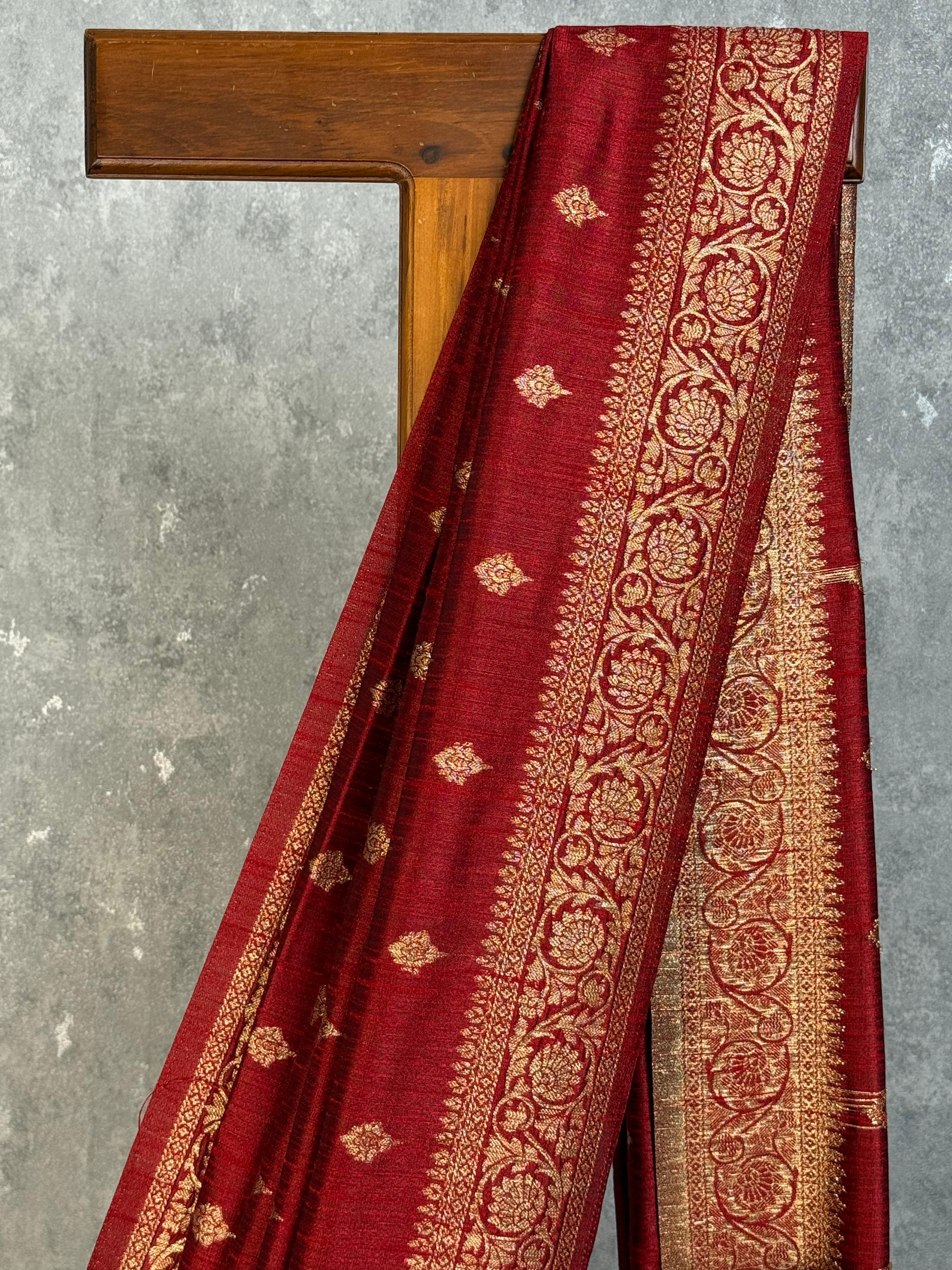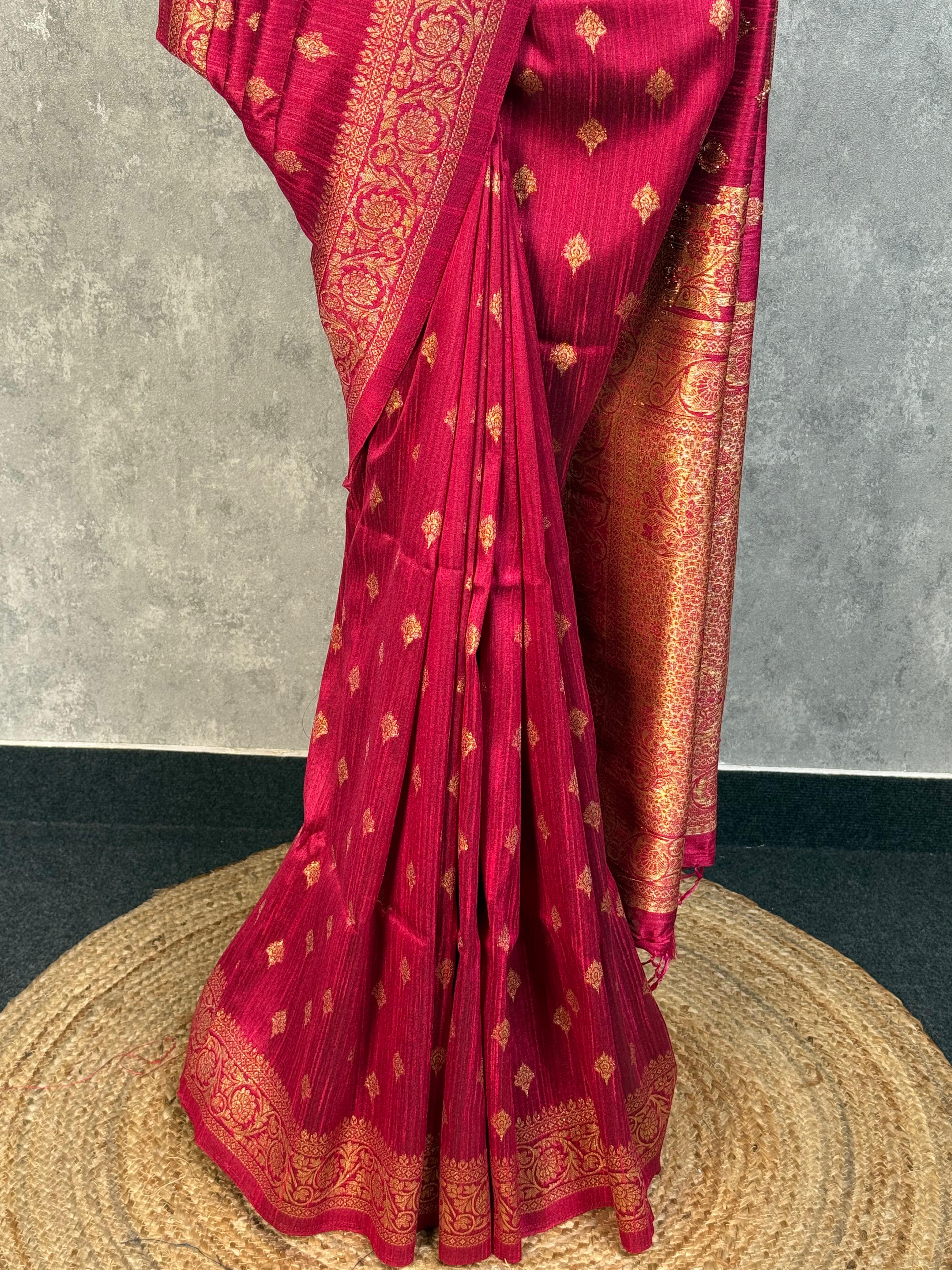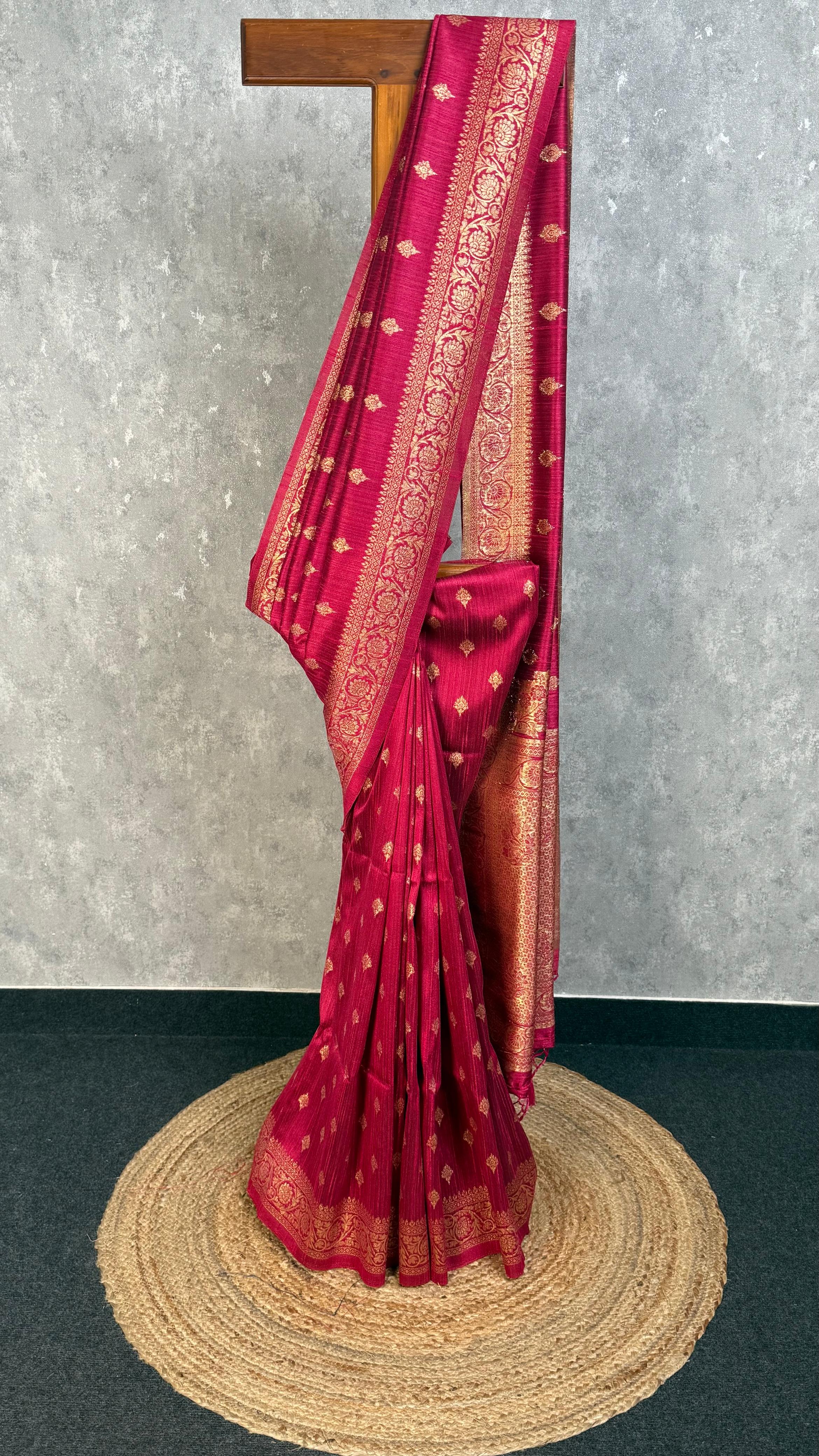 Experience the timeless elegance of our Semi Raw Silk Weaving Banarasi Saree, a masterpiece that blends traditional craftsmanship with refined sophistication. Handwoven using premium semi-raw silk, this saree showcases the intricate weaving techniques that Banarasi sarees are celebrated for, creating a fabric with natural texture and subtle lustre. Perfect for weddings, festivals, and special occasions, this piece brings authentic artisan quality to your wardrobe.