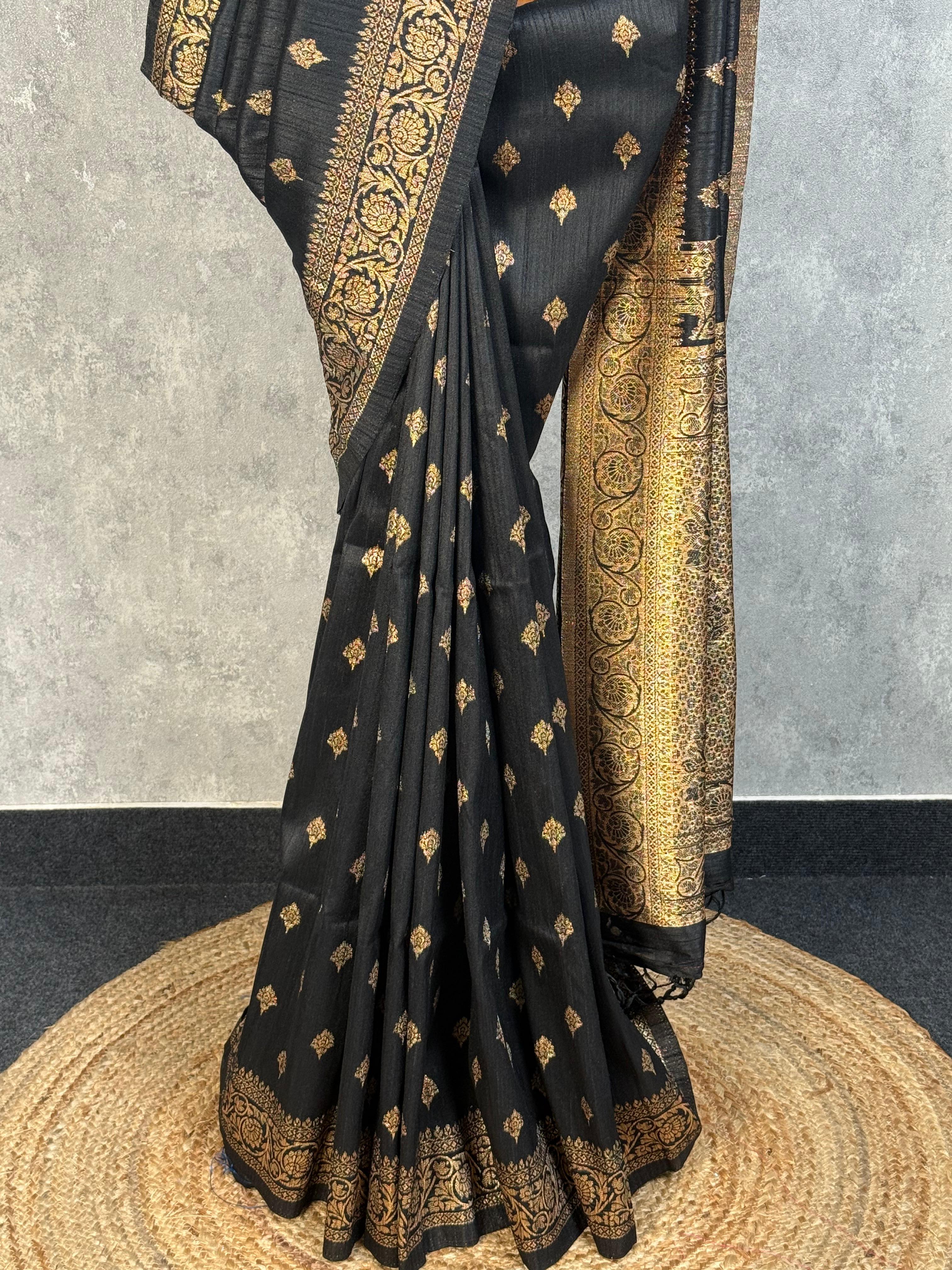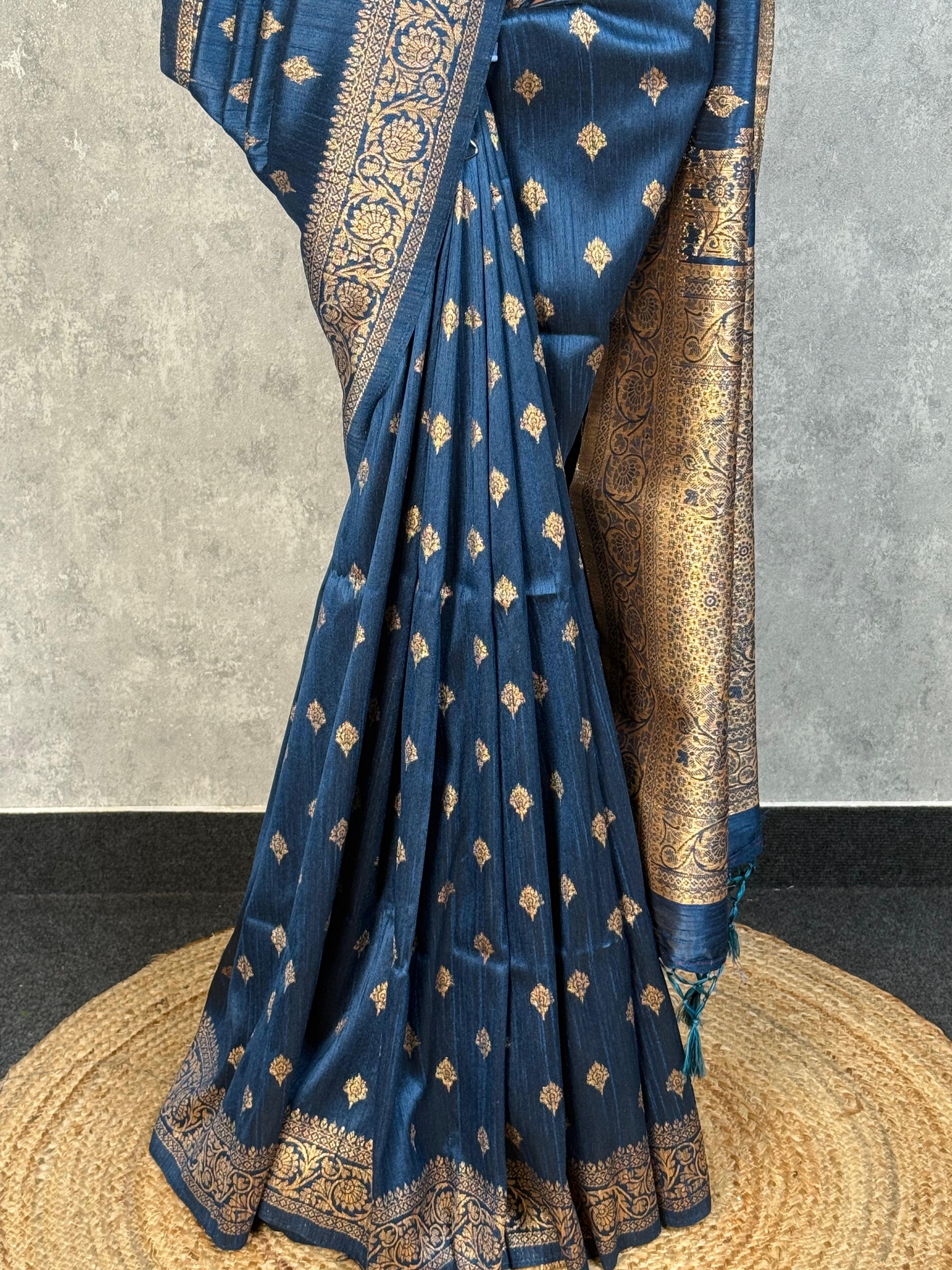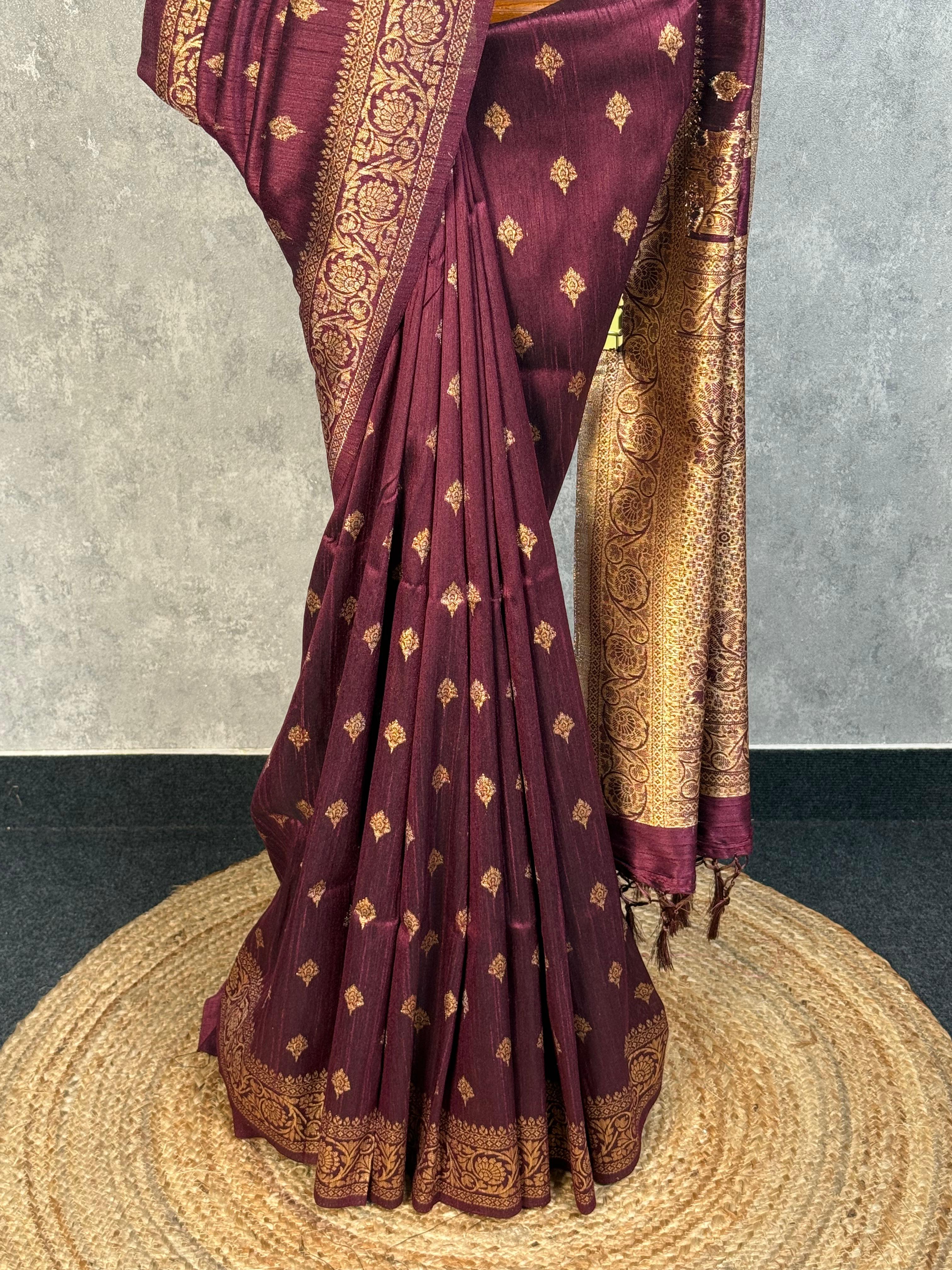 Experience the timeless elegance of our Semi Raw Silk Weaving Banarasi Saree, a masterpiece that blends traditional craftsmanship with refined sophistication. Handwoven using premium semi-raw silk, this saree showcases the intricate weaving techniques that Banarasi sarees are celebrated for, creating a fabric with natural texture and subtle lustre. Perfect for weddings, festivals, and special occasions, this piece brings authentic artisan quality to your wardrobe.
