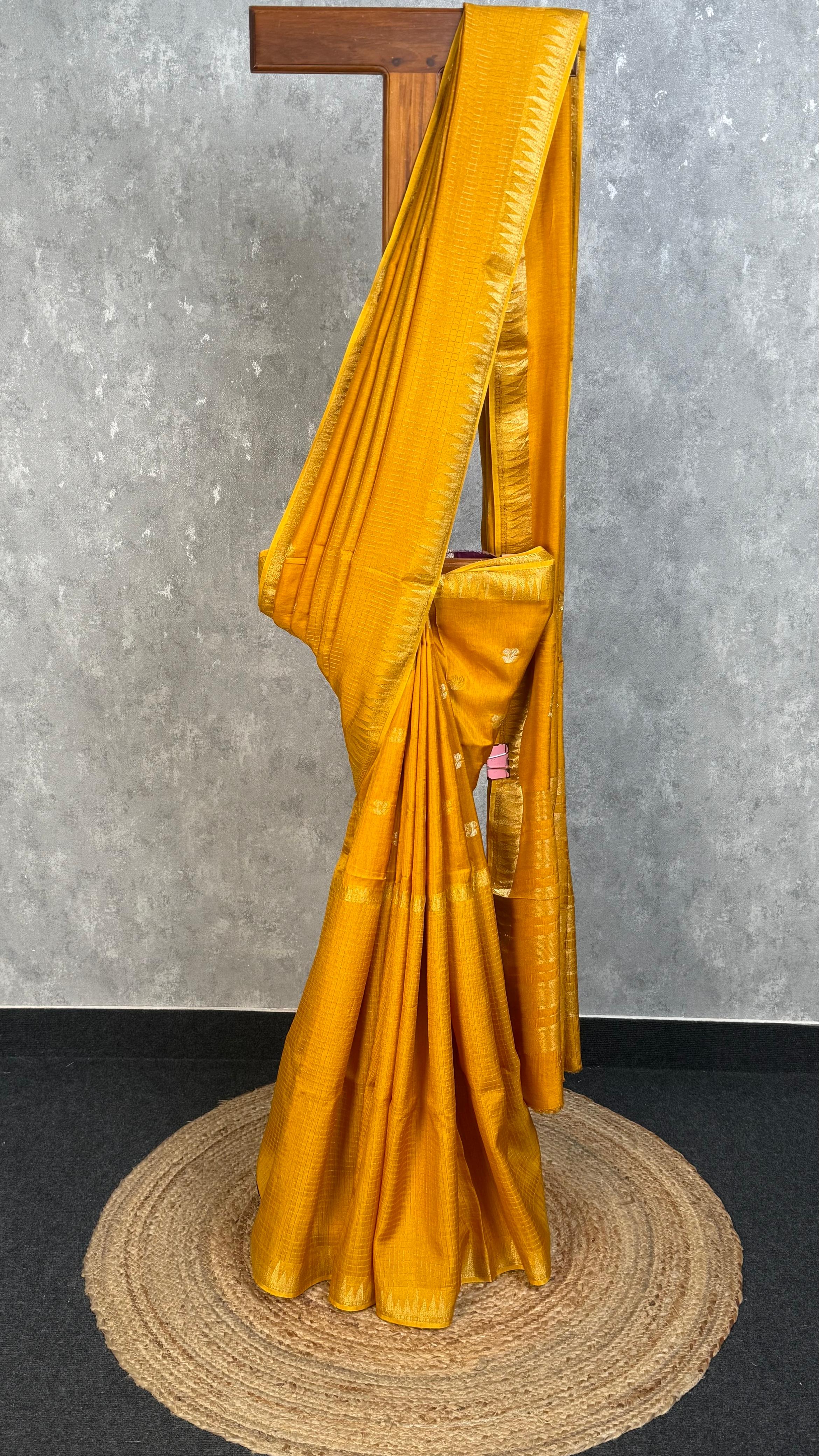 Semi Silk Banarasi Saree Crafted with the timeless elegance of Banarasi weaving traditions, this semi-silk saree combines lustrous silk with durable blended fibers for a refined drape and lasting sheen. The intricate brocade patterns showcase masterful artisanship, making it an ideal choice for weddings, festivals, and formal celebrations. Versatile enough for both traditional and contemporary styling, this saree delivers luxury appeal with practical everyday wearability.