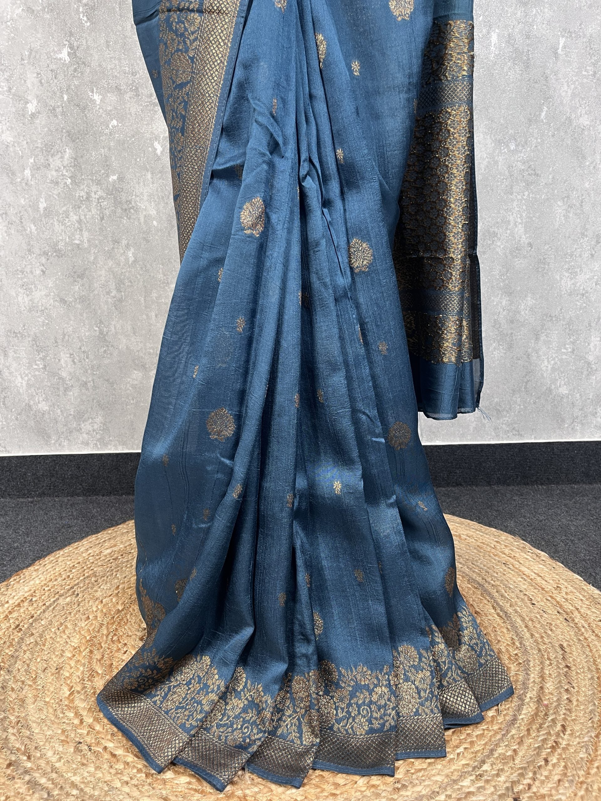 SEMI TUSSAR RAW SILK BANARASI SAREE