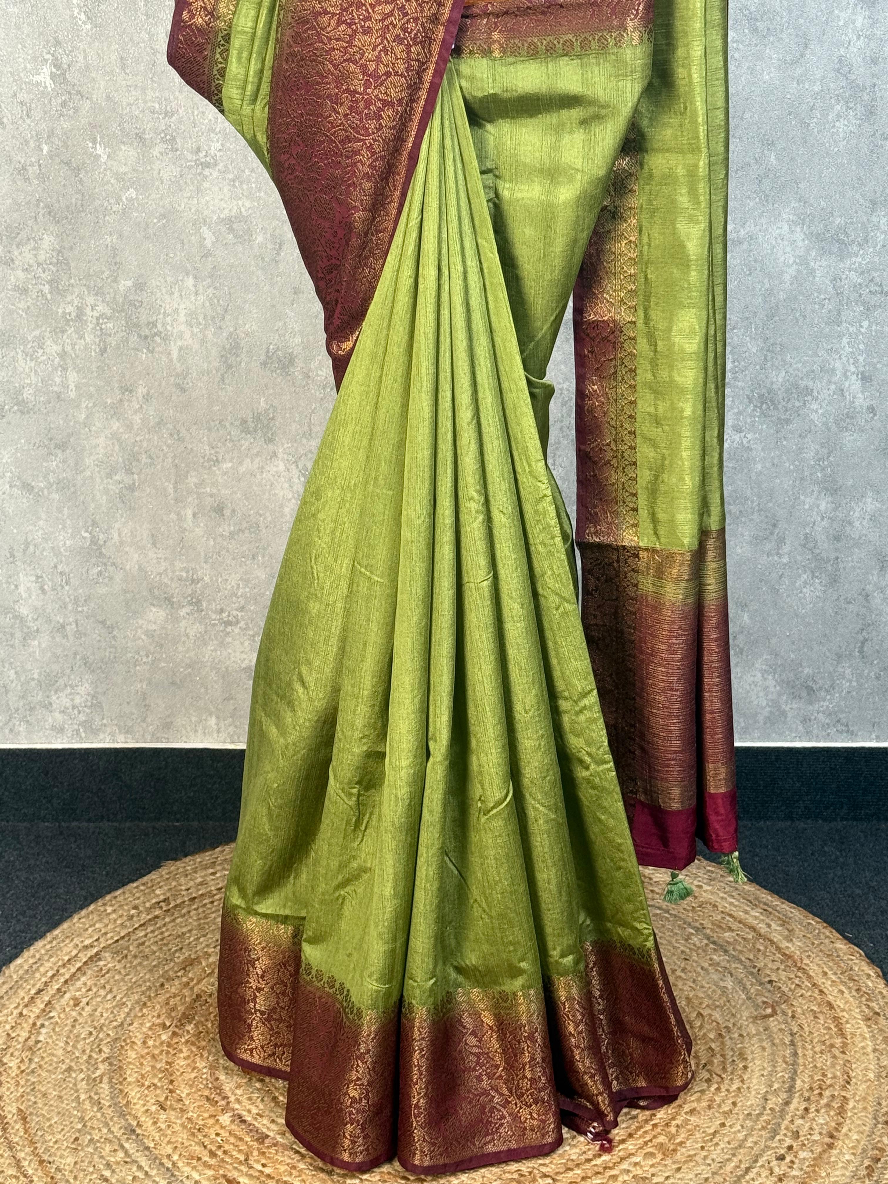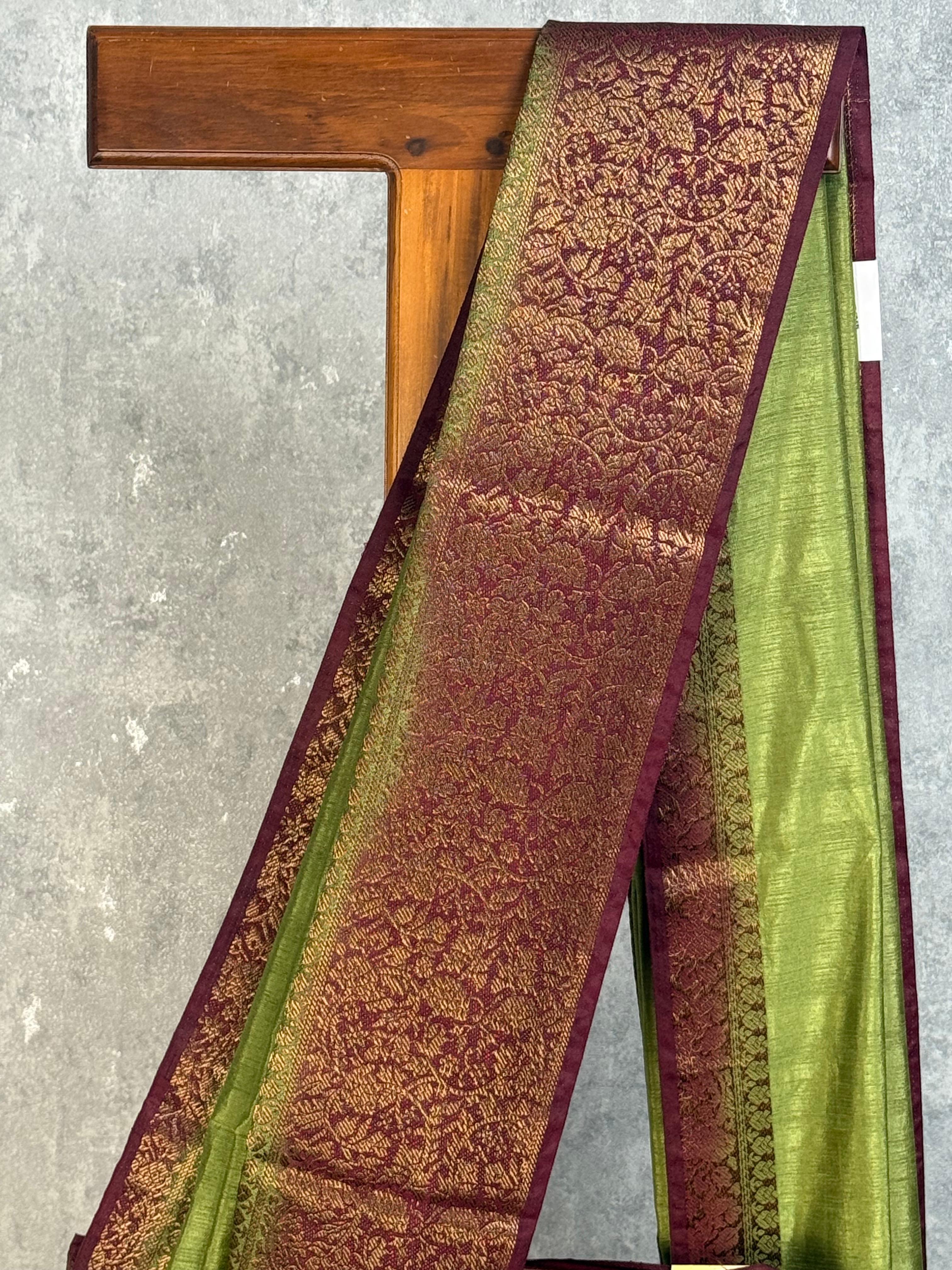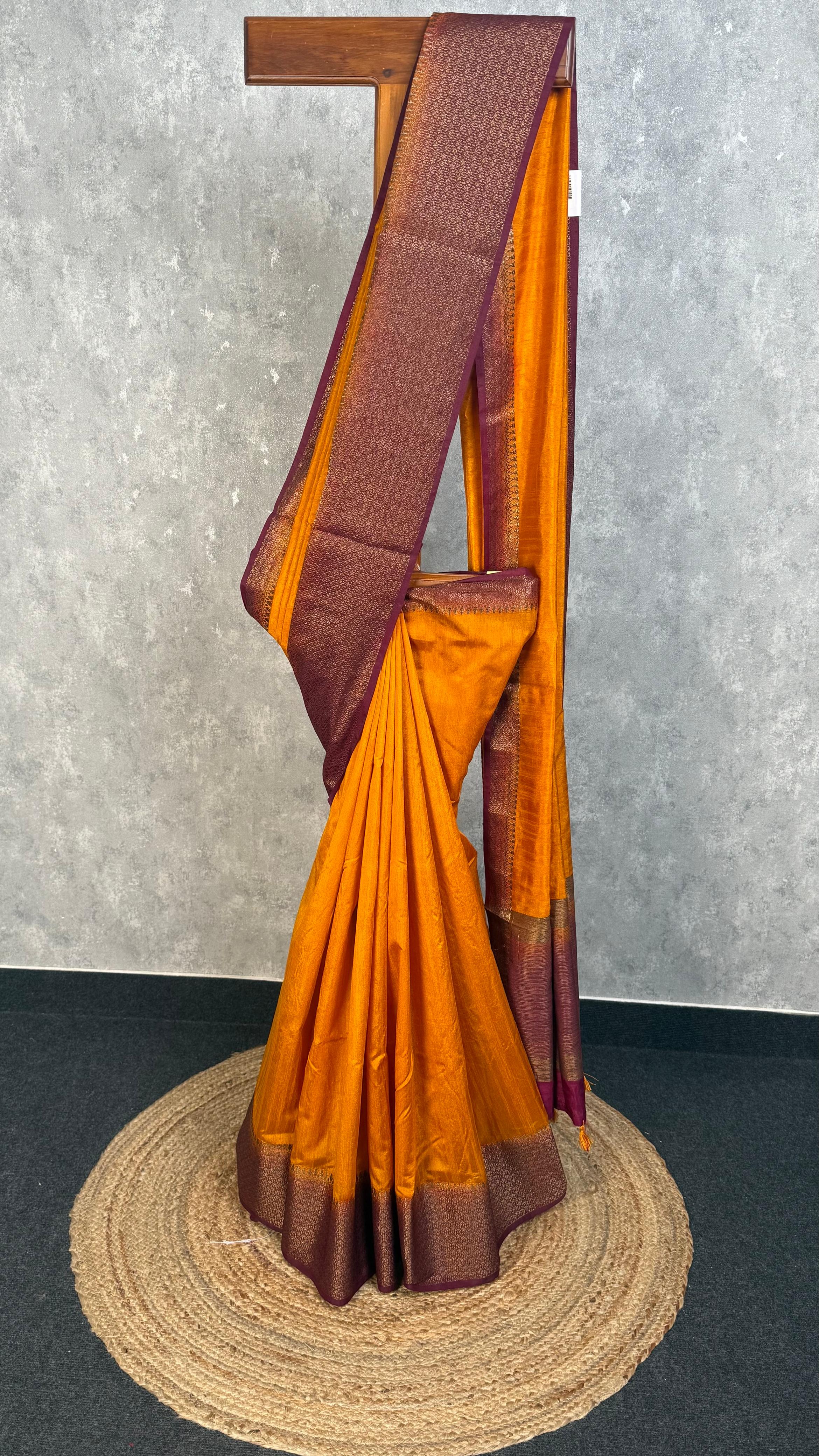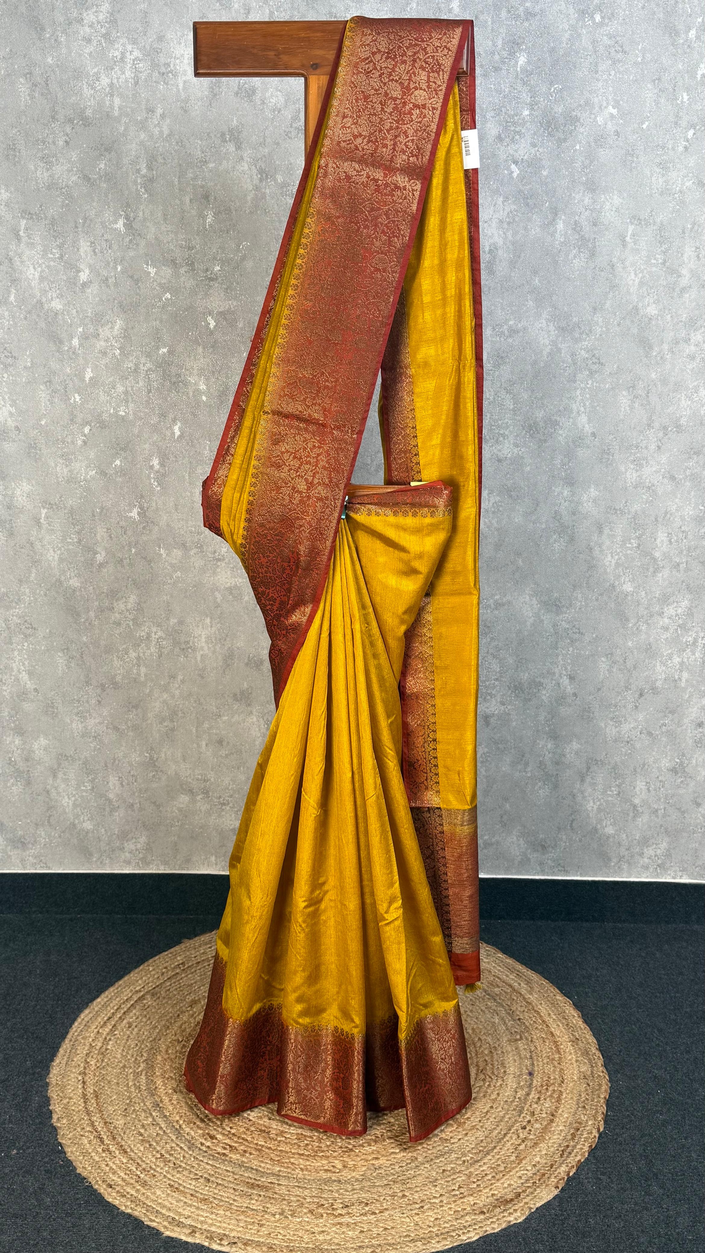Experience the timeless elegance of this Semi Tussar Weaving Contra Banarasi Saree, where traditional craftsmanship meets sophisticated design. This saree blends the lustrous texture of tussar silk with classic Banarasi weaving techniques, creating a piece that's both comfortable to wear and striking to look at. Perfect for celebrations and special occasions, it brings together heritage artistry with modern style.