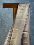 This semi tissue organza Banarasi saree features a golden pink colour. The semi tissue organza material gives the saree a lightweight and airy feel. The saree showcases traditional Banarasi craftsmanship with its intricate gold border.The saree comes with attached self color blouse piece.