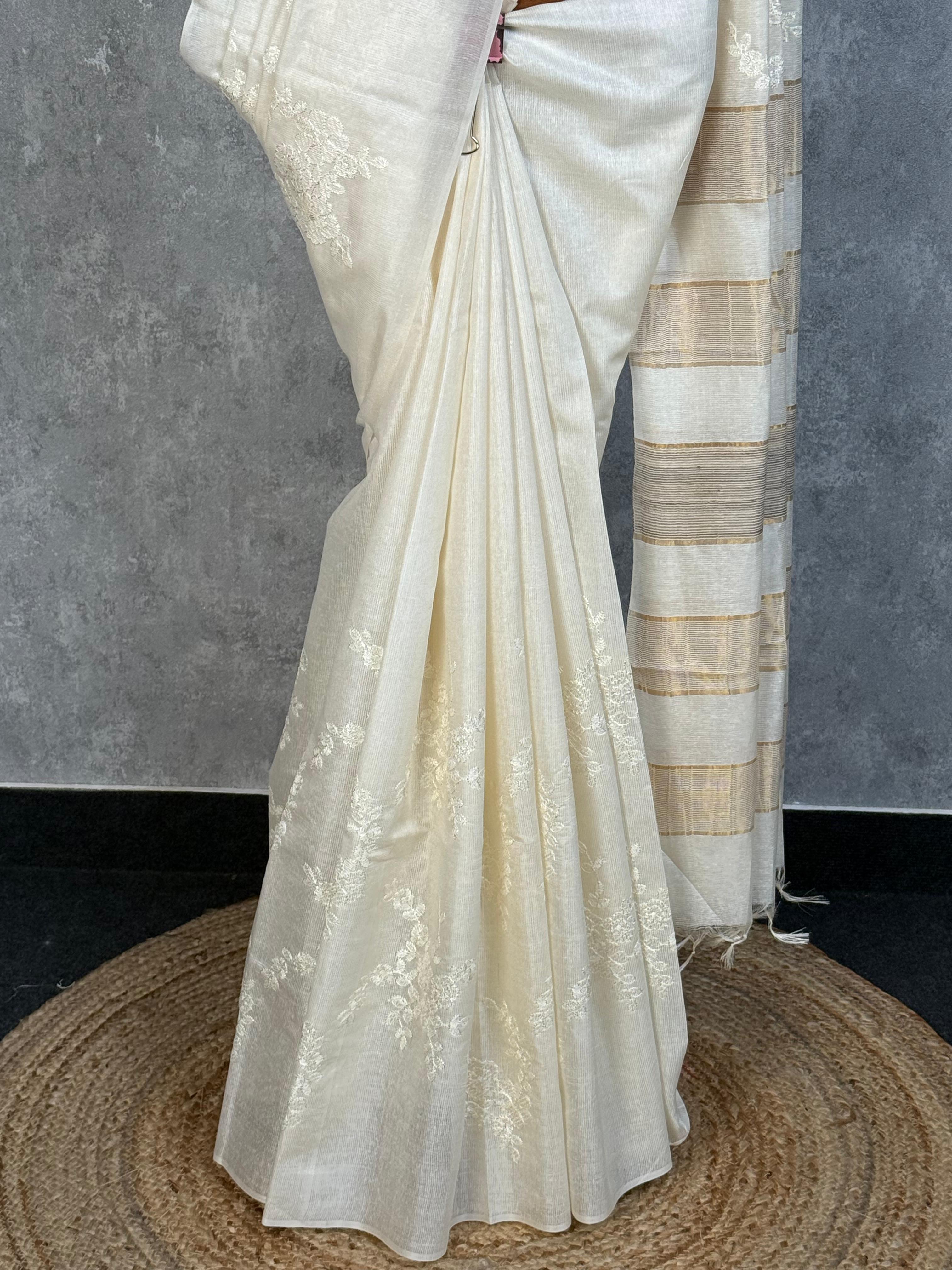 Keep the garment wrapped in cotton fabric. It is advisable to fold your organza saris in a roll for better preservation. Avoid spraying perfume directly onto the garment. Do not use naphthalene balls while storing it. Remove any stains or spots only with white petrol. Store the garment in a moderate climate, as zari can react to weather changes.
