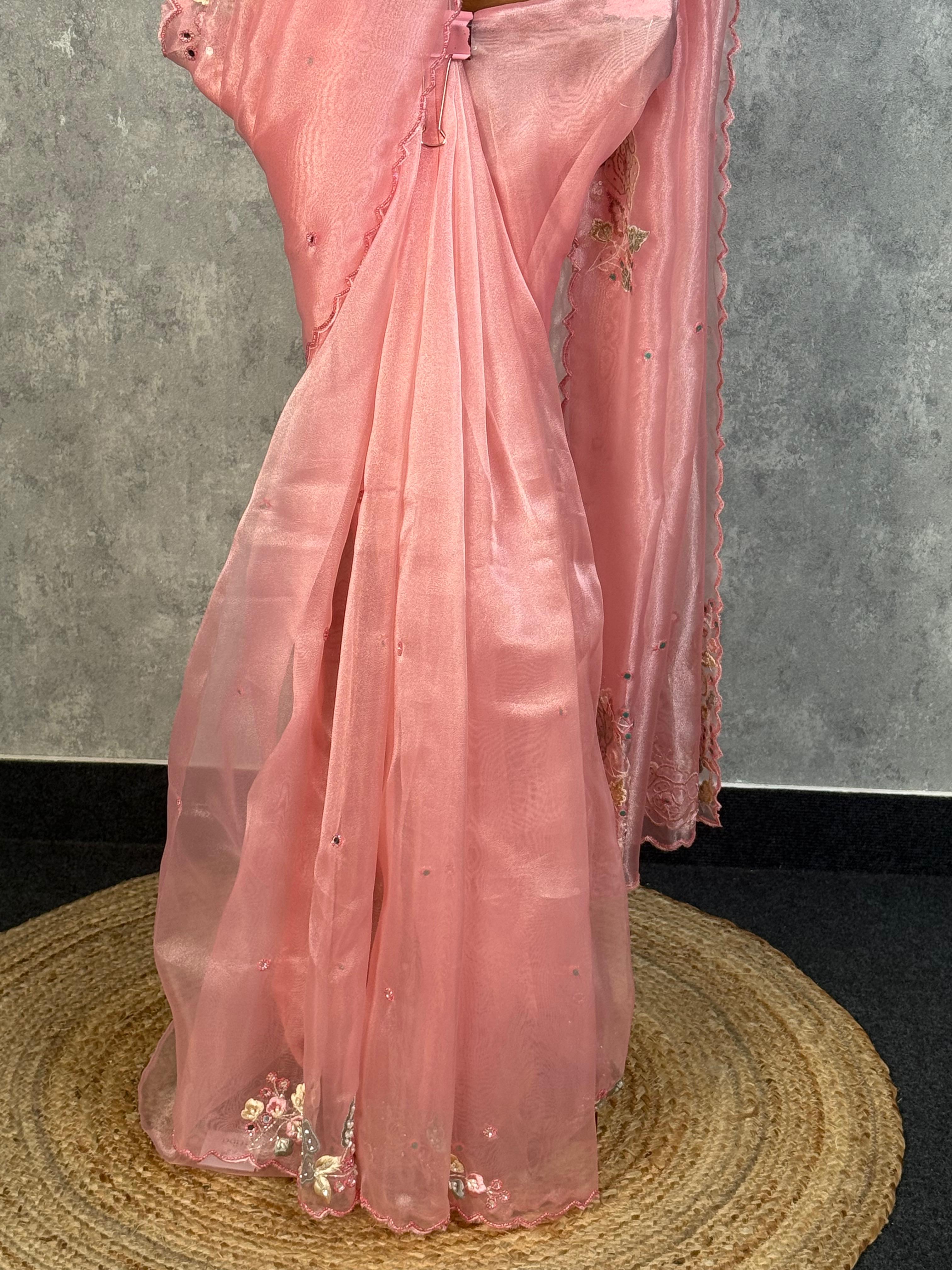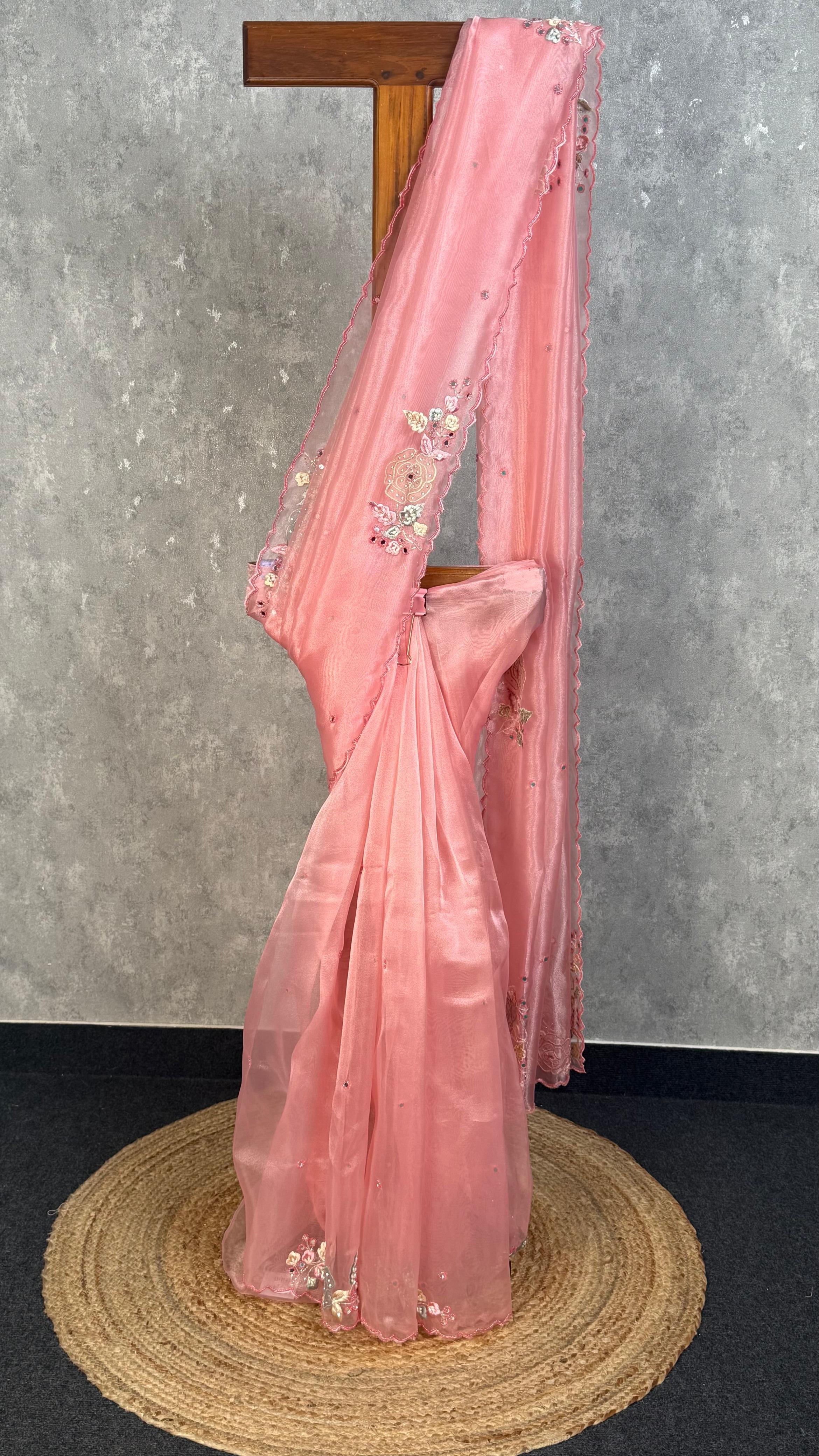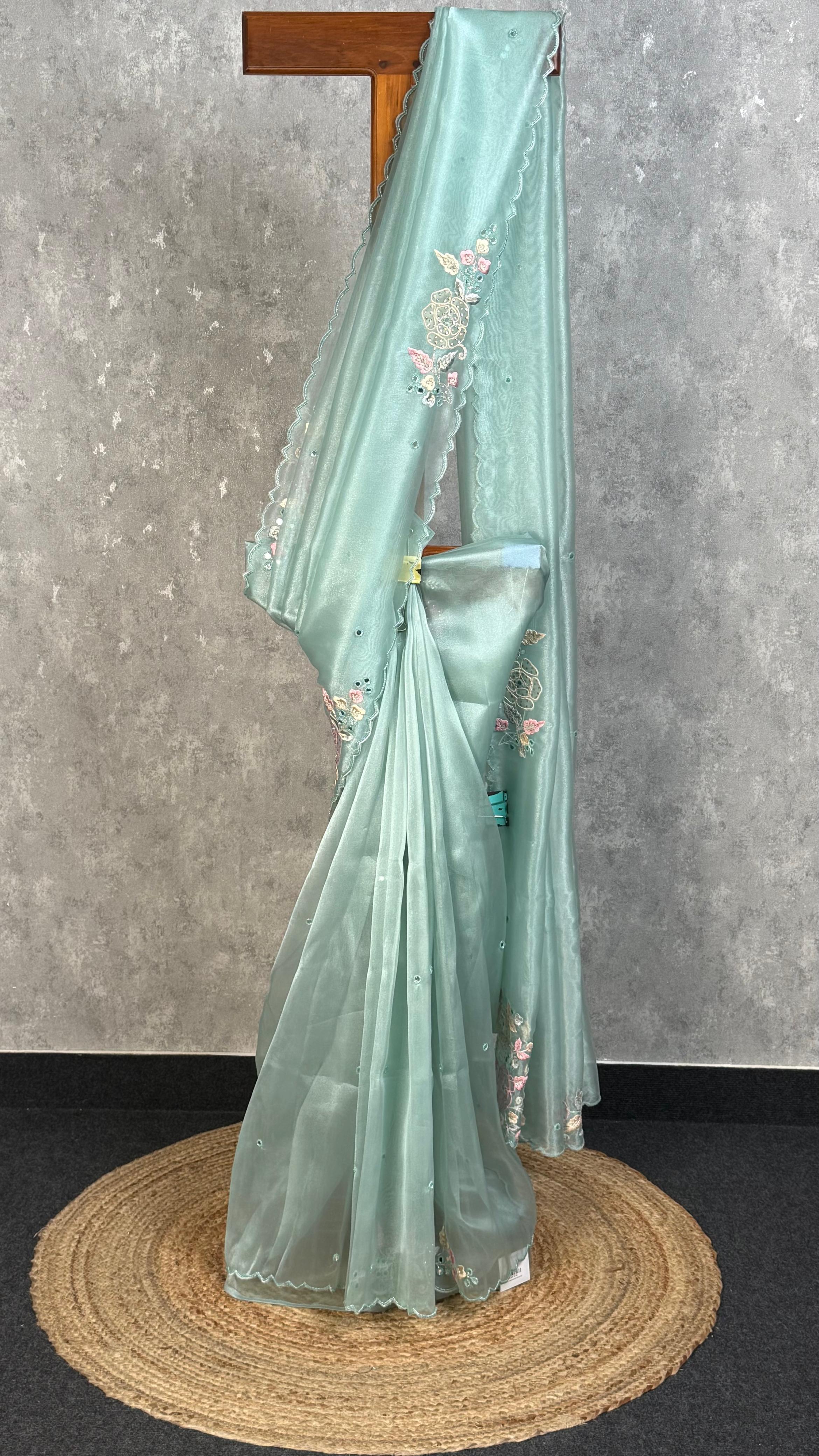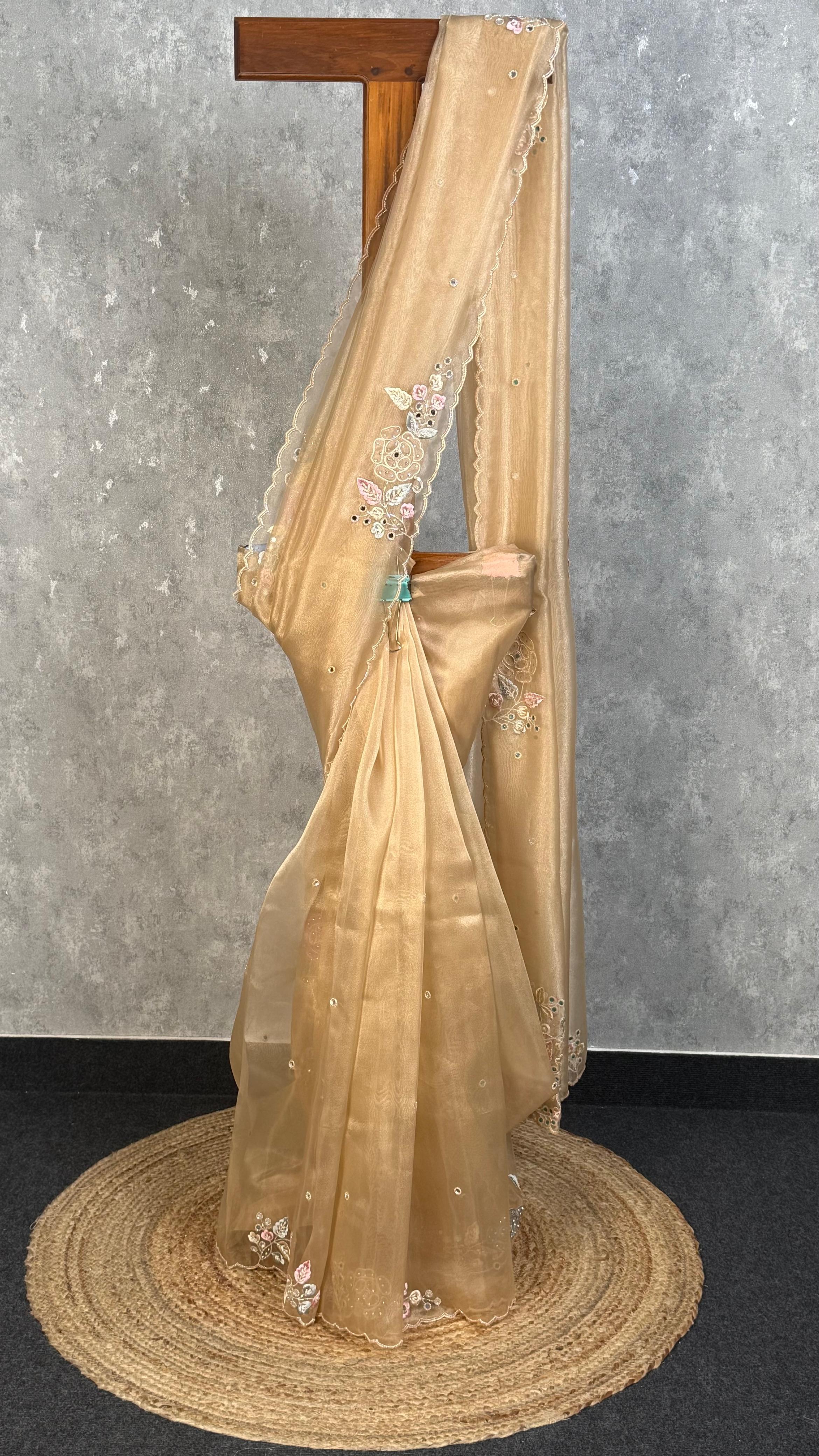 This elegant organza saree features delicate embroidery work that brings timeless grace to your wardrobe. The lightweight fabric drapes beautifully, making it perfect for weddings, festivals, and special occasions. Crafted with attention to detail, this piece combines traditional artistry with modern sophistication.