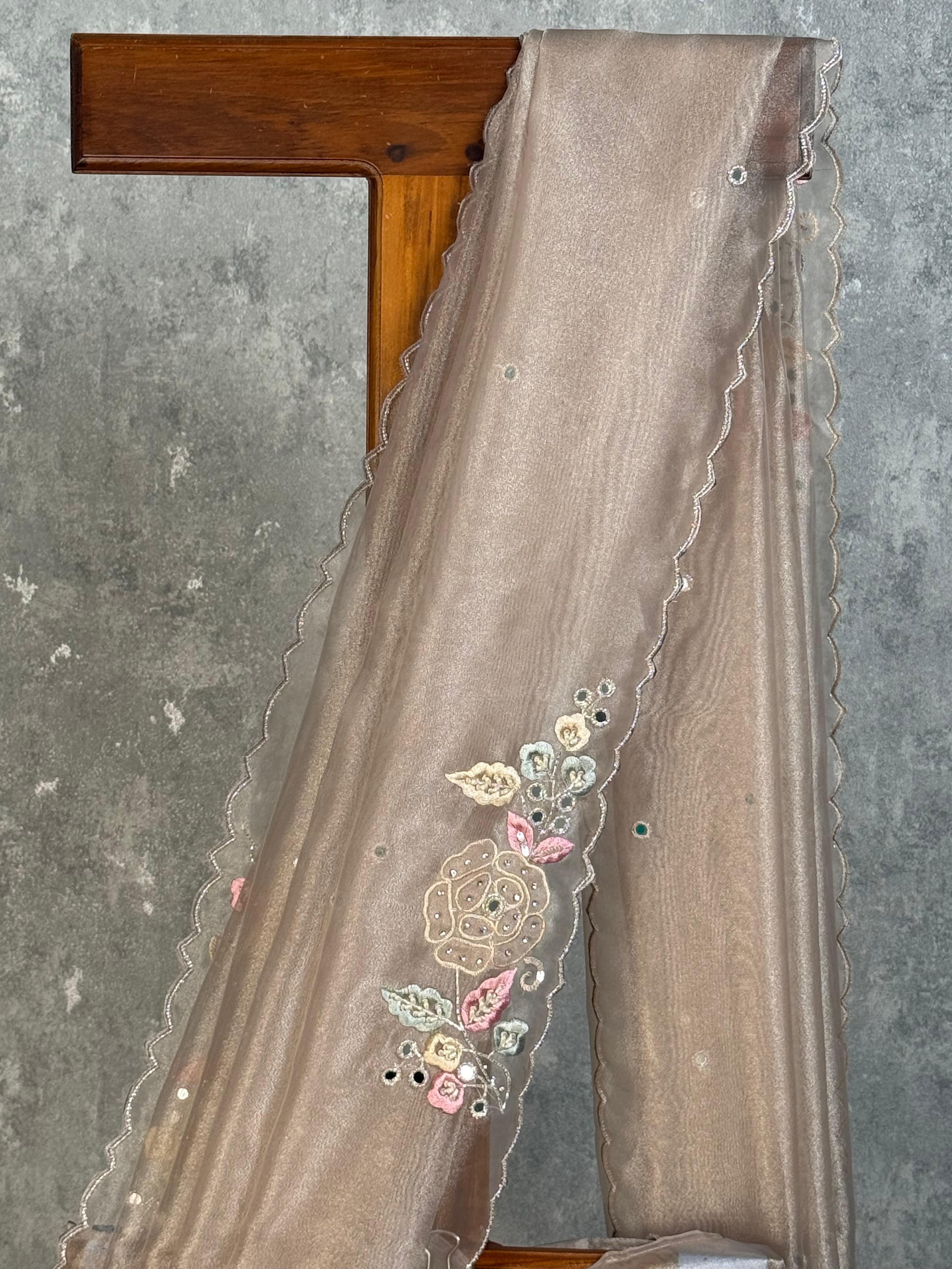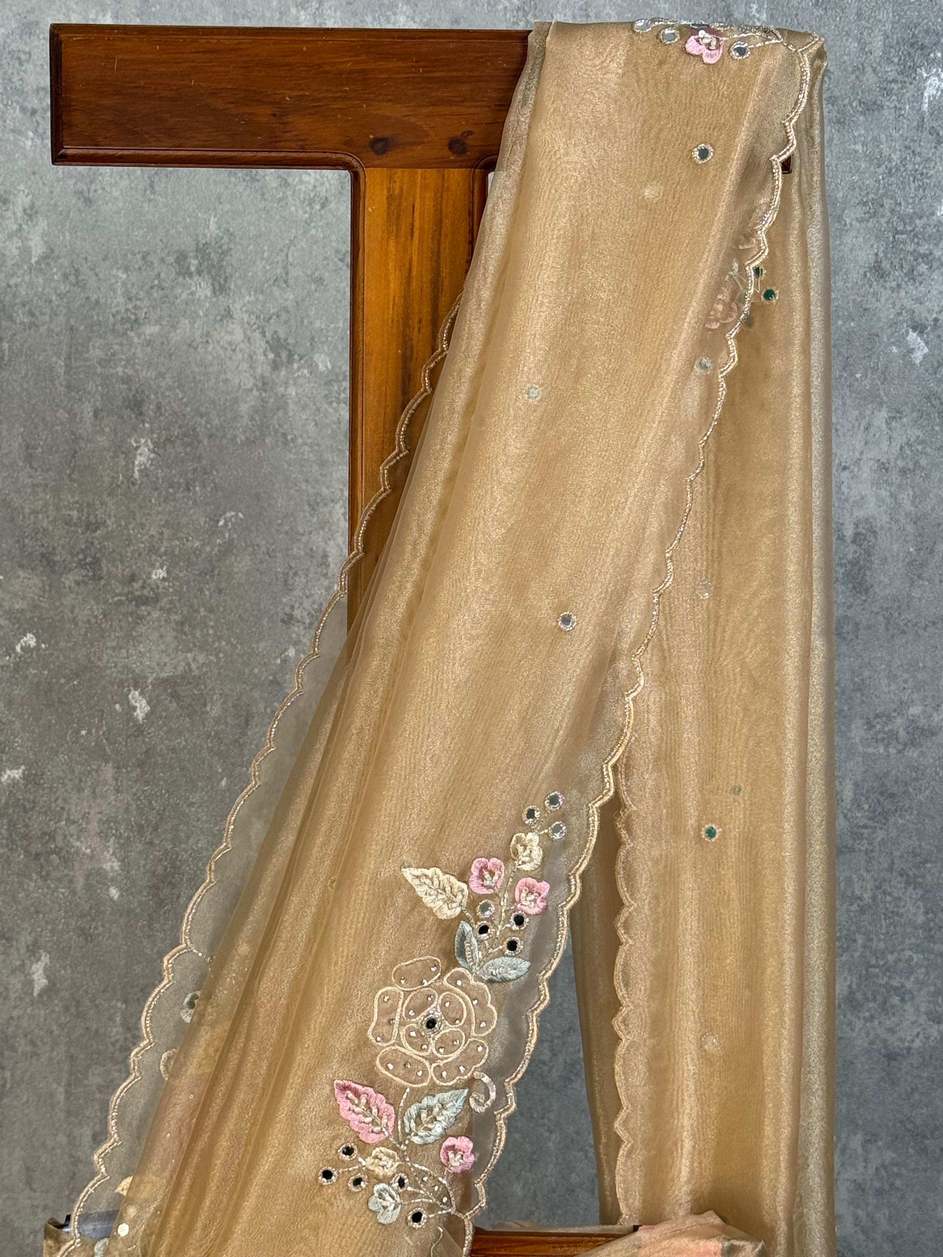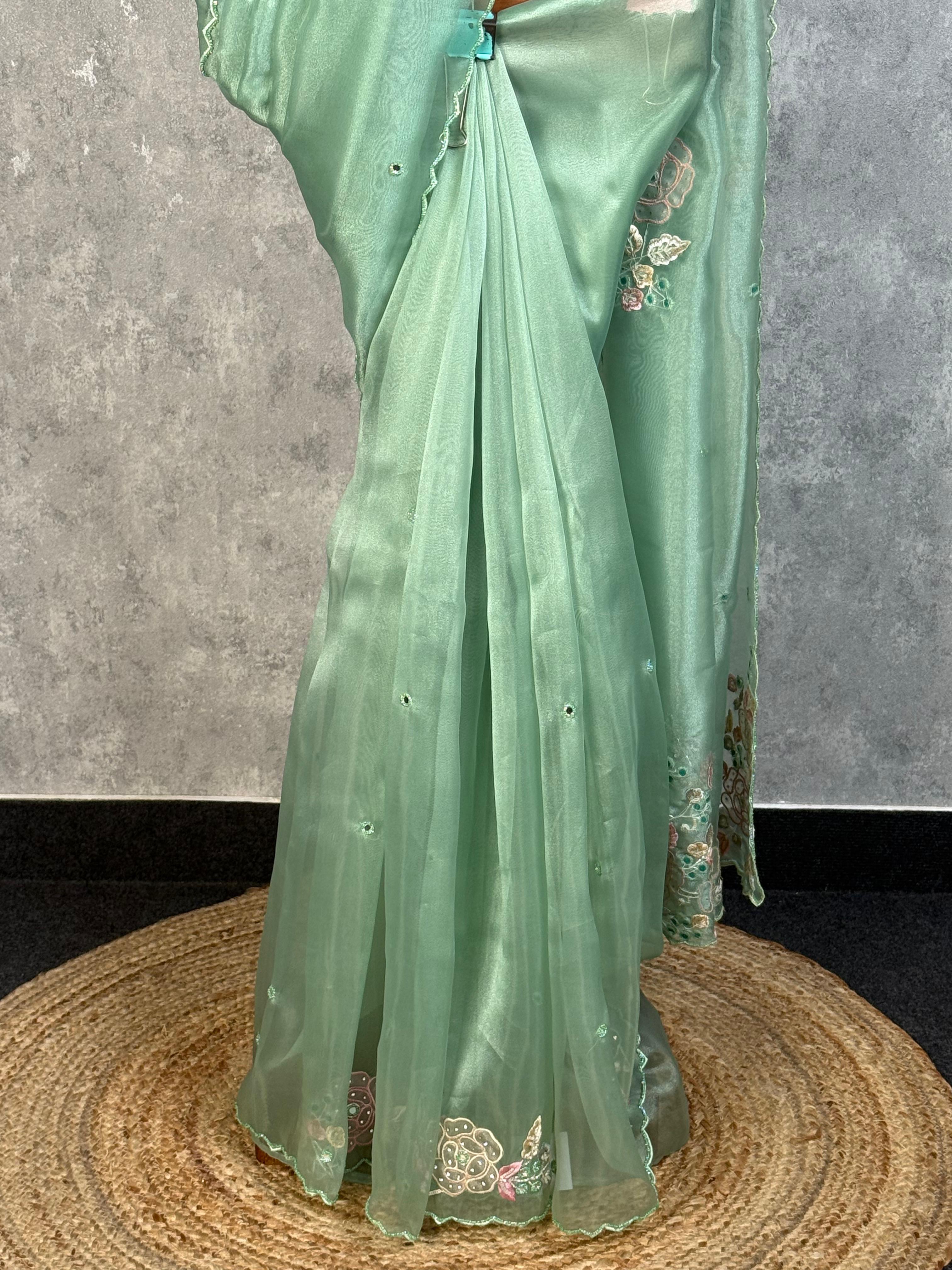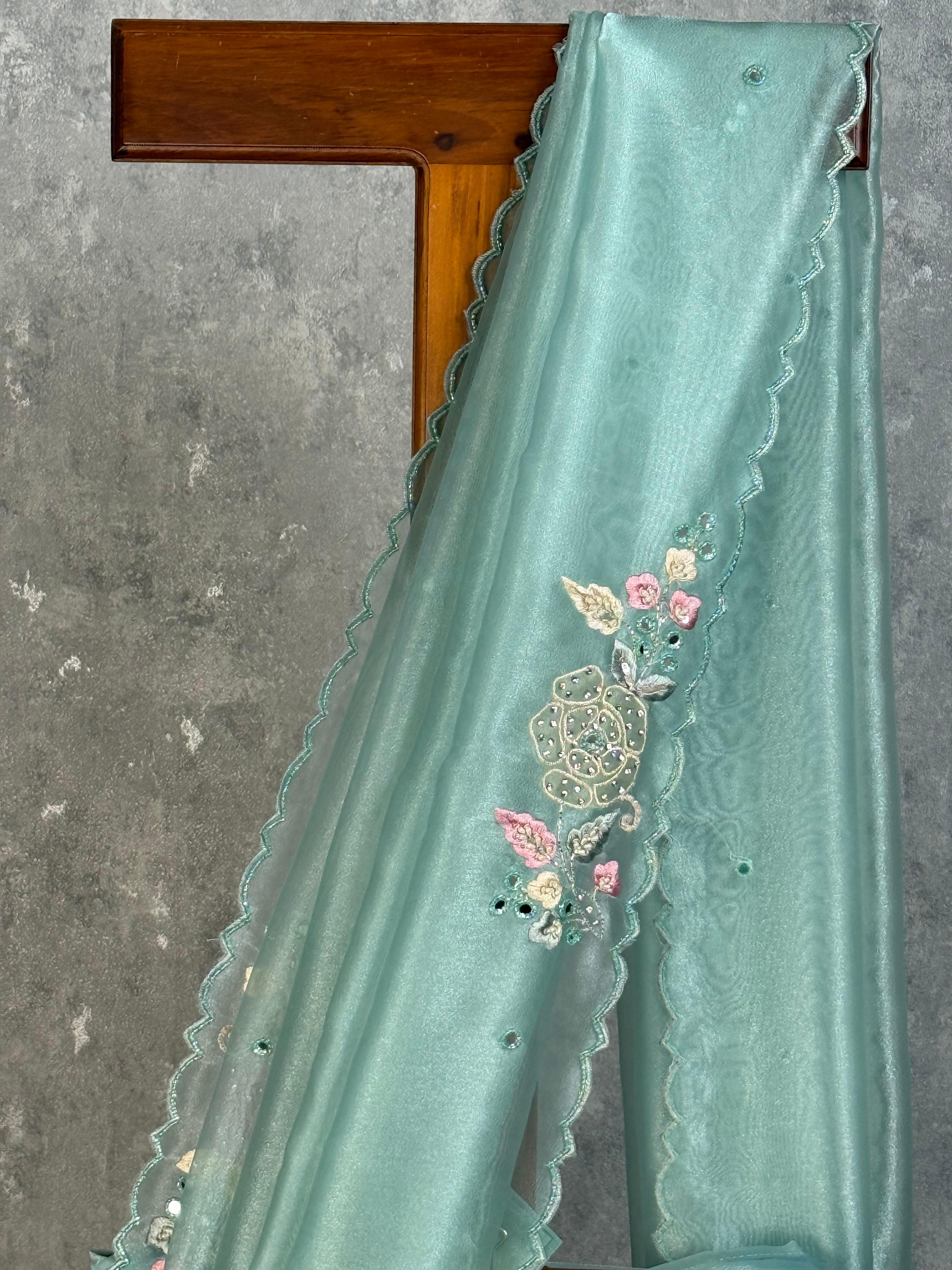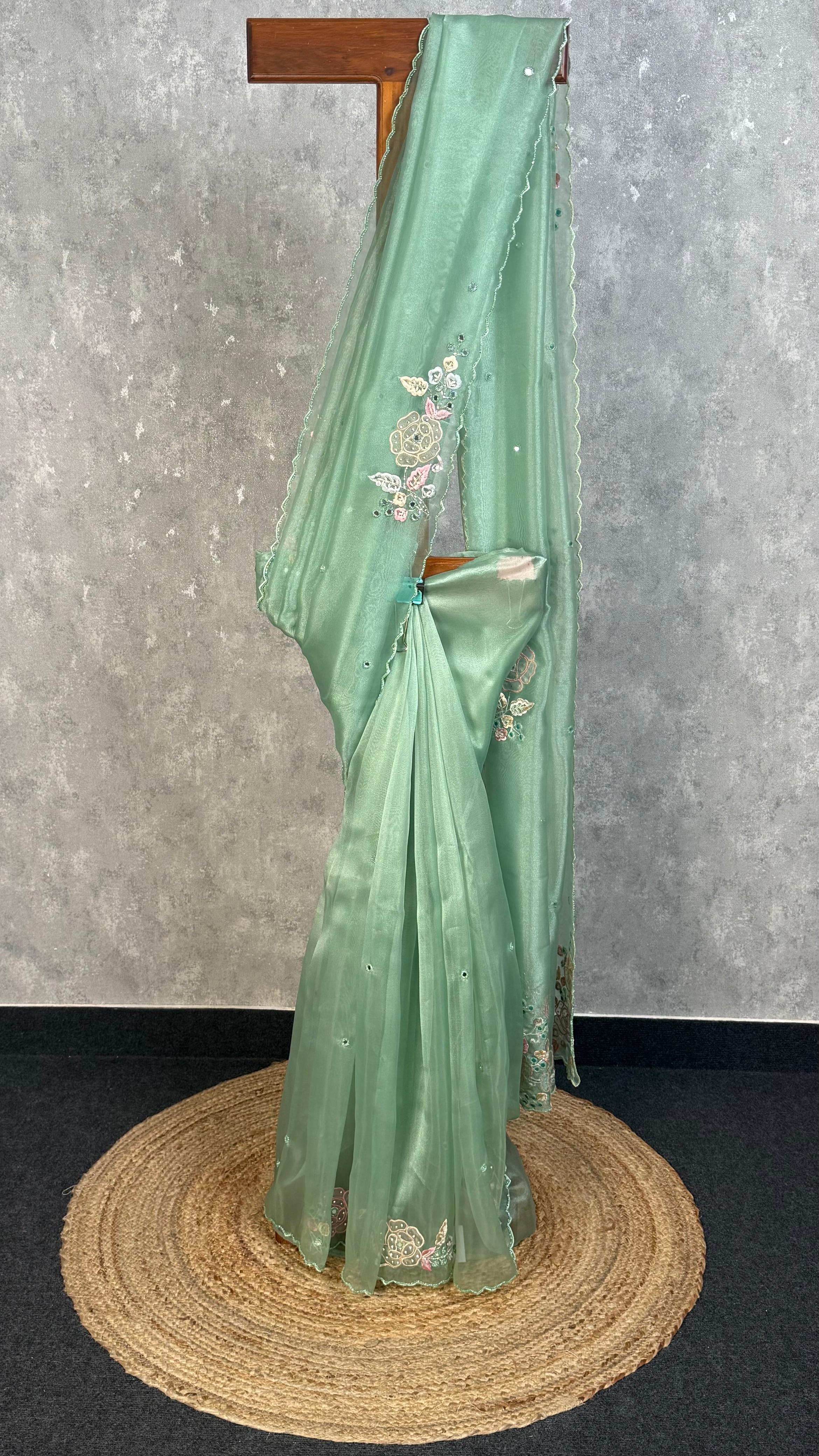 This elegant organza saree features delicate embroidery work that brings timeless grace to your wardrobe. The lightweight fabric drapes beautifully, making it perfect for weddings, festivals, and special occasions. Crafted with attention to detail, this piece combines traditional artistry with modern sophistication.