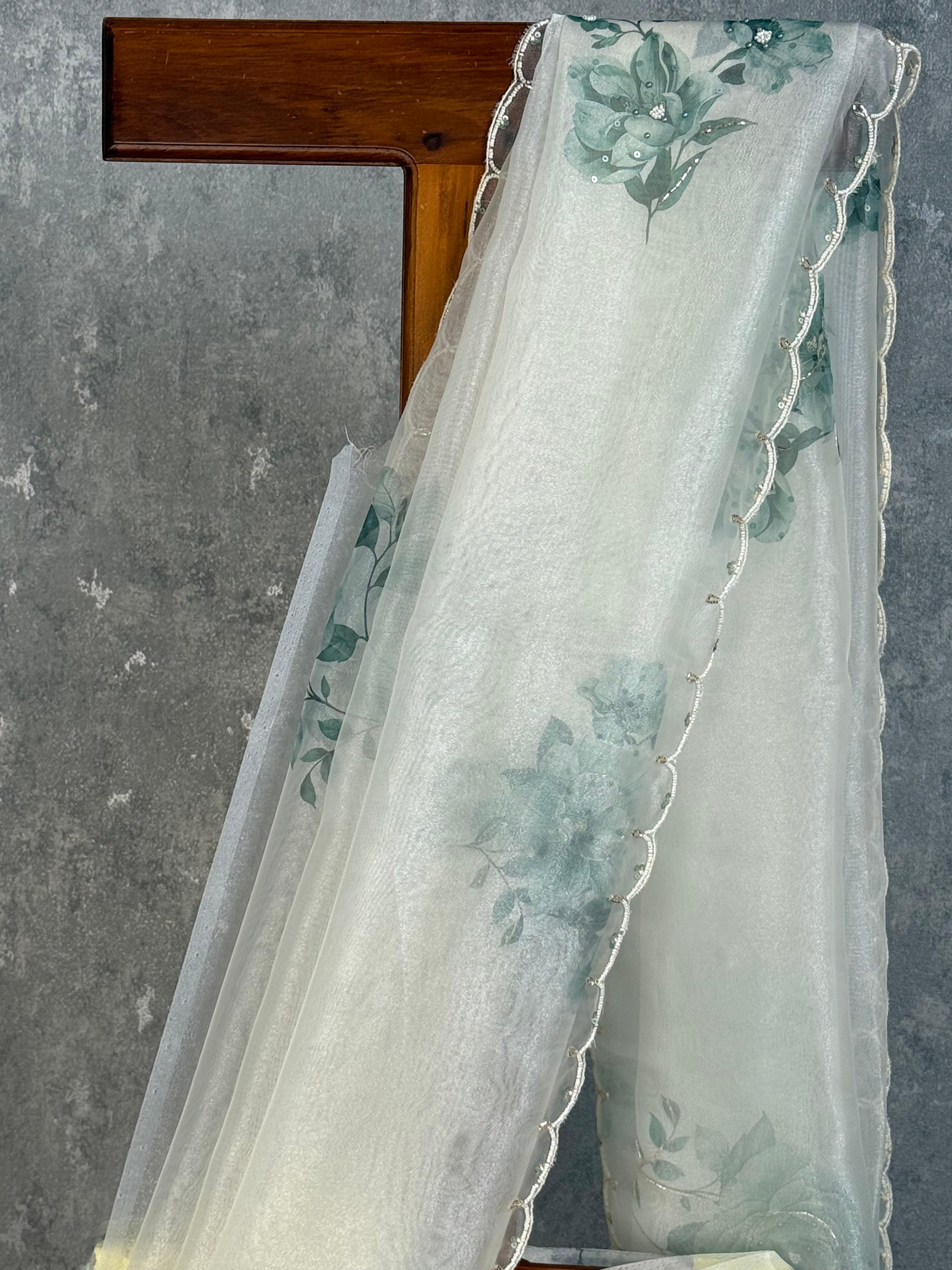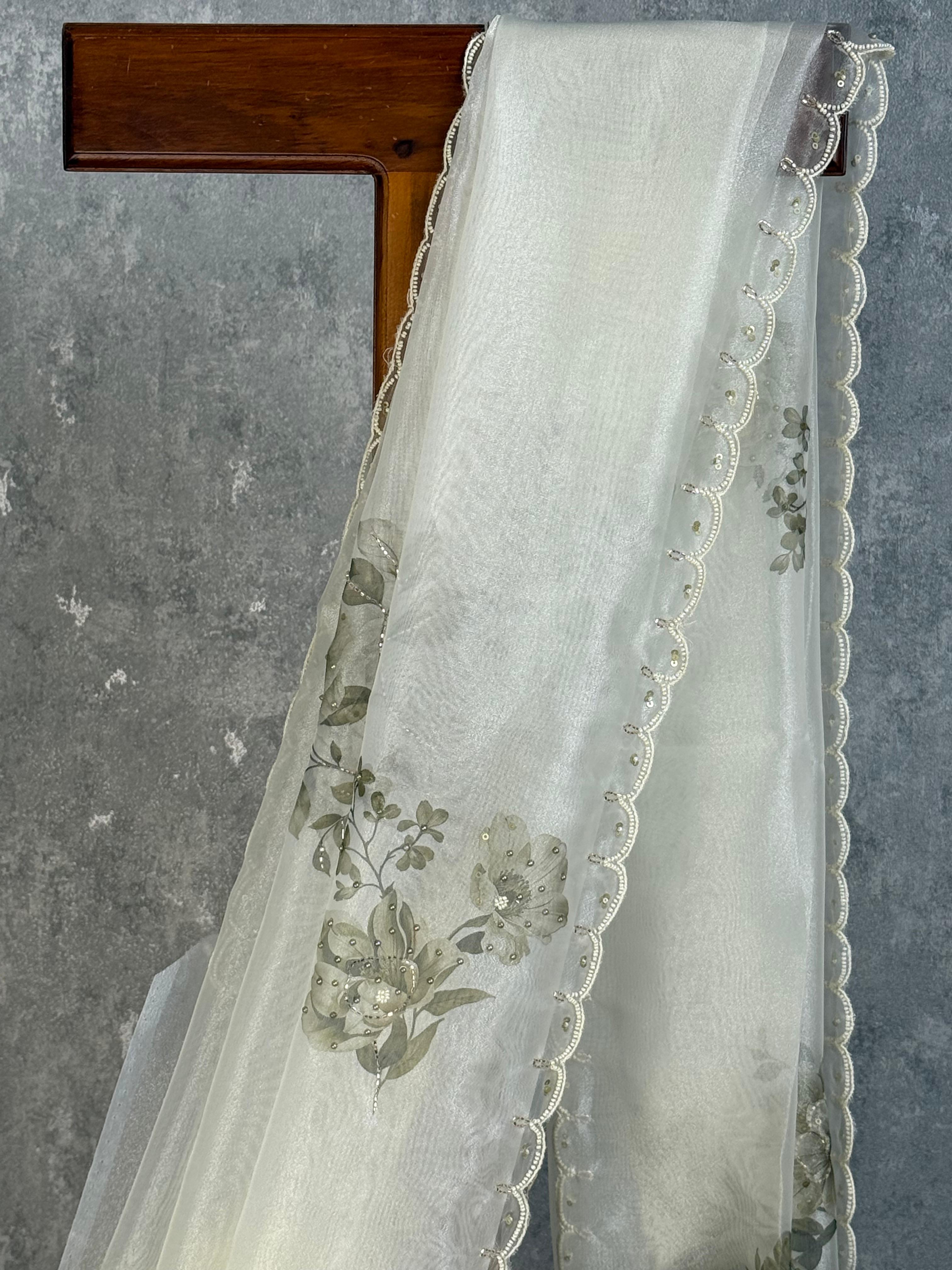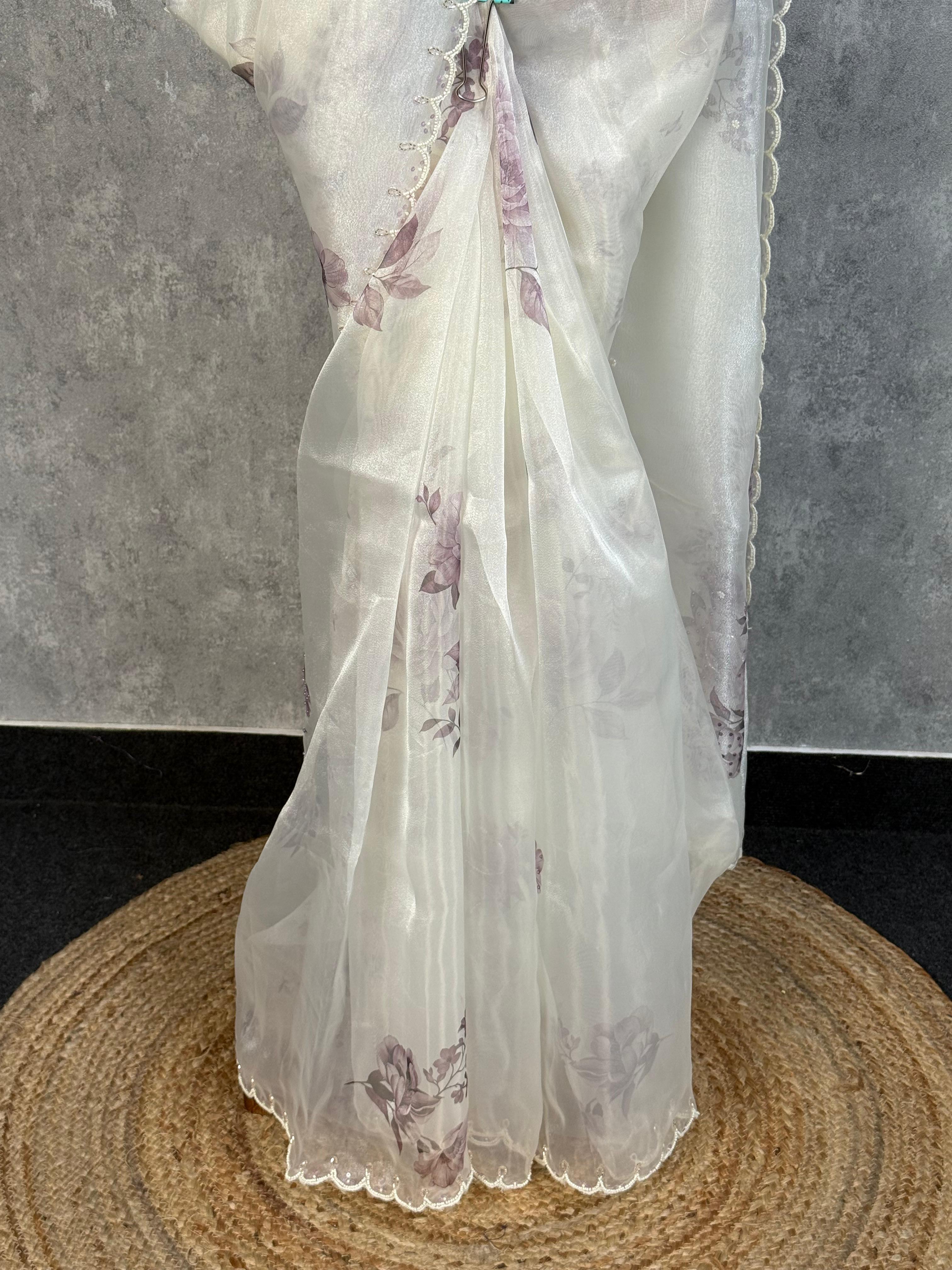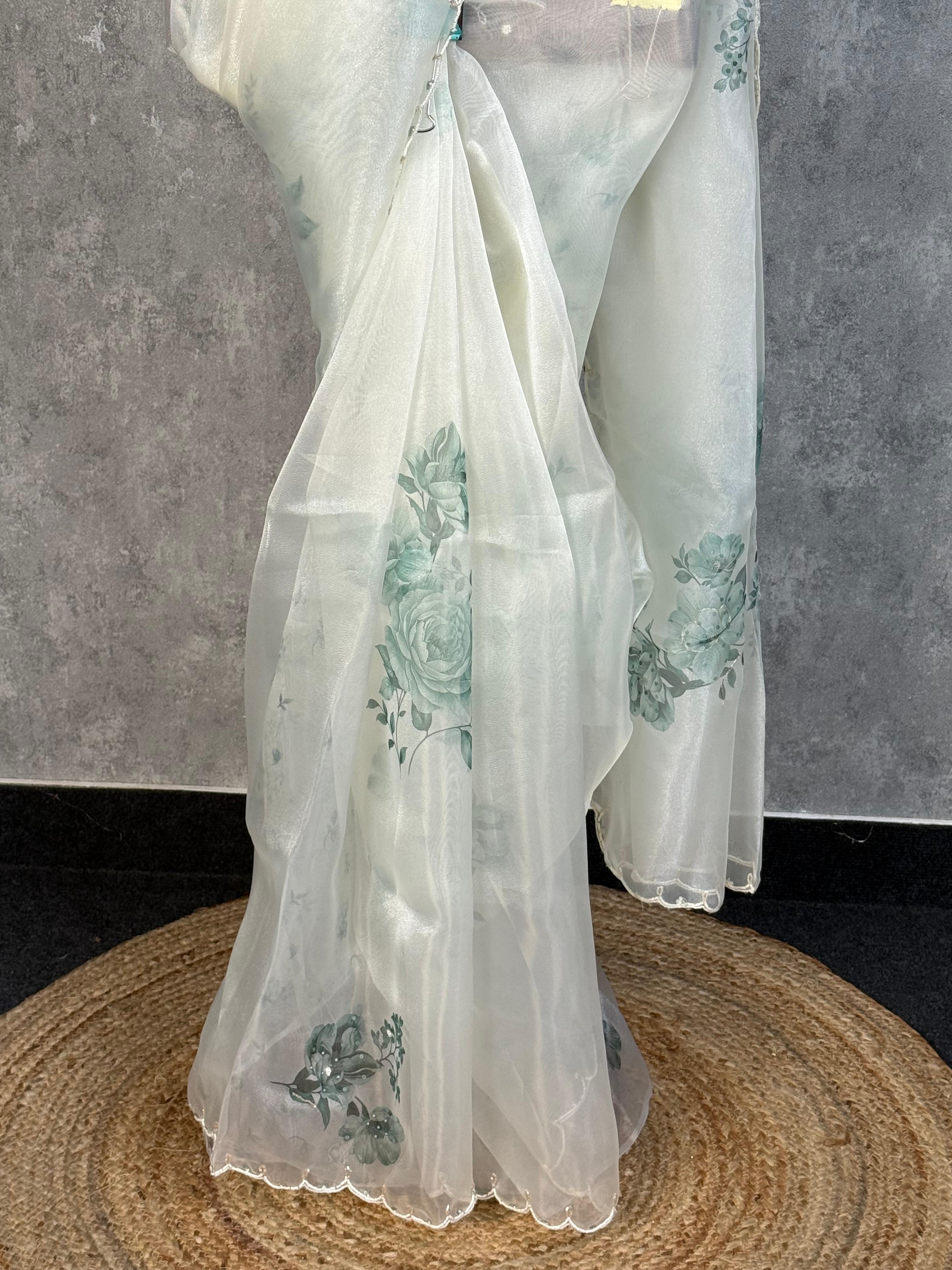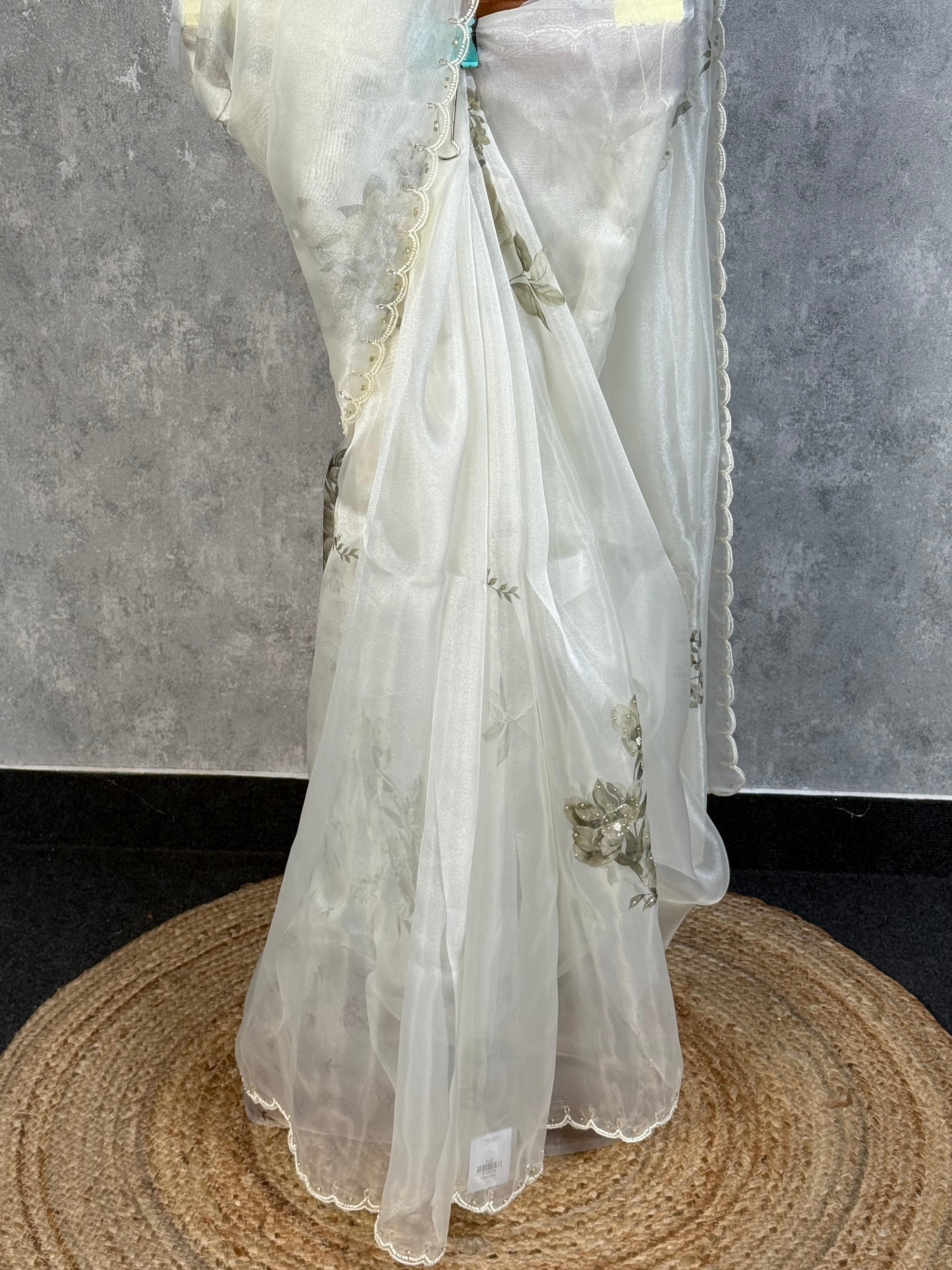 An organza saree is a lightweight, sheer fabric drape that brings elegance and grace to any occasion. Made from fine, crisp organza material, it offers a delicate yet structured look that flatters the body beautifully. Perfect for celebrations and formal events, this saree combines traditional craftsmanship with a modern, sophisticated appeal.