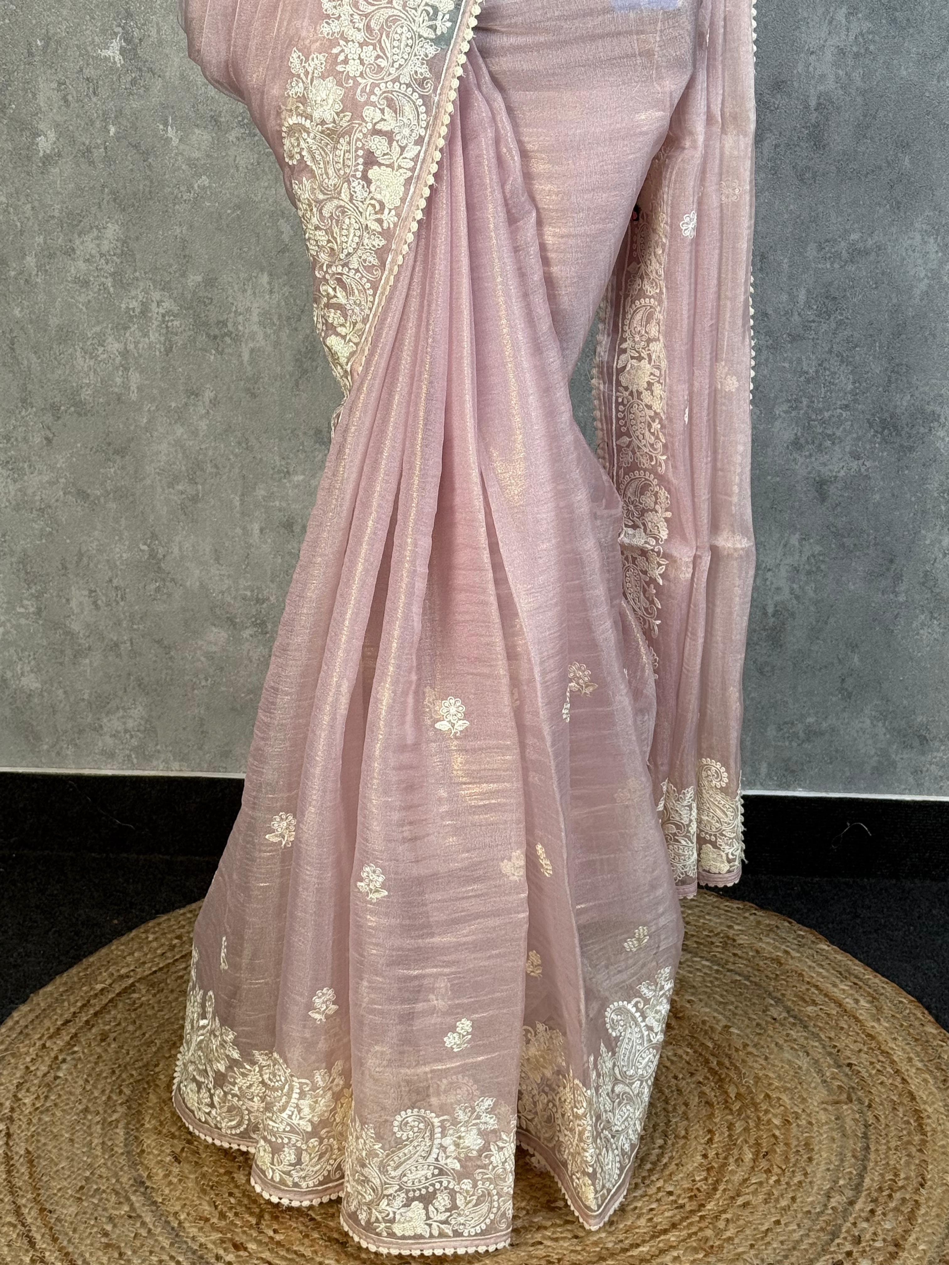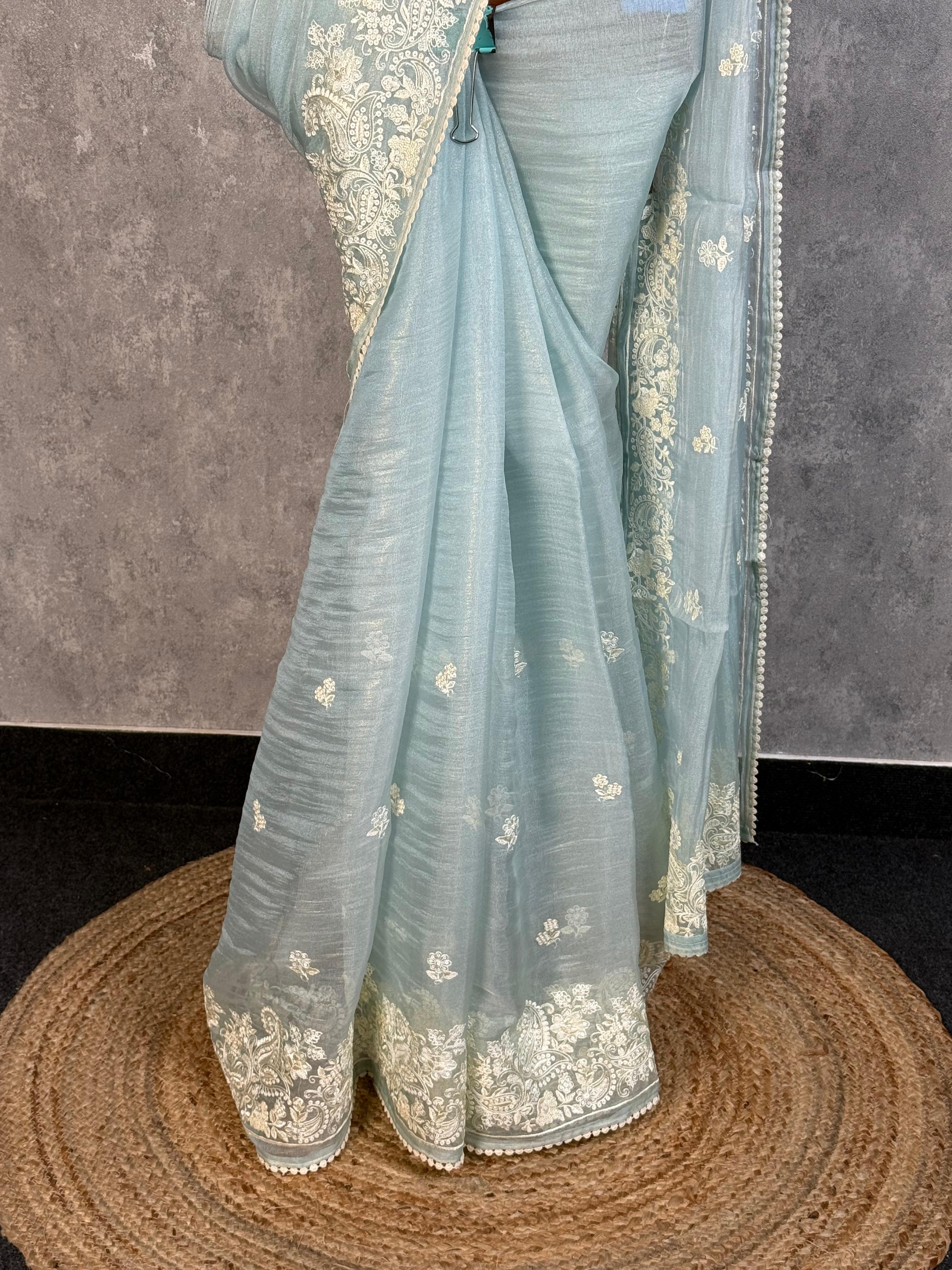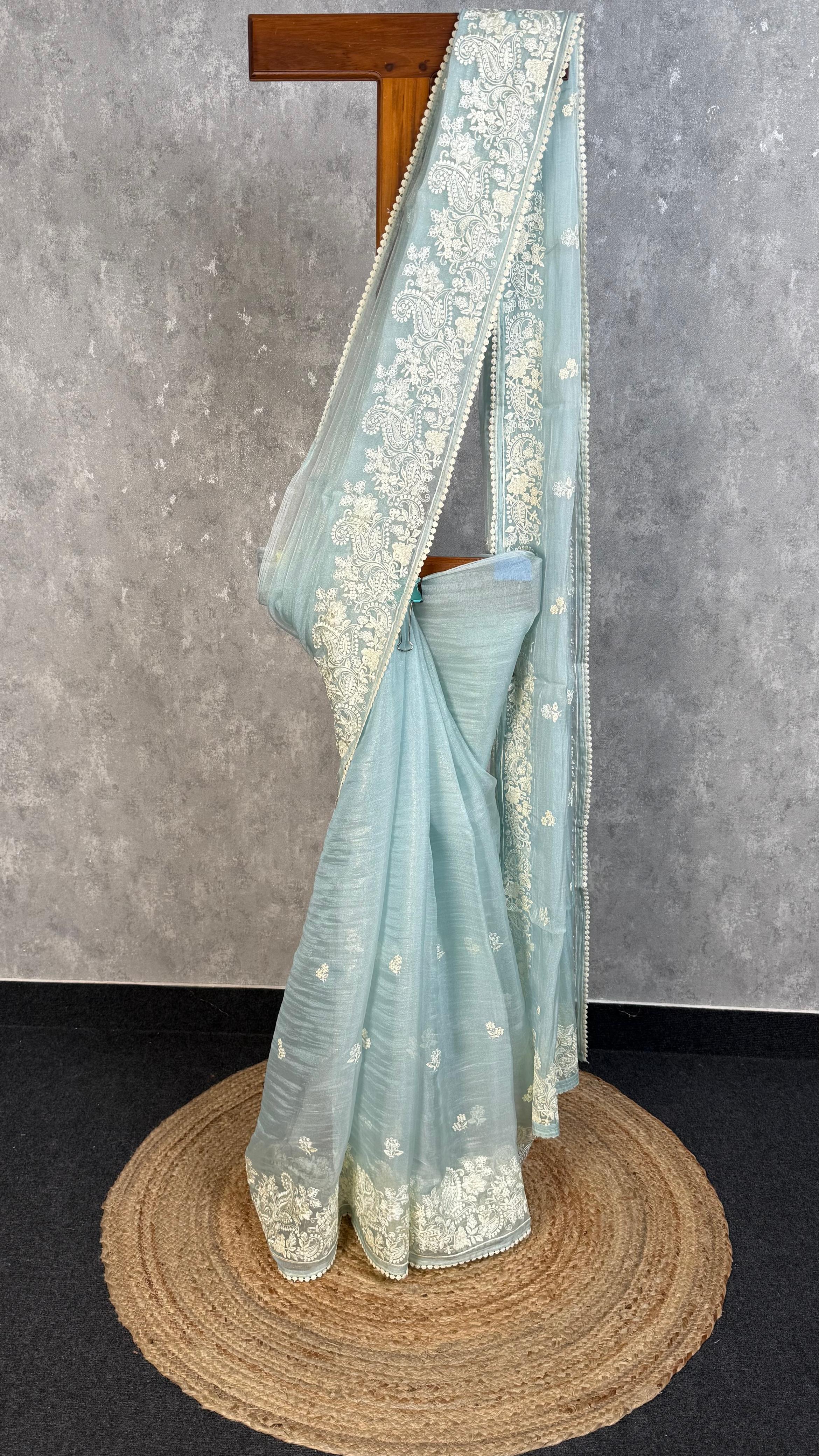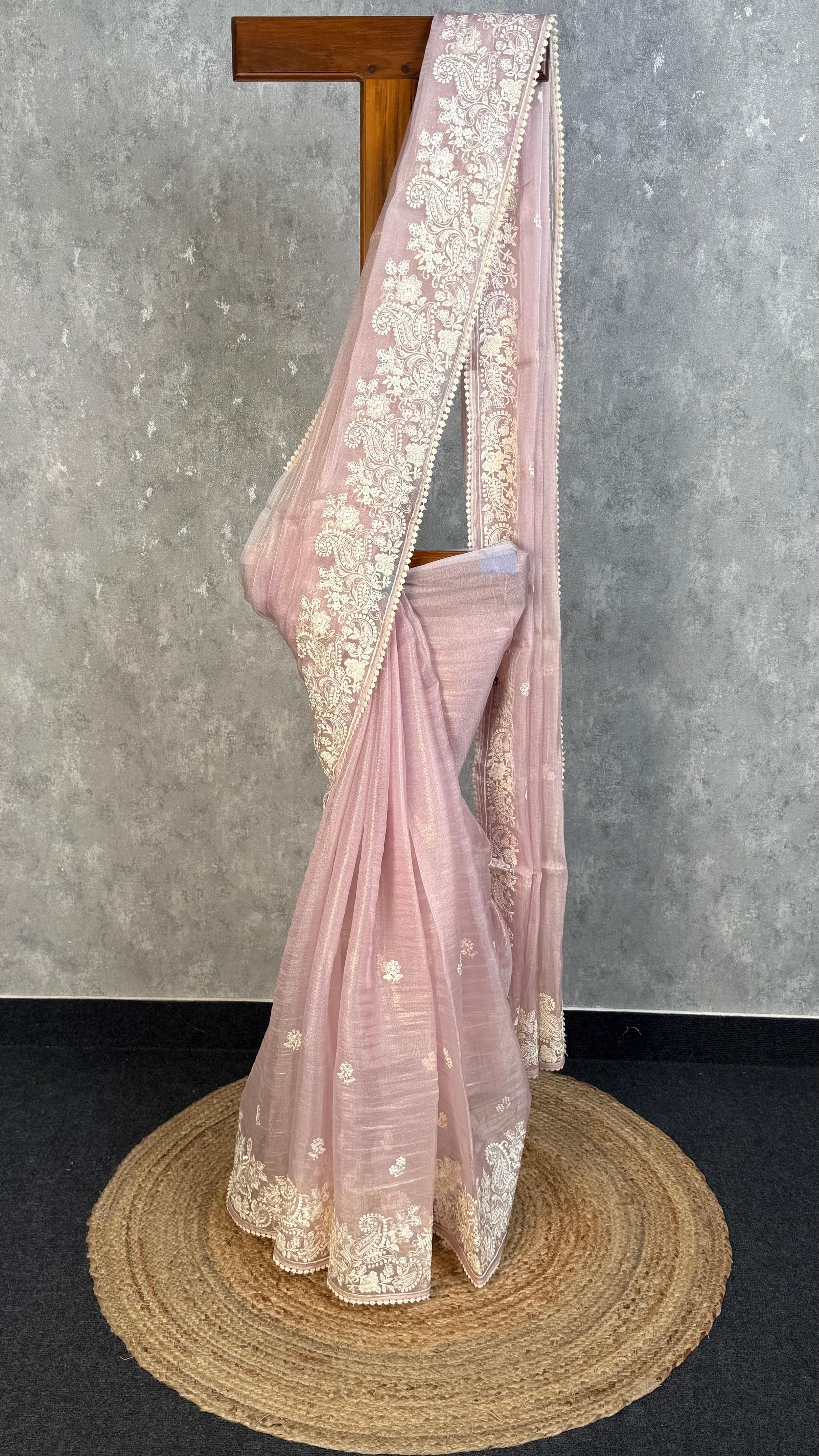 An organza saree is a lightweight, sheer fabric drape that brings elegance and grace to any occasion. Made from fine, crisp organza material, it offers a sophisticated look with excellent drape and movement. Perfect for celebrations, weddings, and festive gatherings, this saree combines traditional craftsmanship with timeless style.