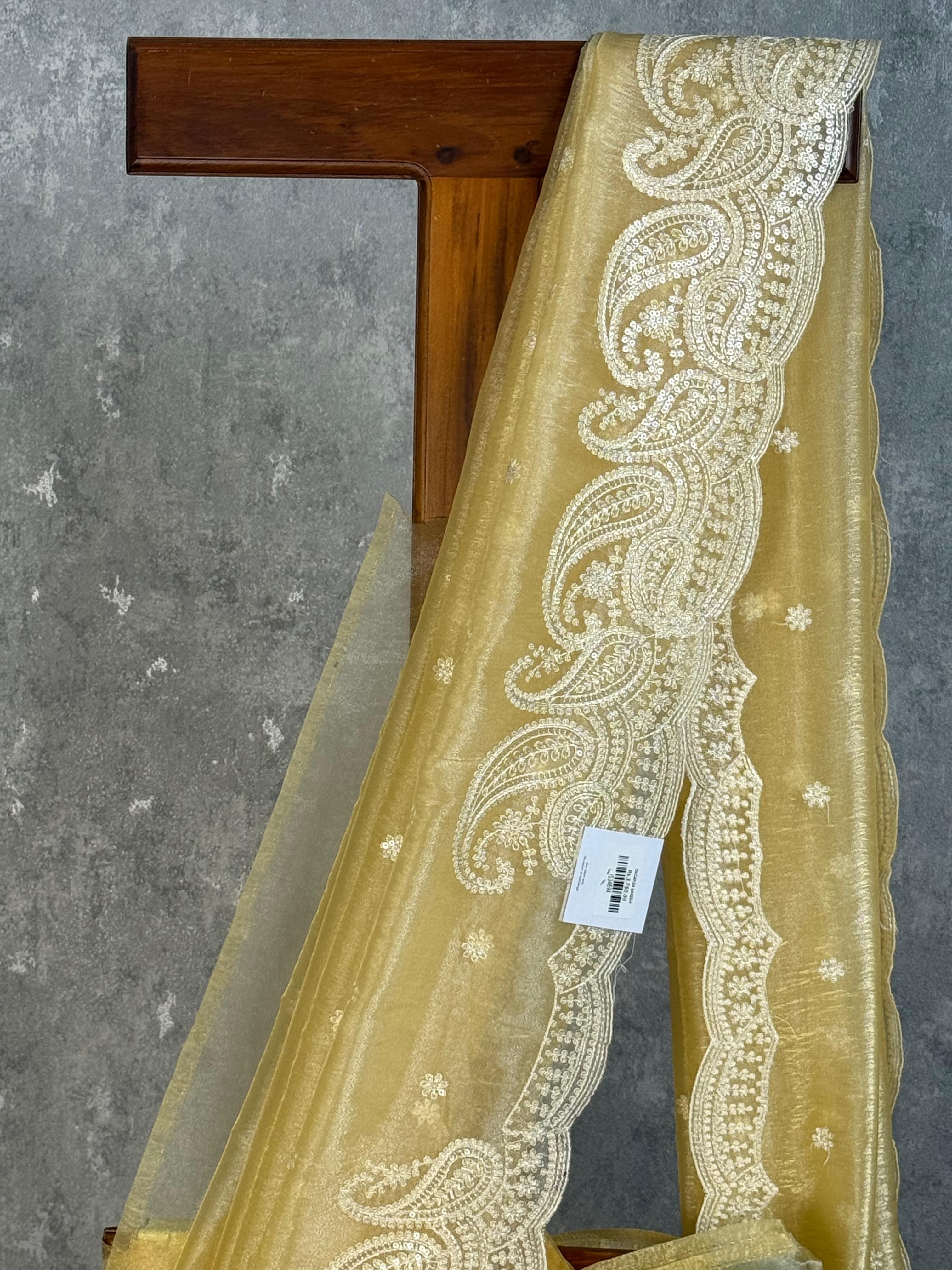 Keep the garment wrapped in cotton fabric. It is advisable to fold your organza saris in a roll for better preservation. Avoid spraying perfume directly onto the garment. Do not use naphthalene balls while storing it. Remove any stains or spots only with white petrol. Store the garment in a moderate climate, as zari can react to weather changes.