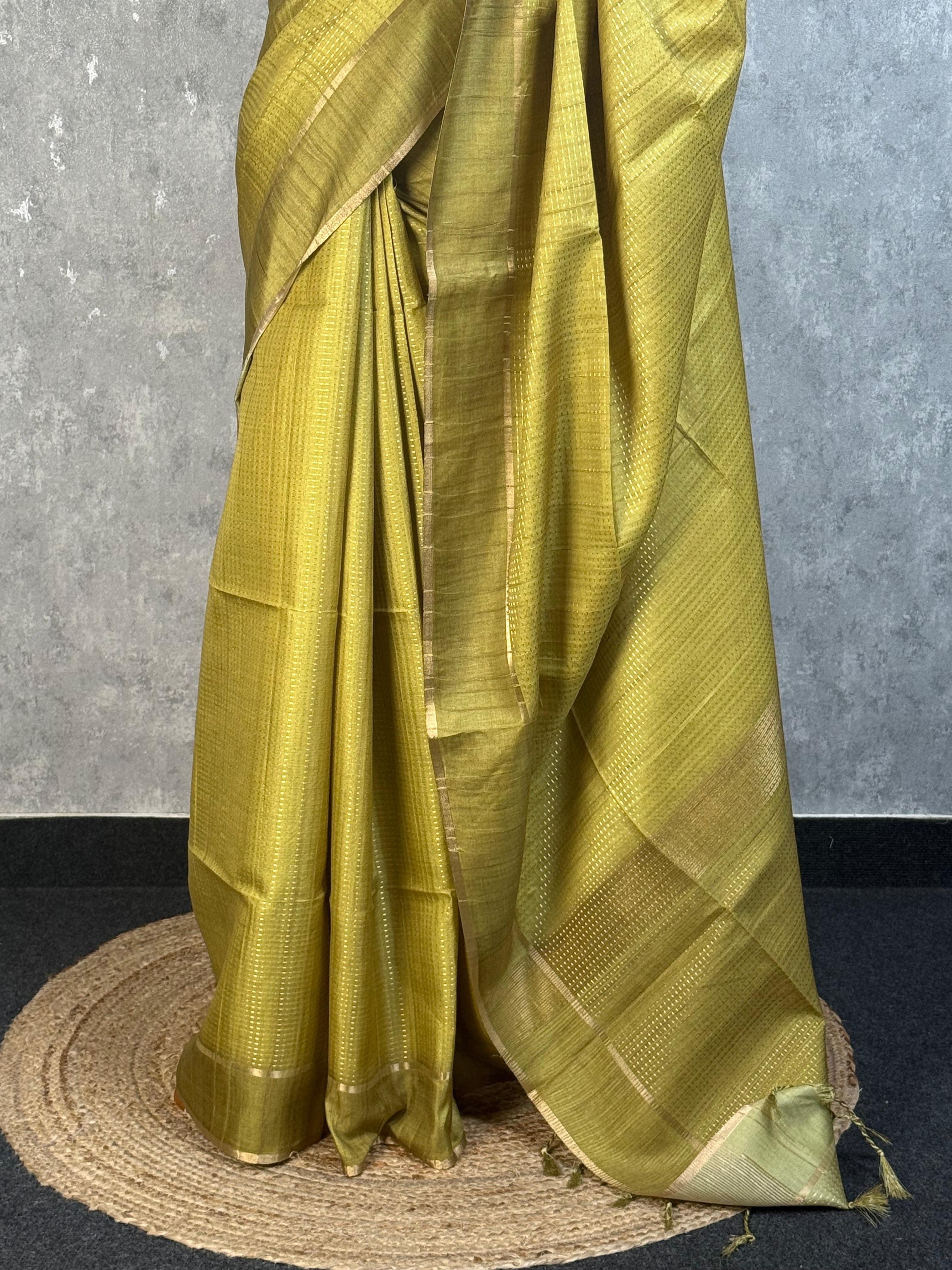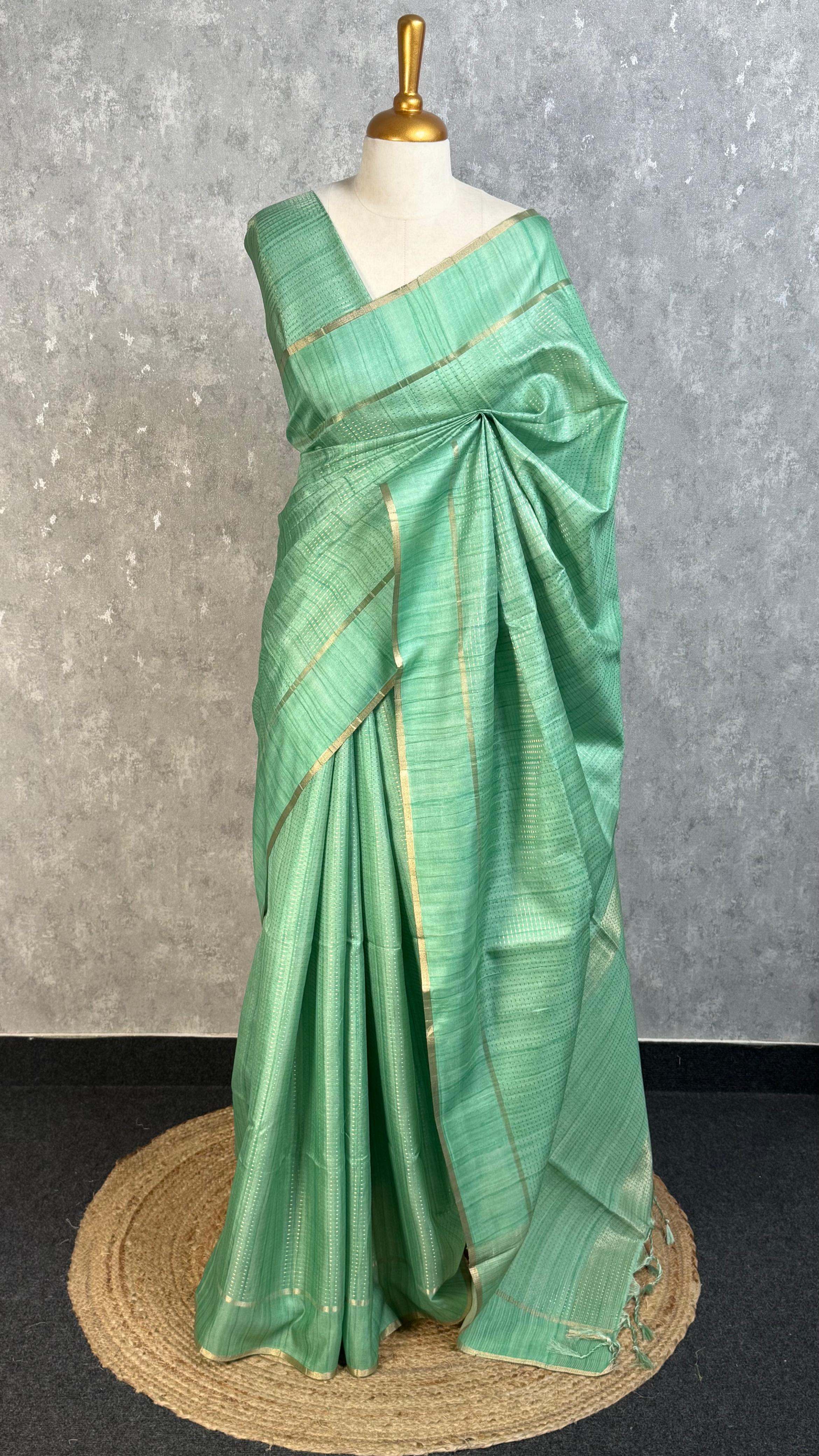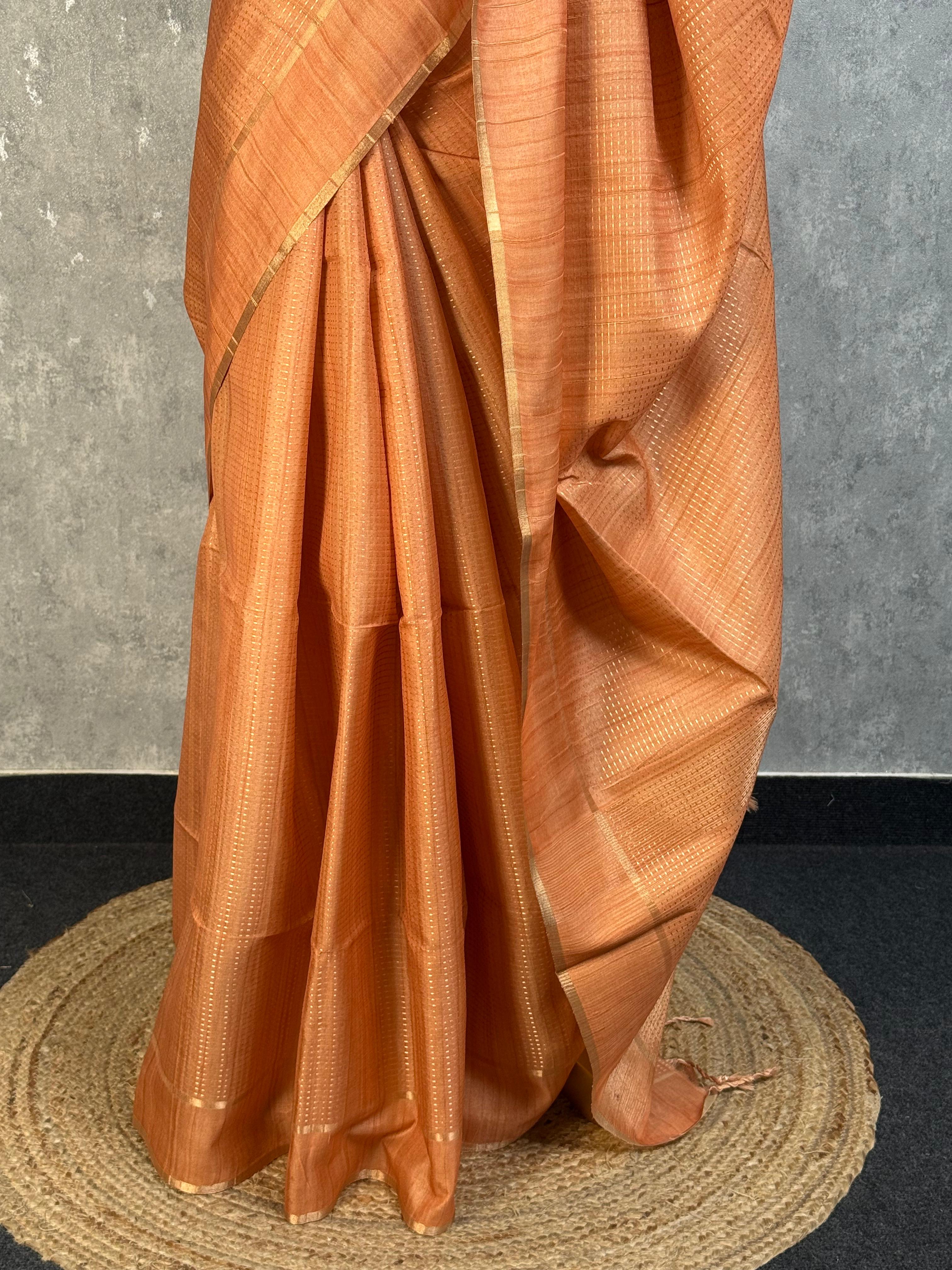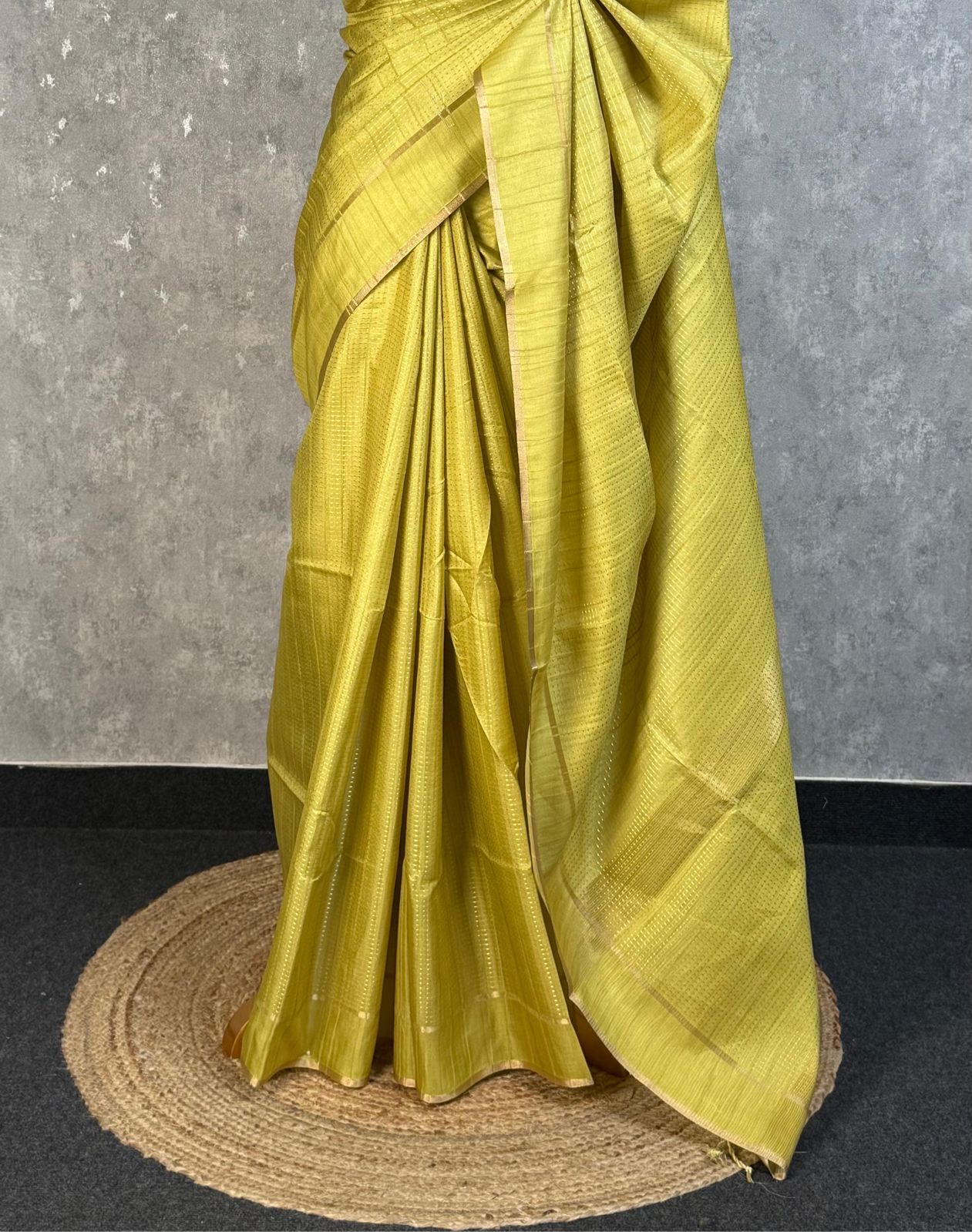 Drape yourself in timeless elegance with this Semi Tussar Banarasi saree, where traditional craftsmanship meets contemporary style. Woven with the finest semi tussar silk and adorned with intricate Banarasi patterns, this saree is perfect for weddings, festivals, and special celebrations. Experience the luxurious feel and graceful drape that makes every moment memorable.