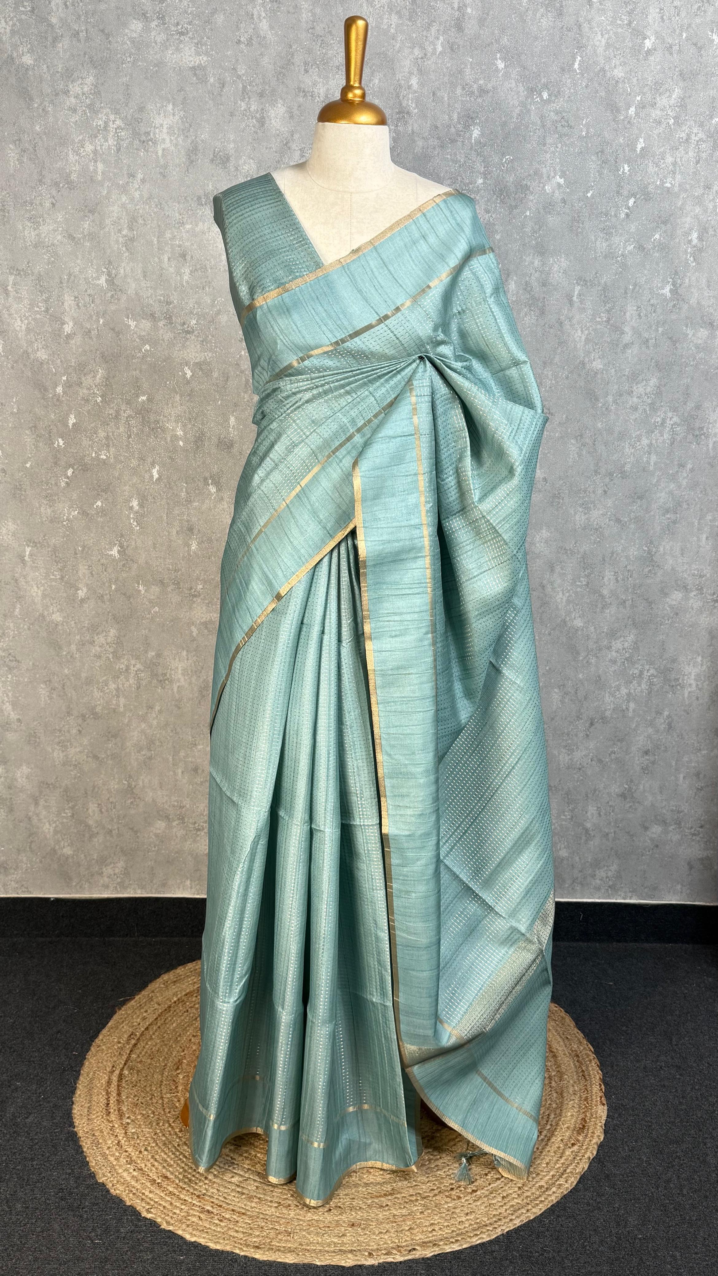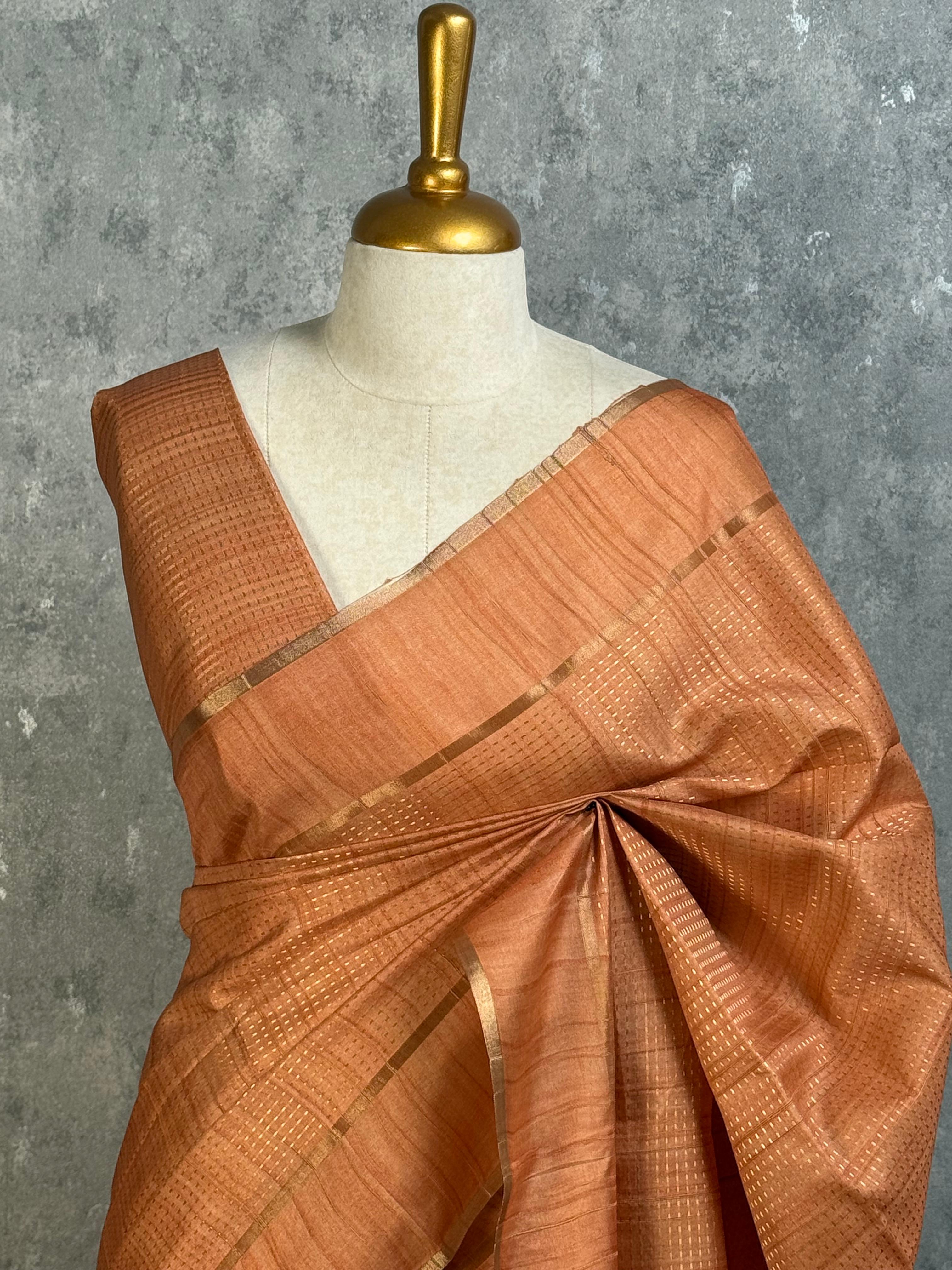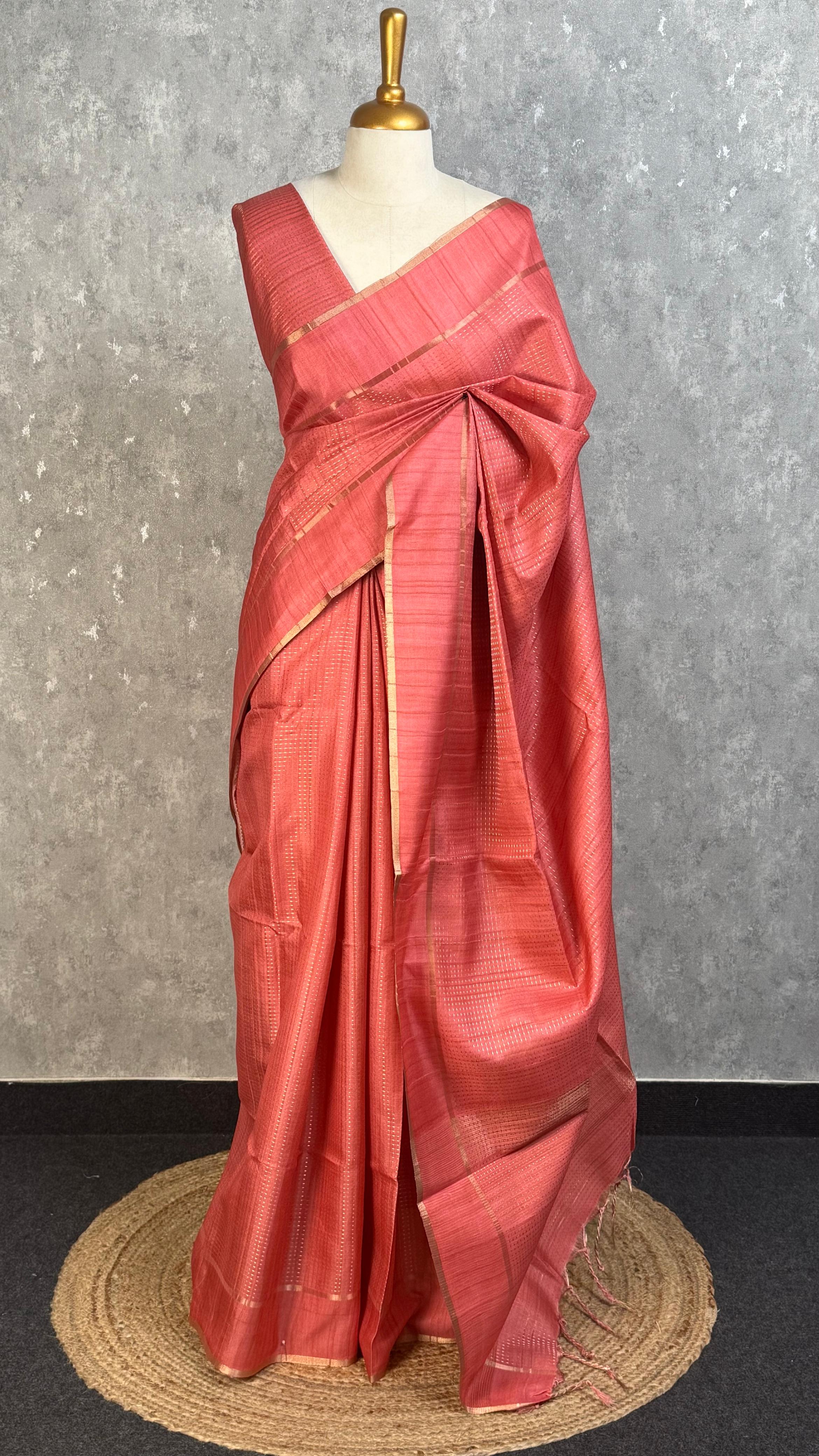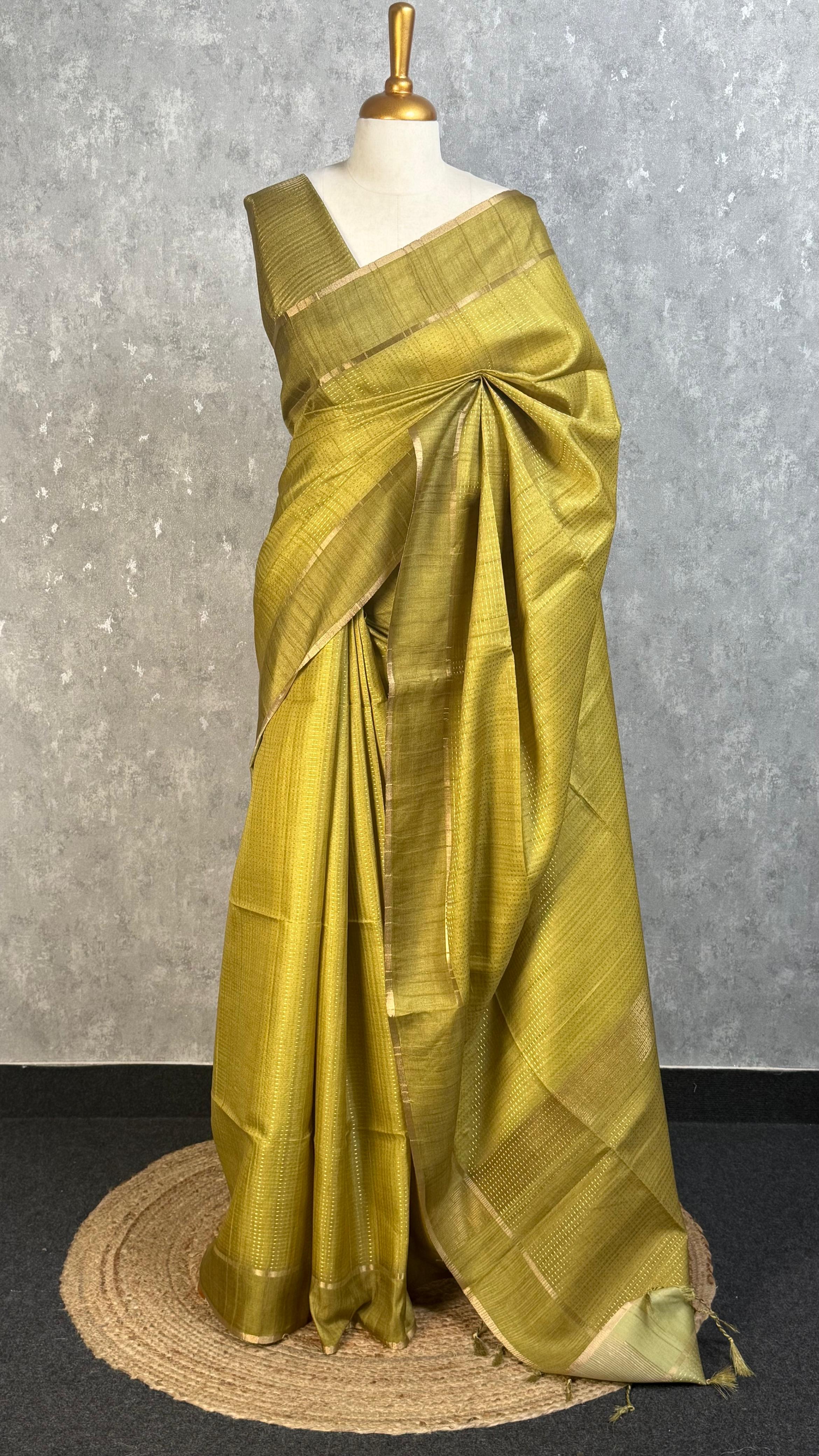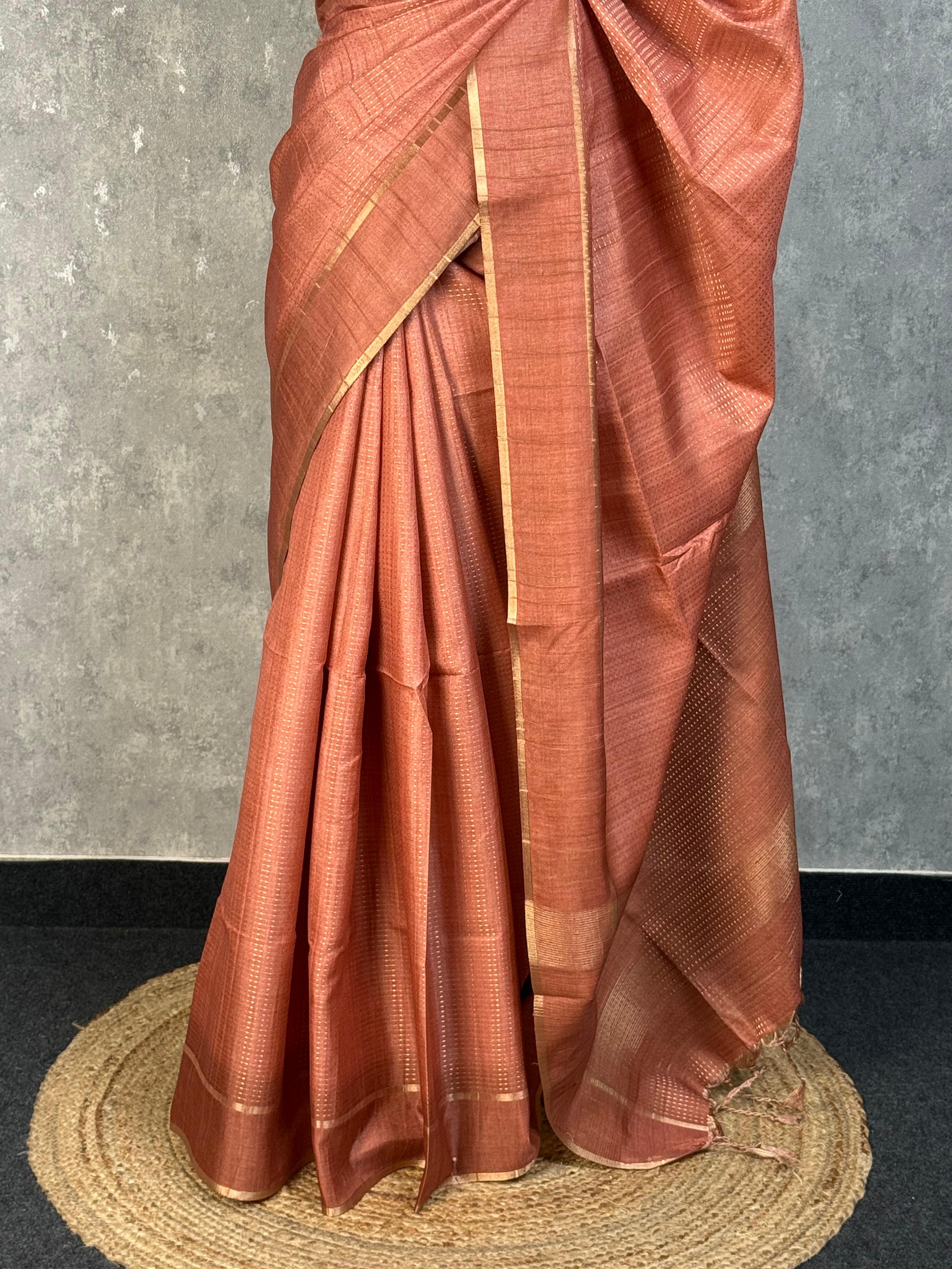Drape yourself in timeless elegance with this Semi Tussar Banarasi saree, where traditional craftsmanship meets contemporary style. Woven with the finest semi tussar silk and adorned with intricate Banarasi patterns, this saree is perfect for weddings, festivals, and special celebrations. Experience the luxurious feel and graceful drape that makes every moment memorable.