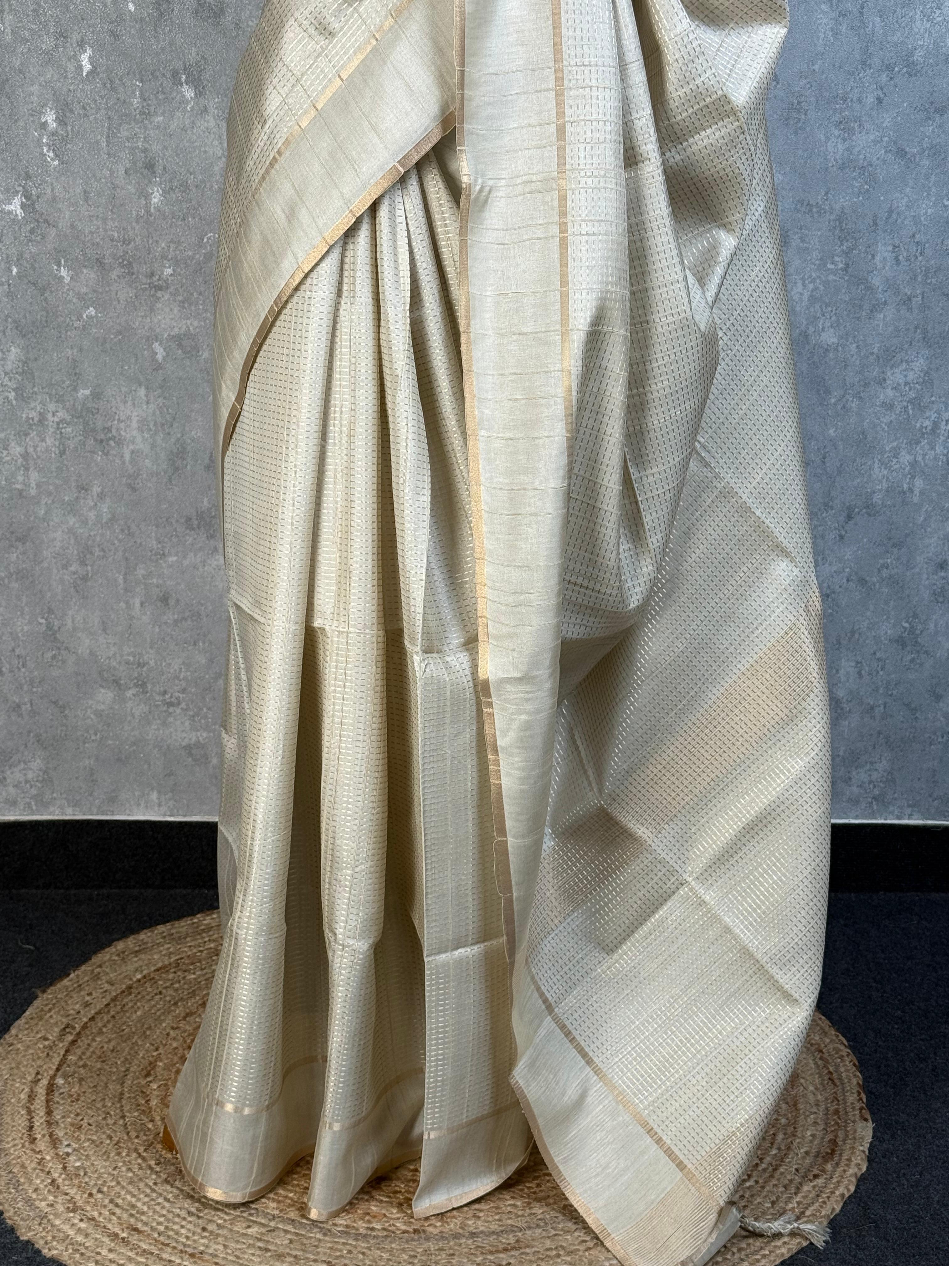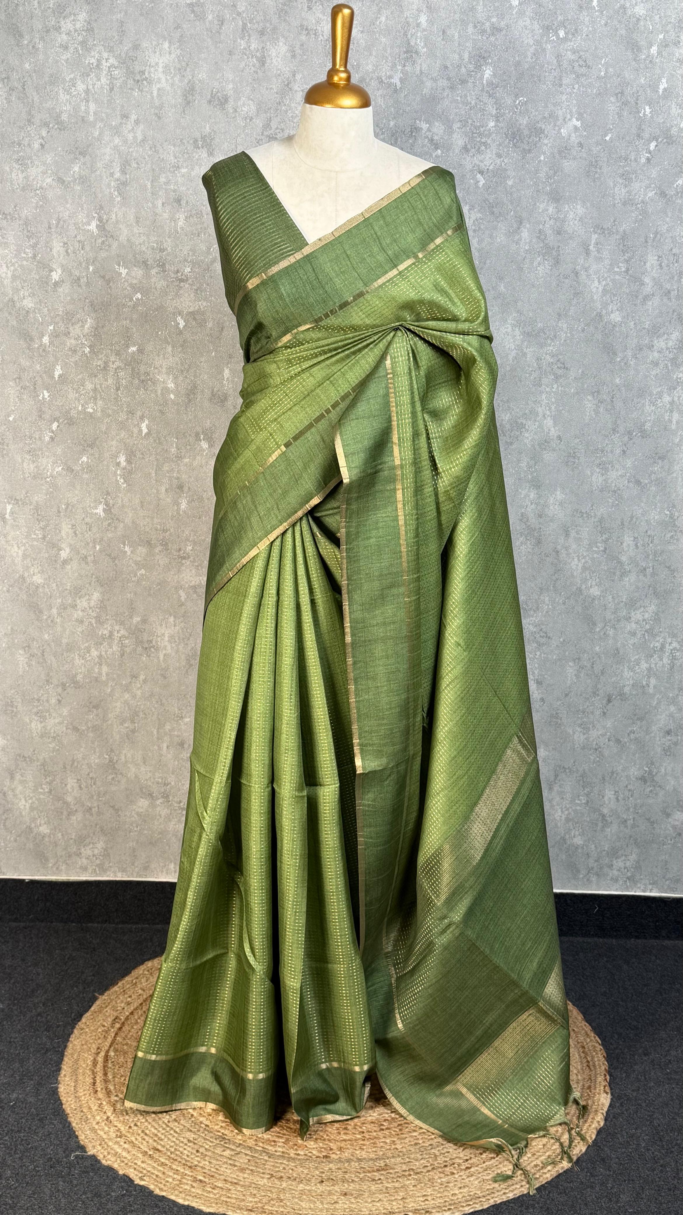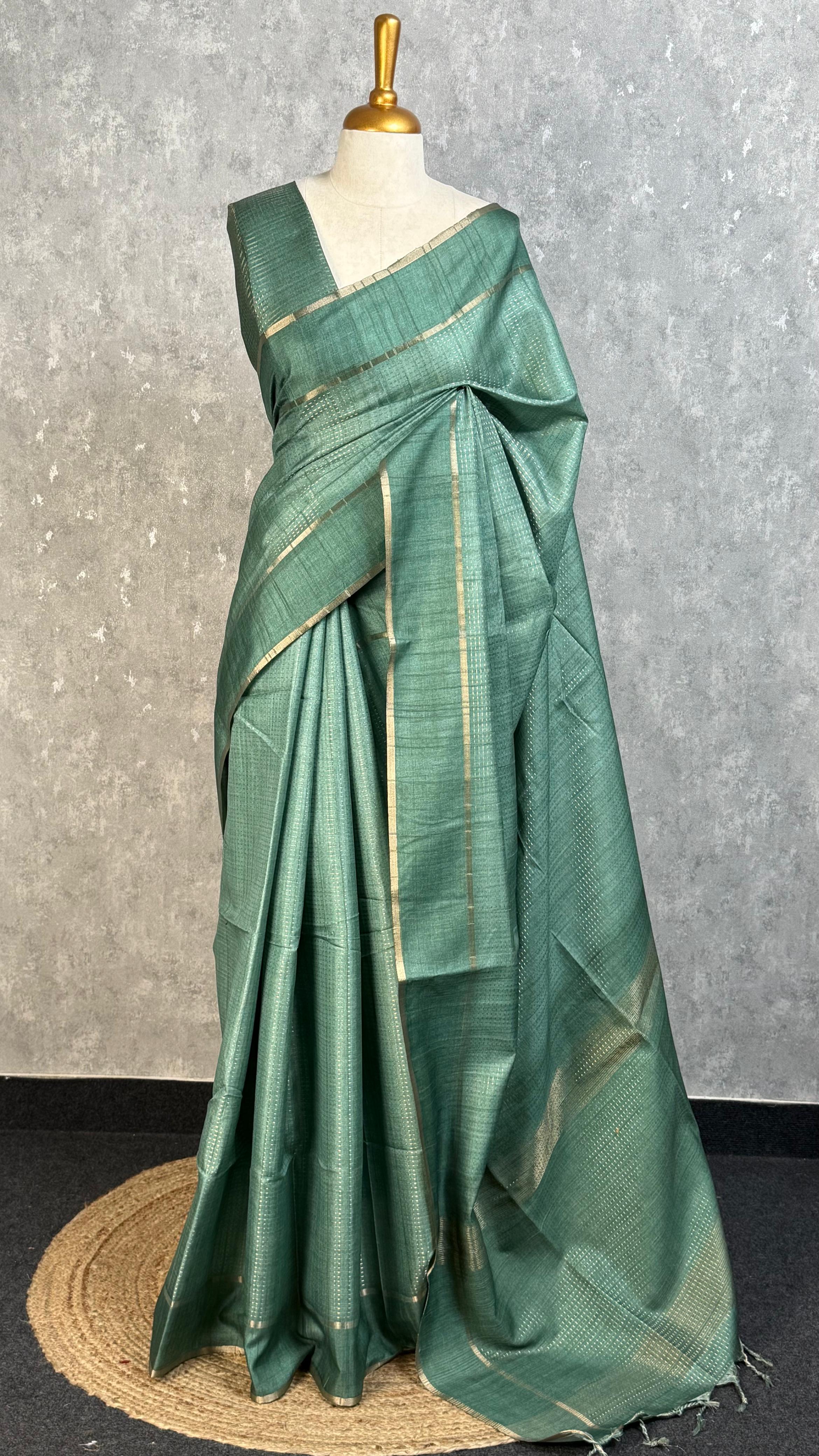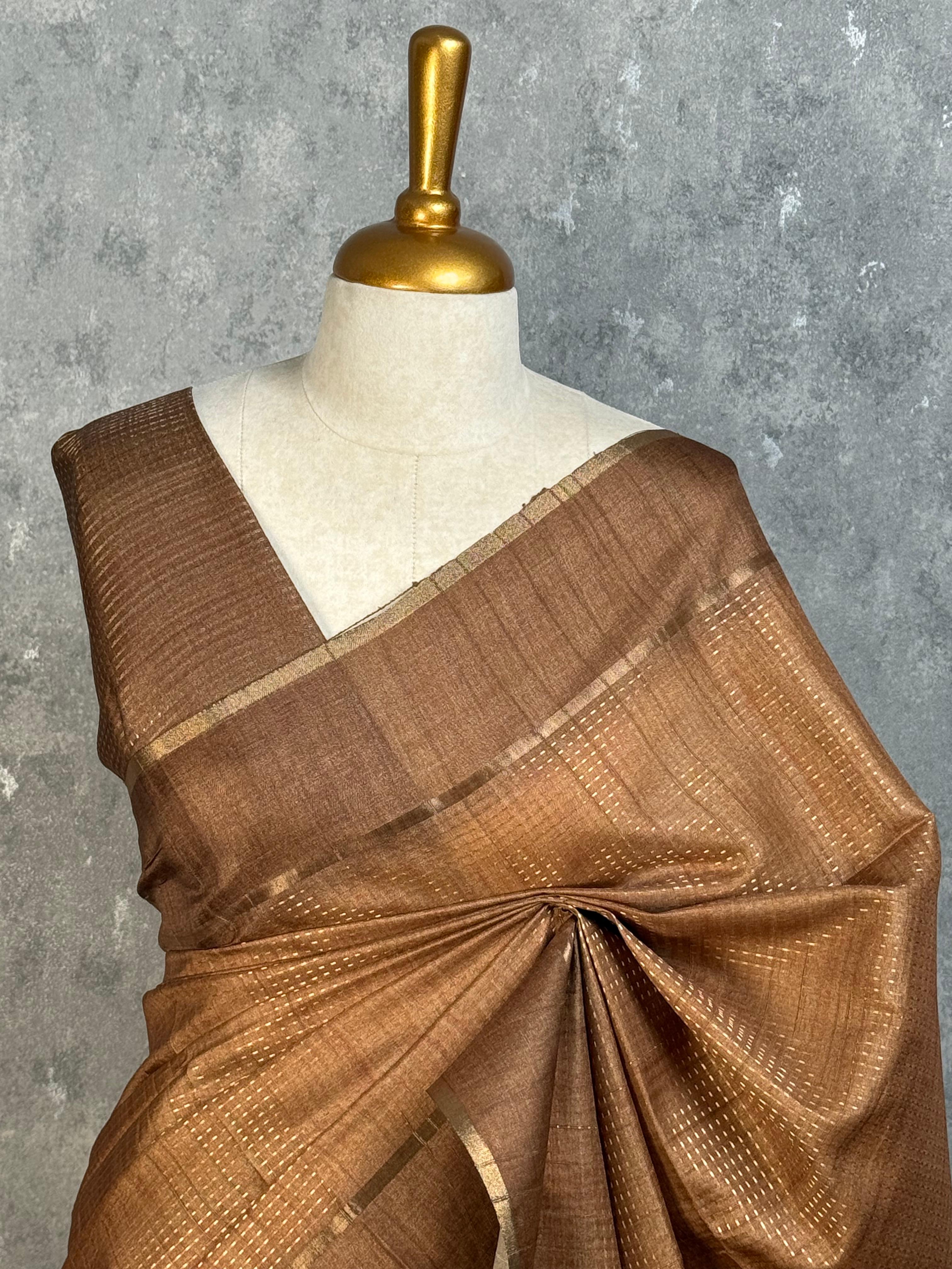 Drape yourself in timeless elegance with this Semi Tussar Banarasi saree, where traditional craftsmanship meets contemporary style. Woven with the finest semi tussar silk and adorned with intricate Banarasi patterns, this saree is perfect for weddings, festivals, and special celebrations. Experience the luxurious feel and graceful drape that makes every moment memorable.